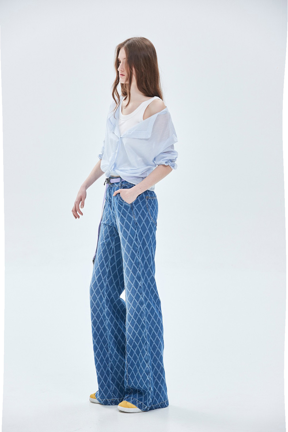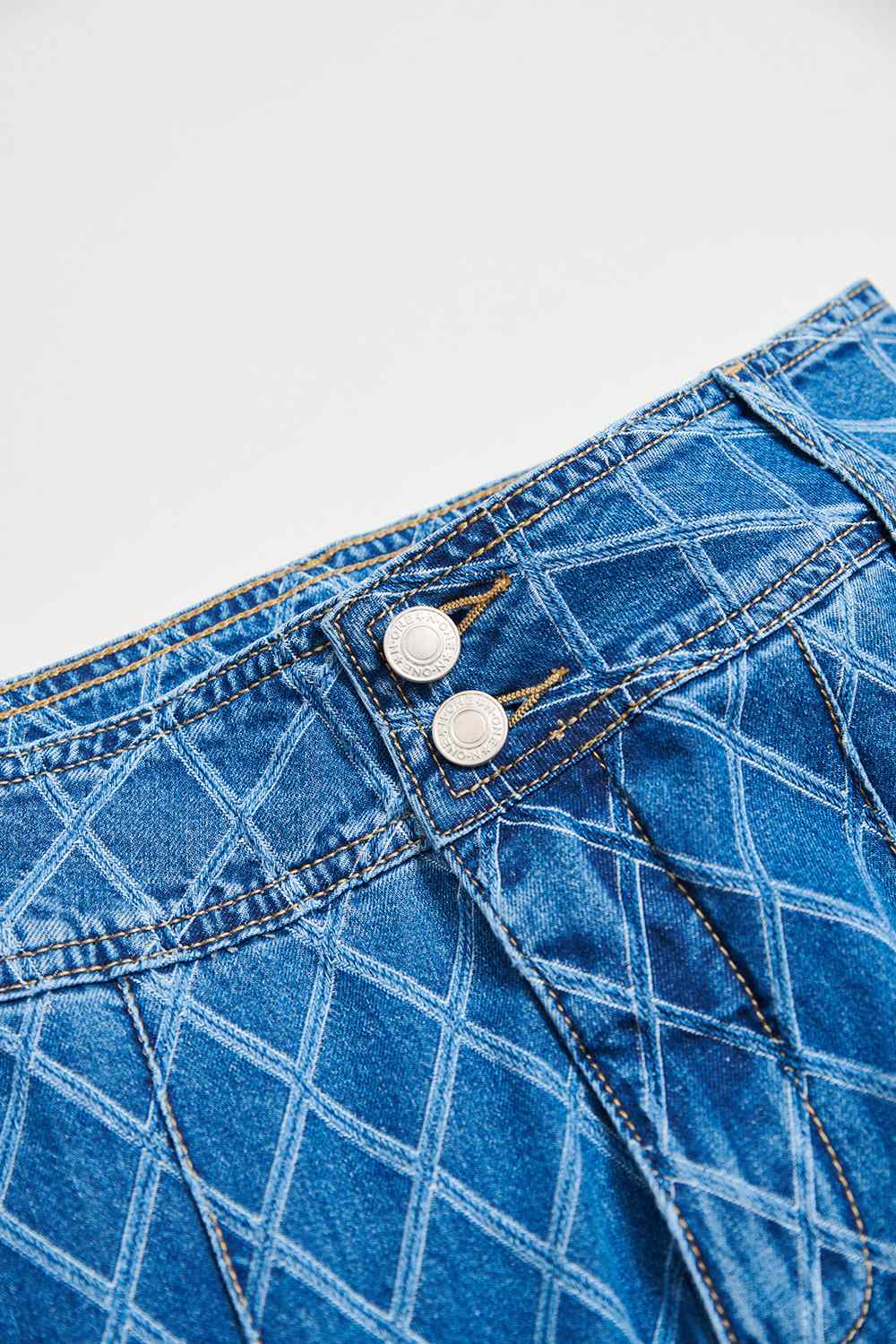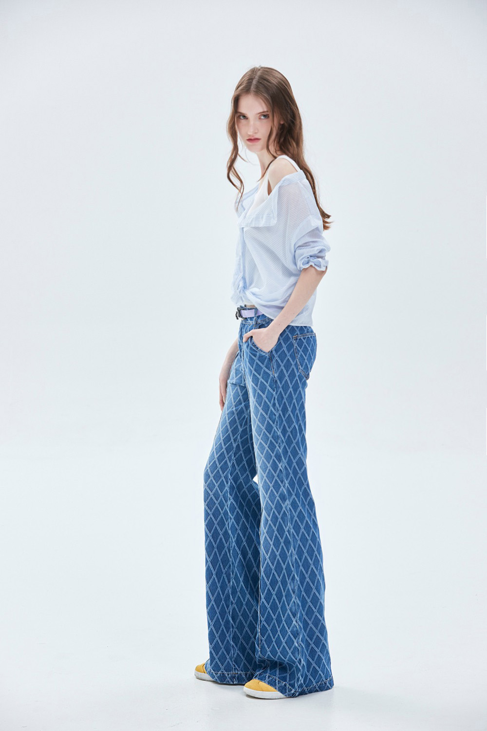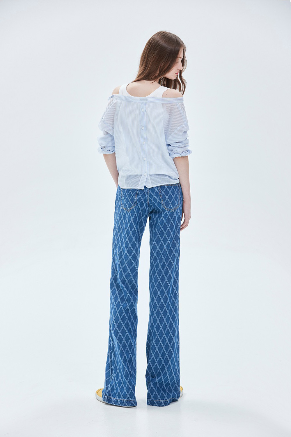 風華絕代菱紋牛仔小喇叭褲 - 深邃藏藍, 38