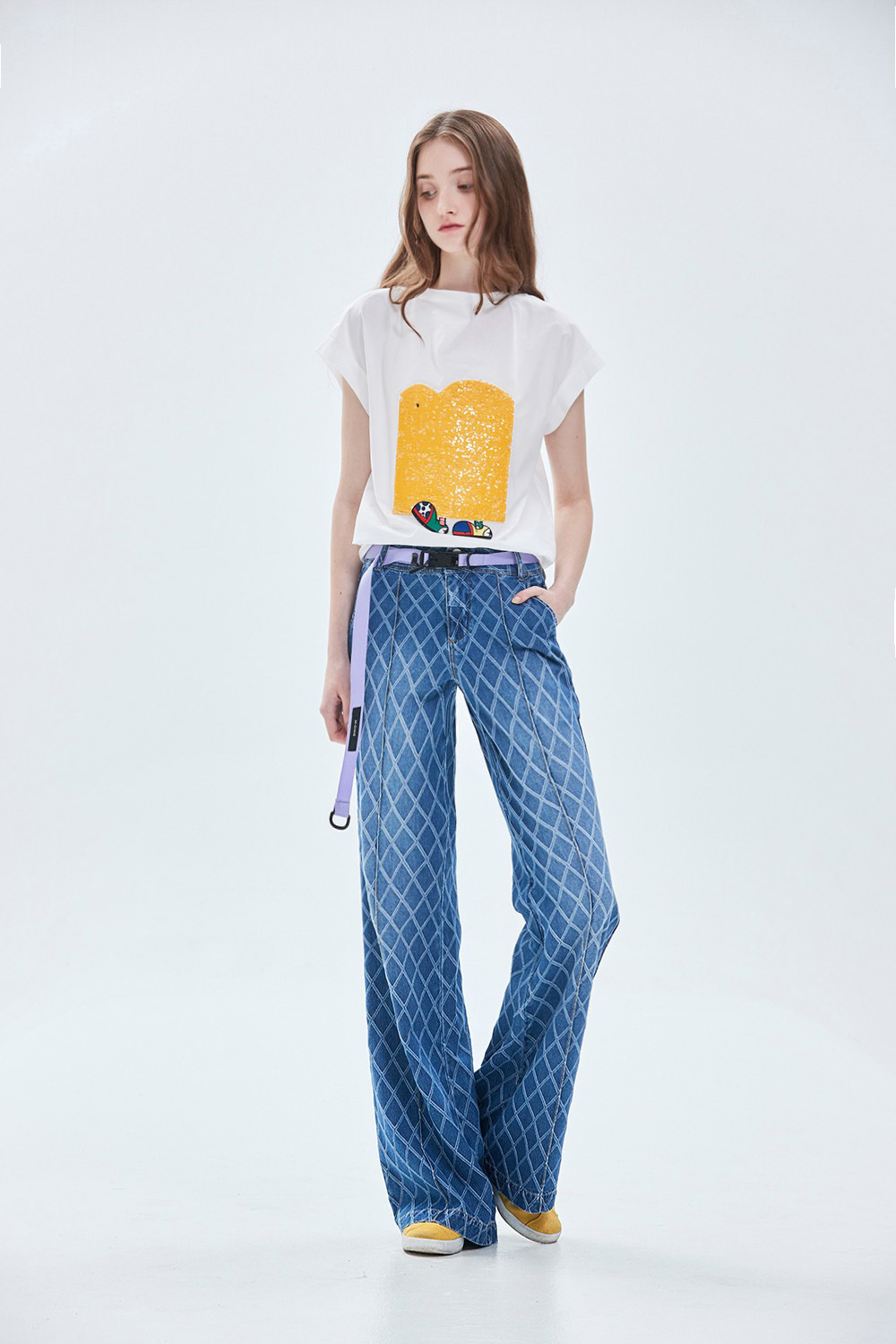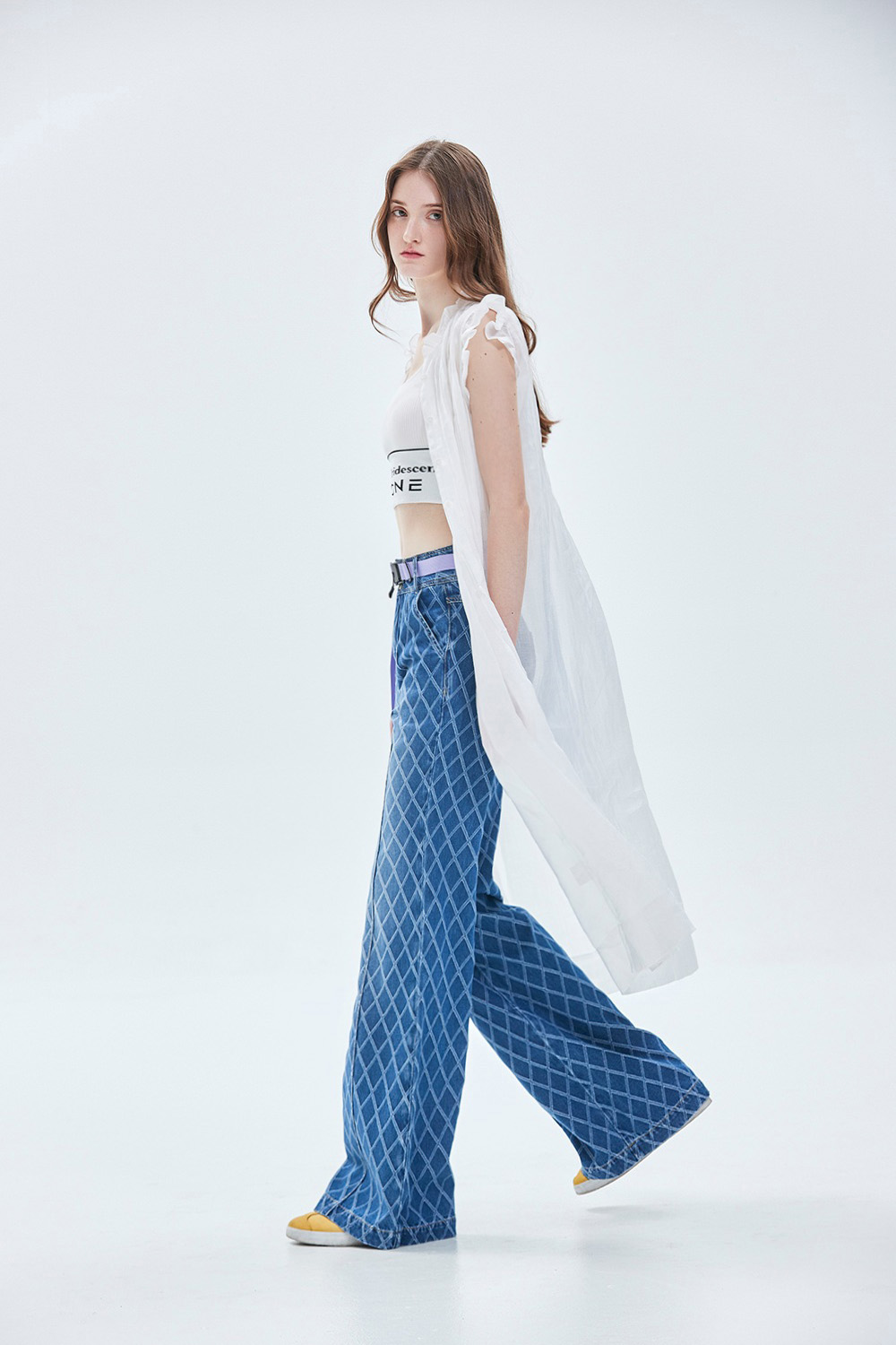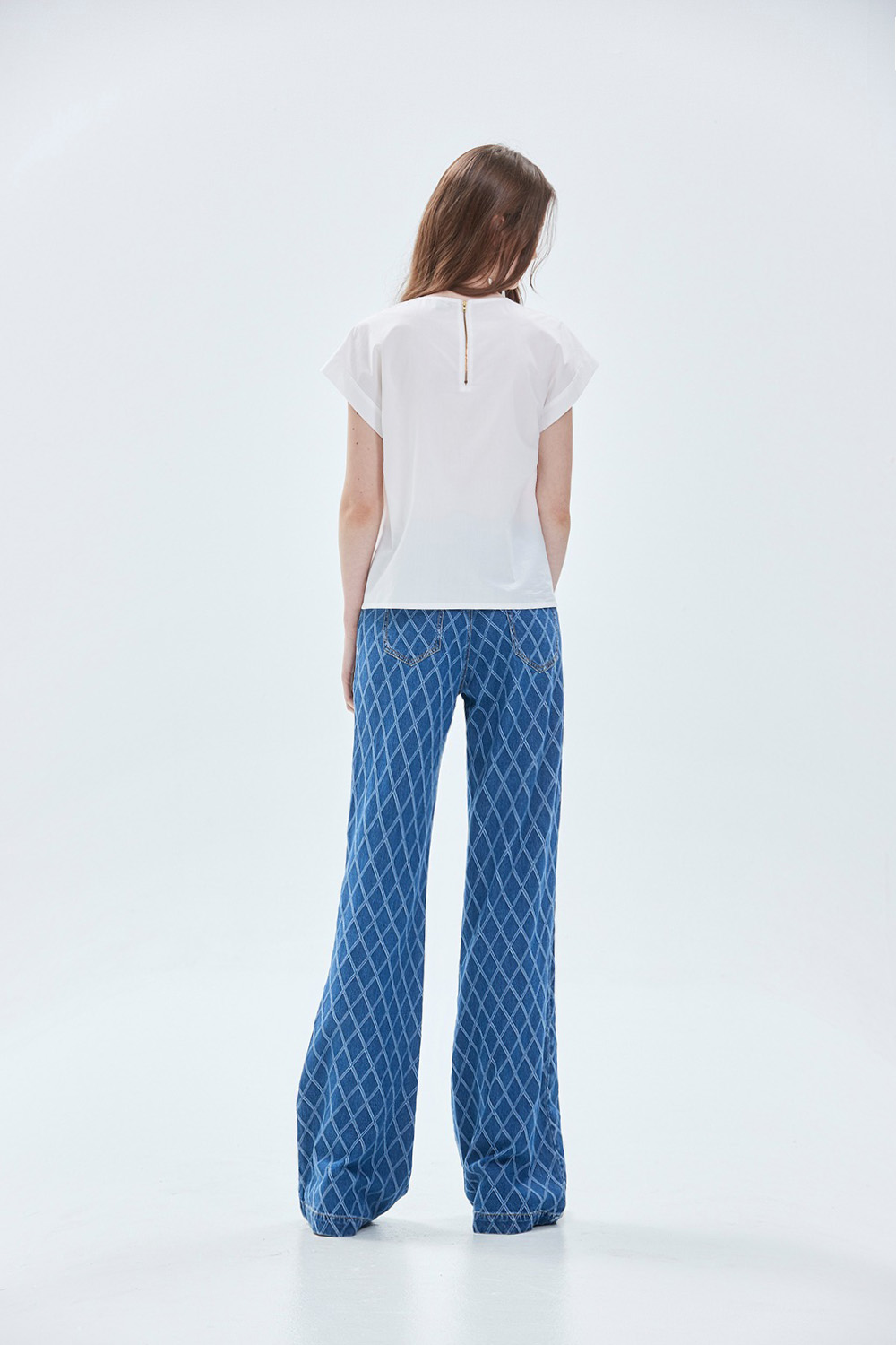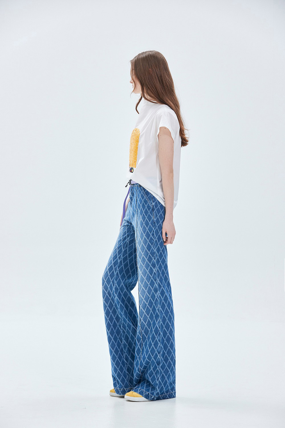 風華絕代菱紋牛仔小喇叭褲 - 深邃藏藍, 38