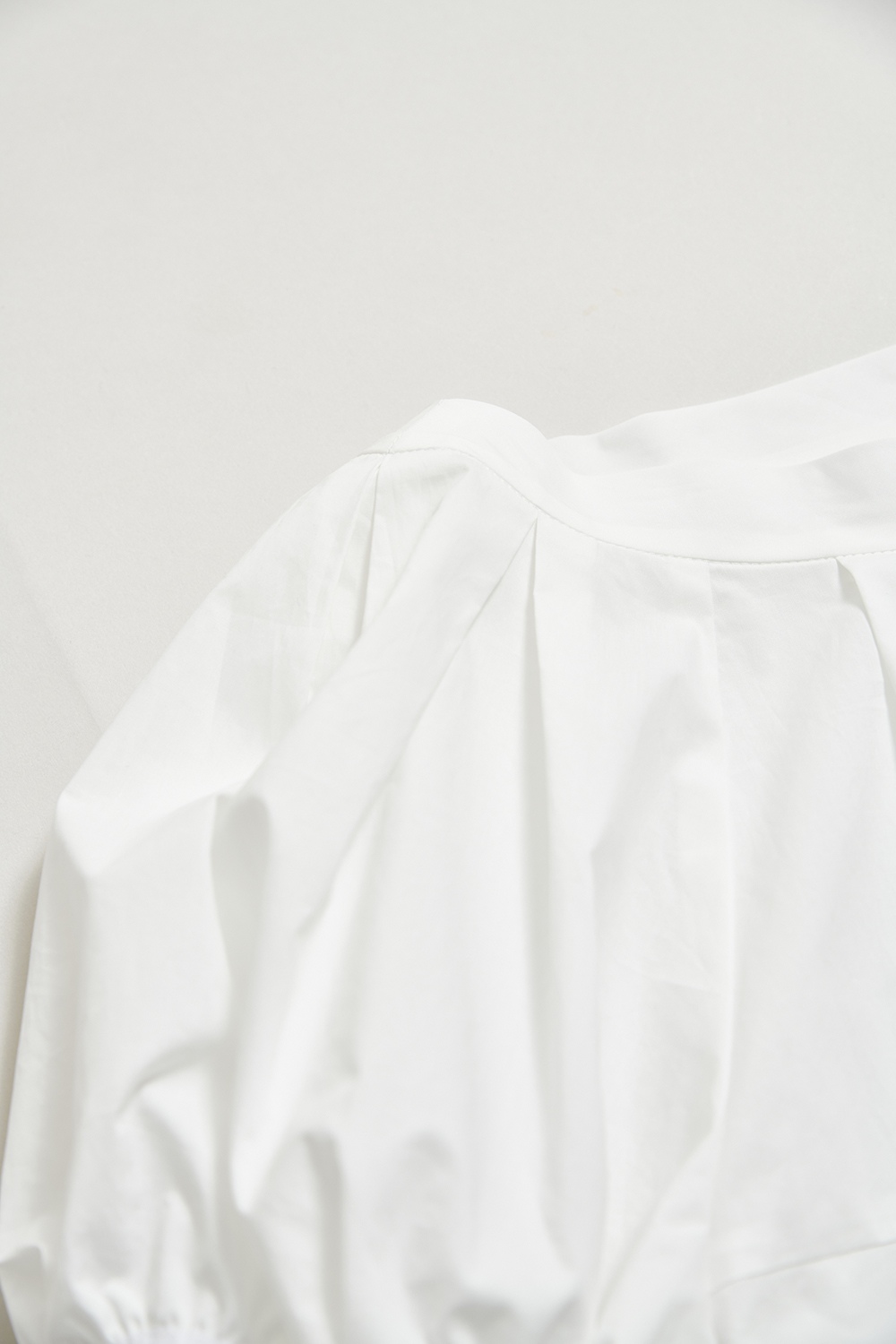 春日韻律抓褶荷葉澎袖上衣 - 無瑕純白, 38