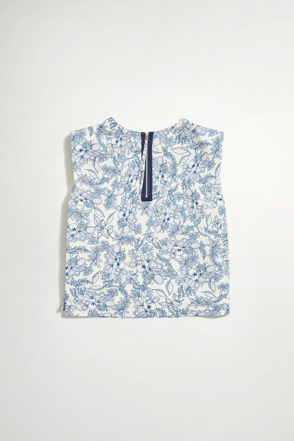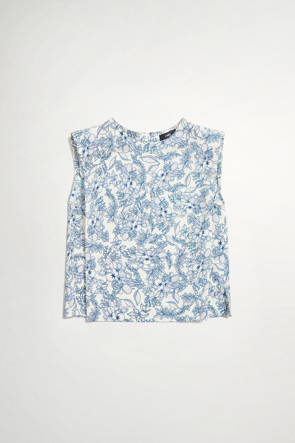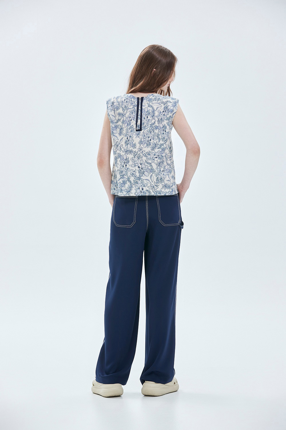 柔情舞曲印花墊肩背心 - 寧靜黛藍, 40