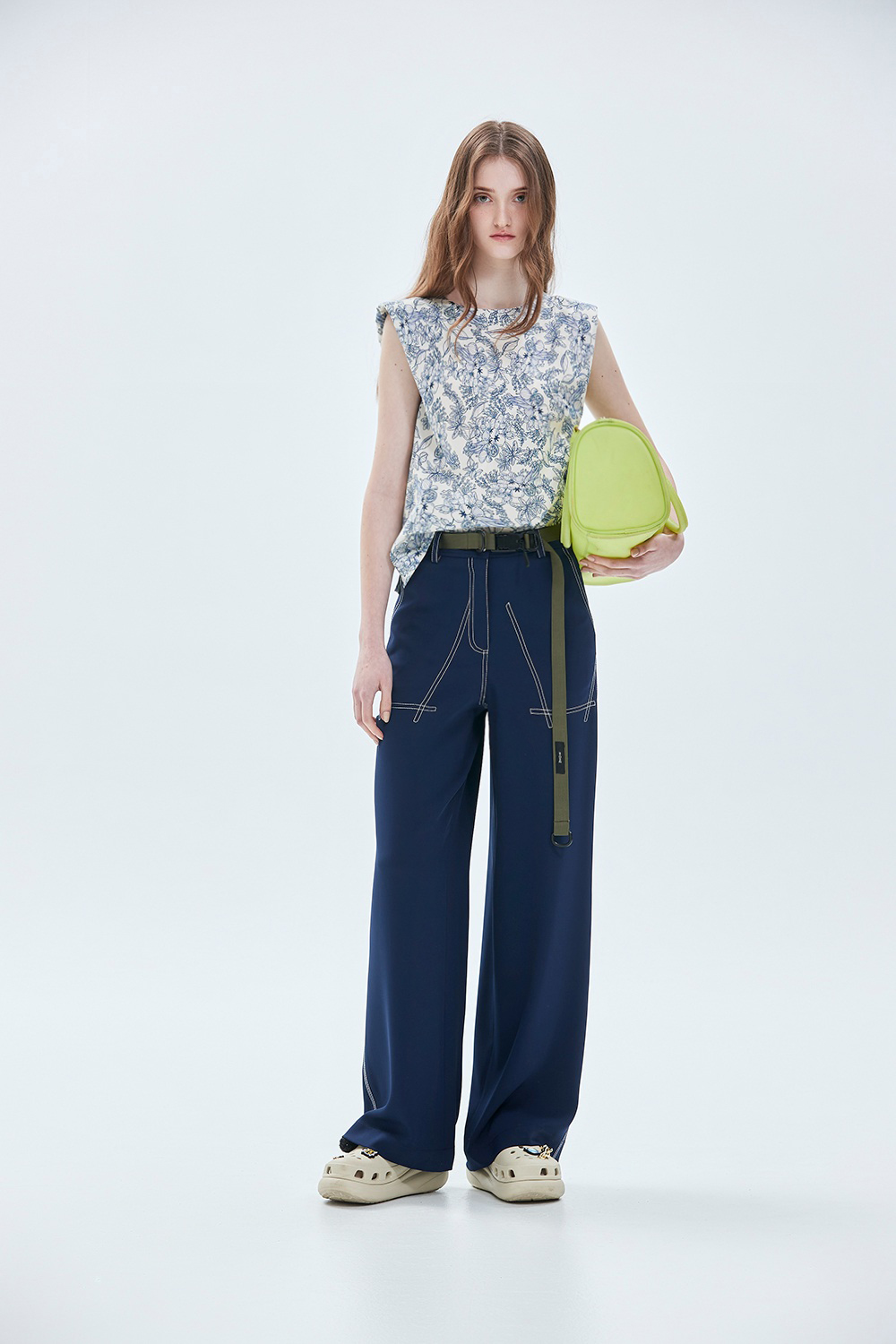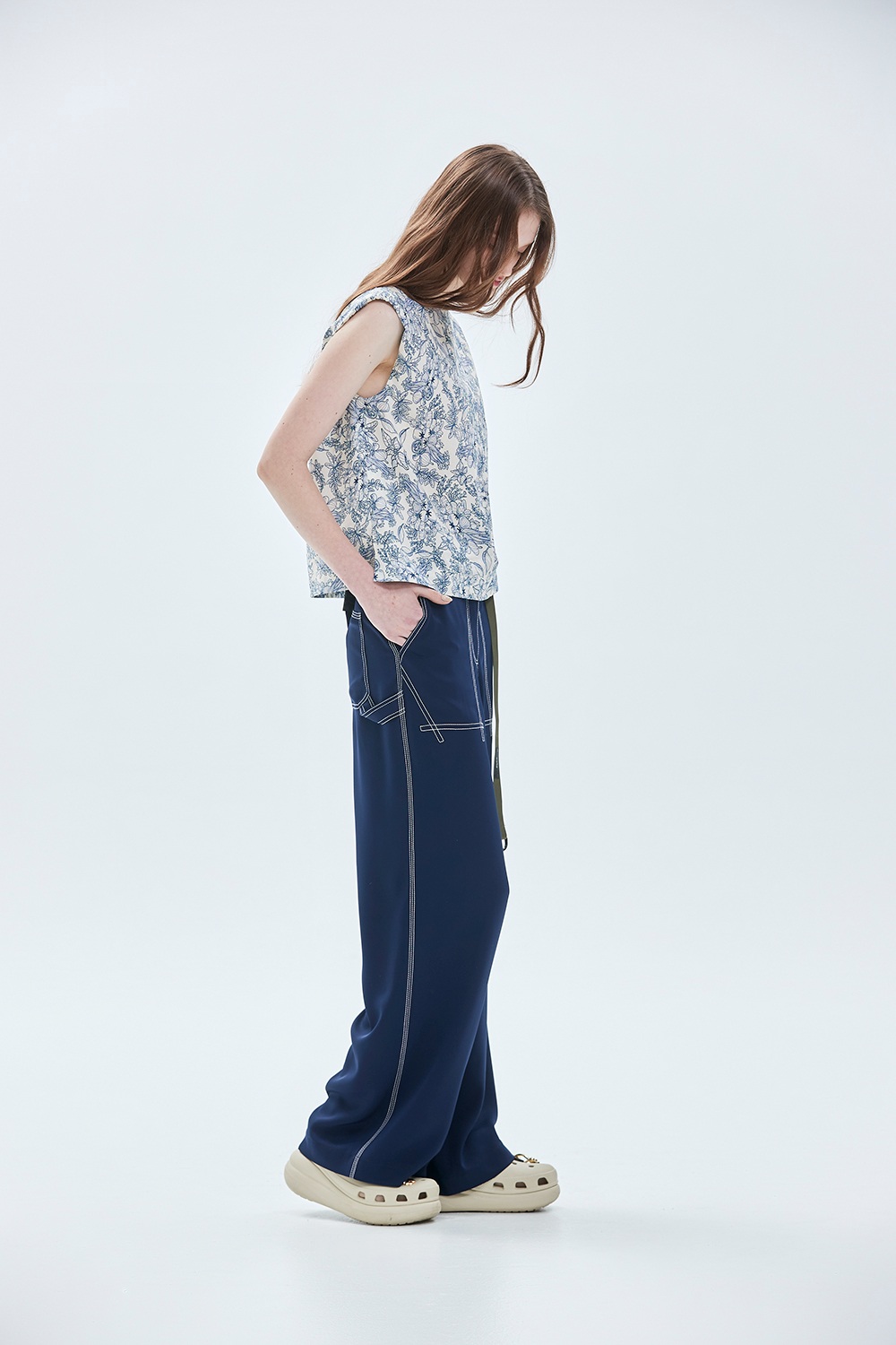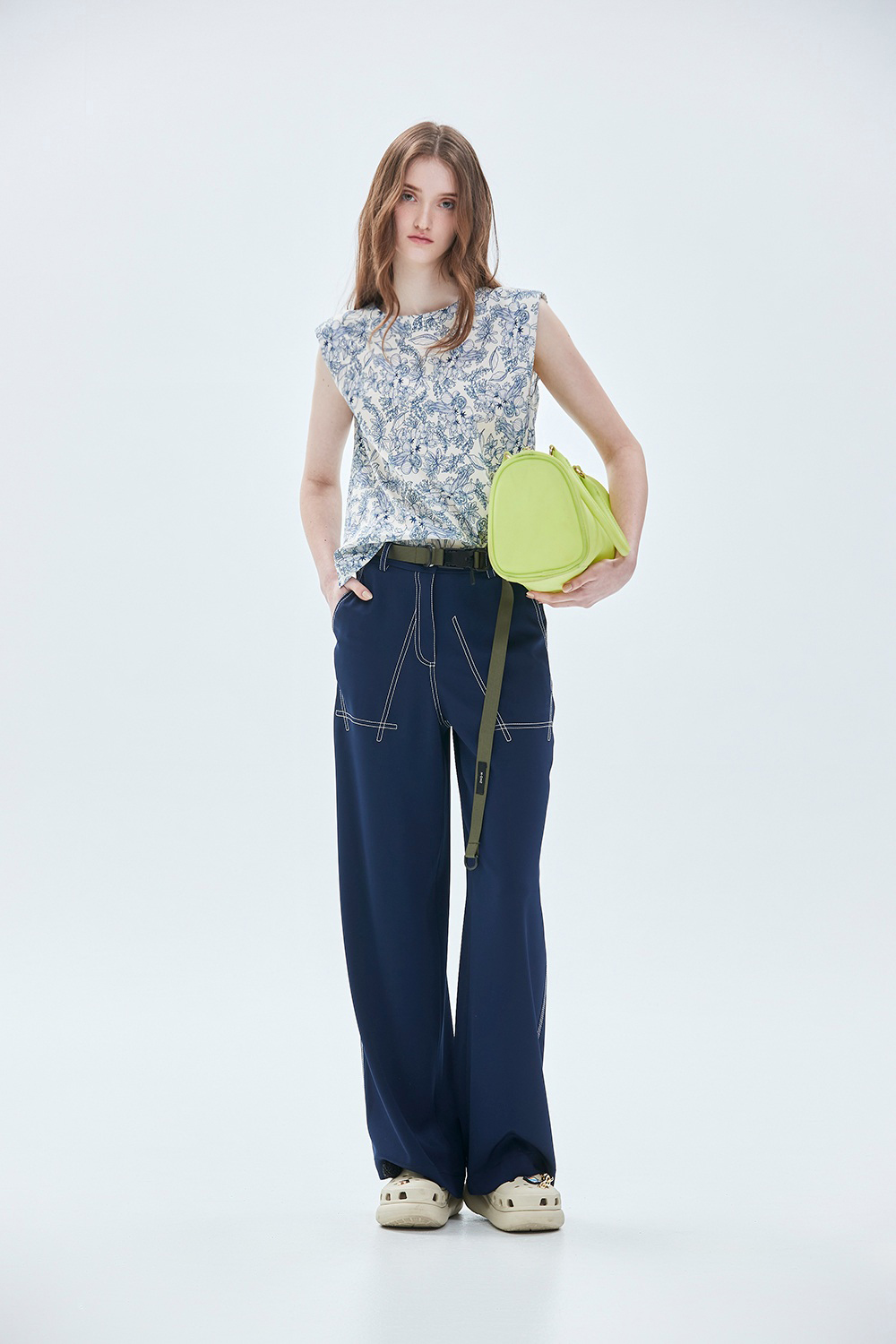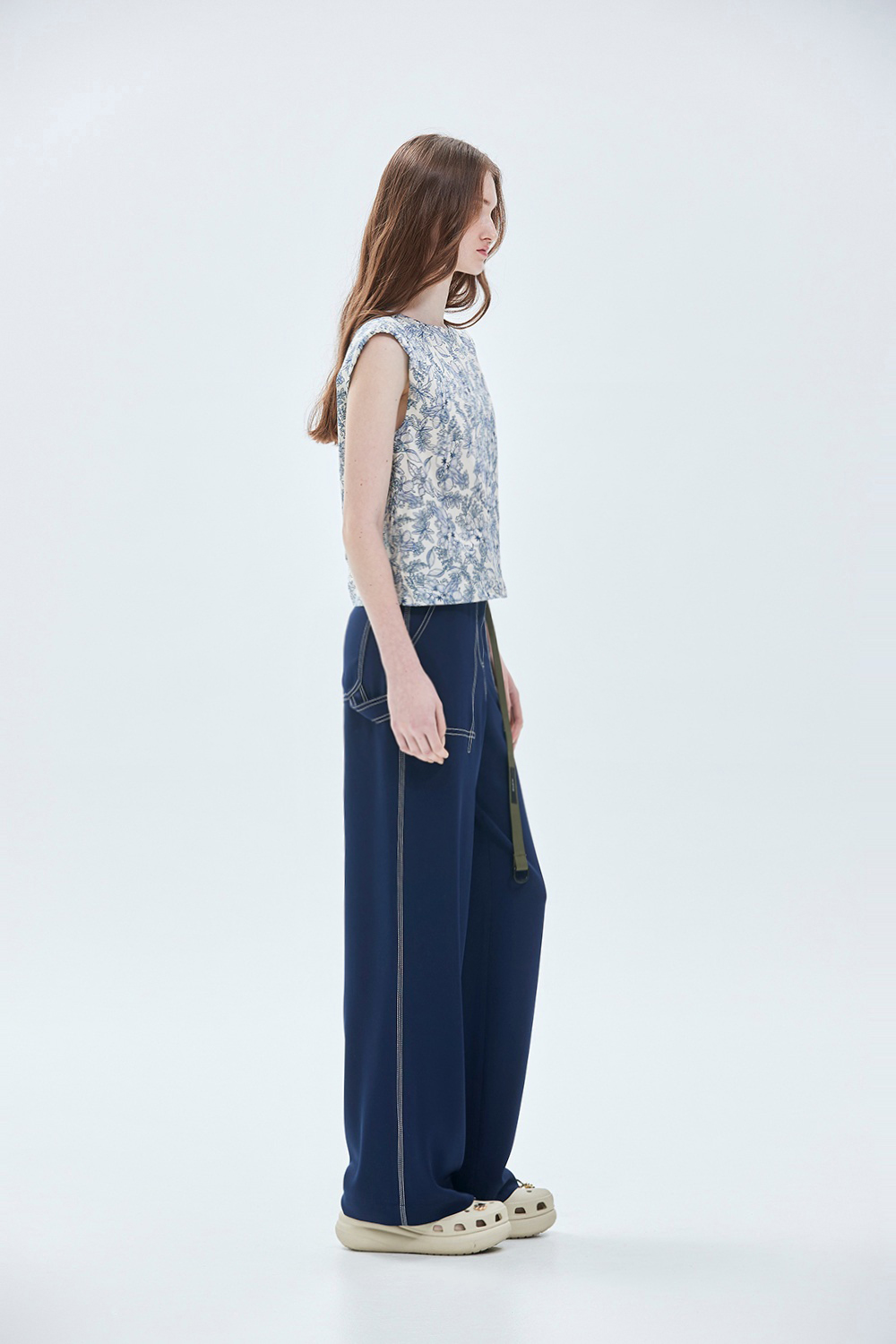 柔情舞曲印花墊肩背心 - 寧靜黛藍, 40