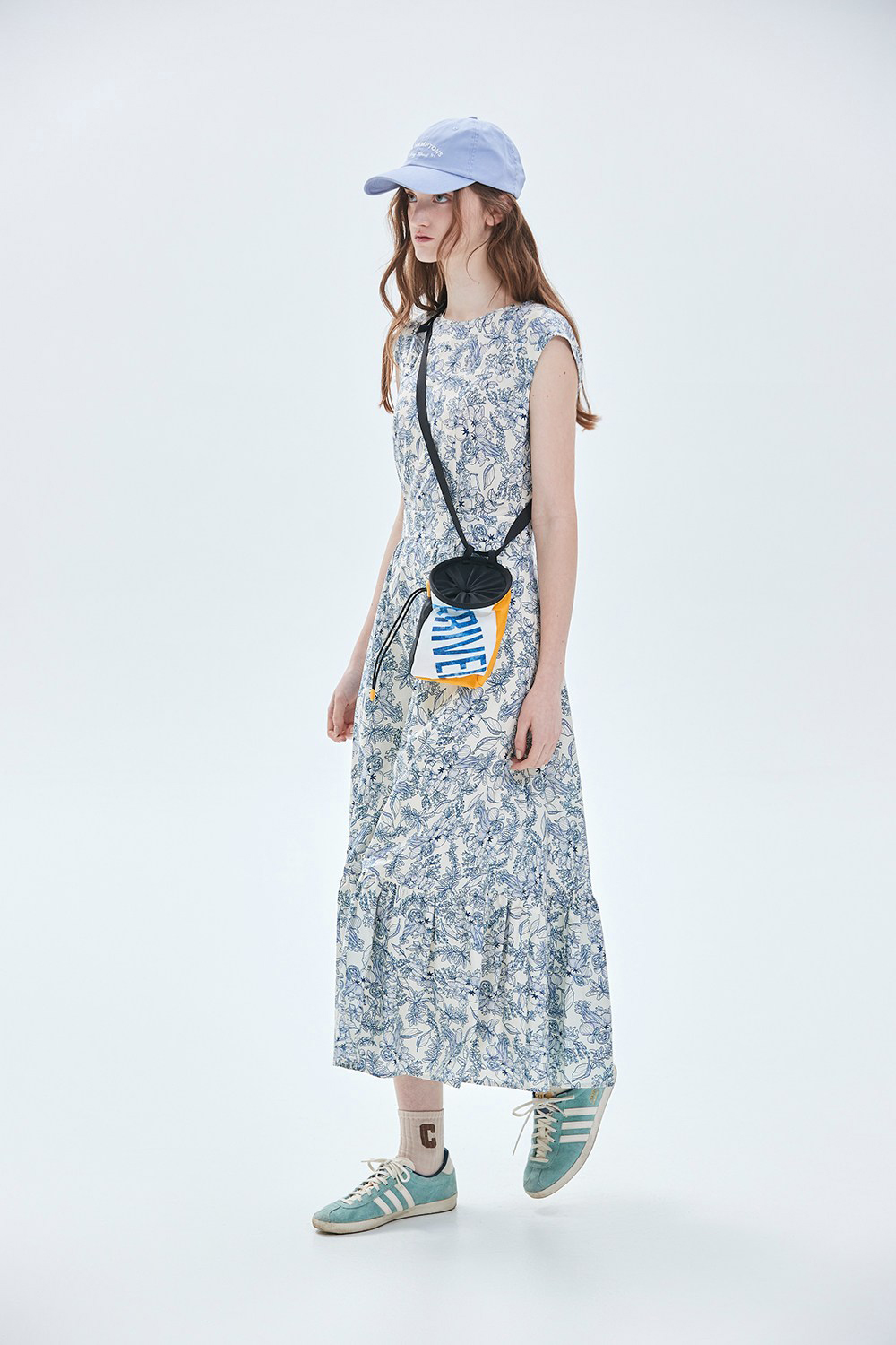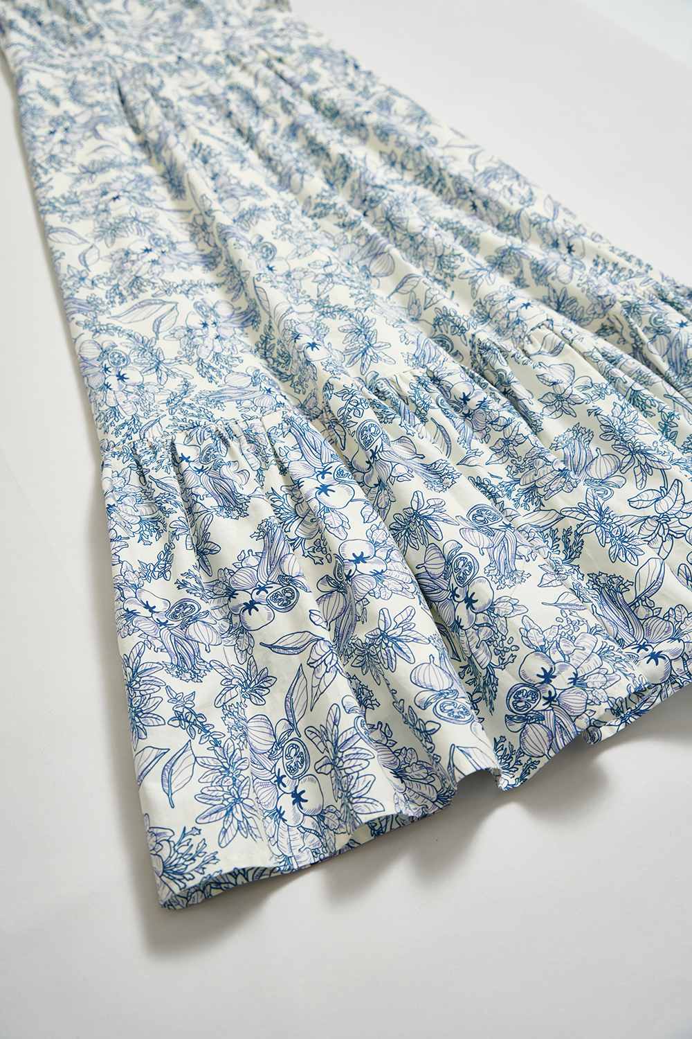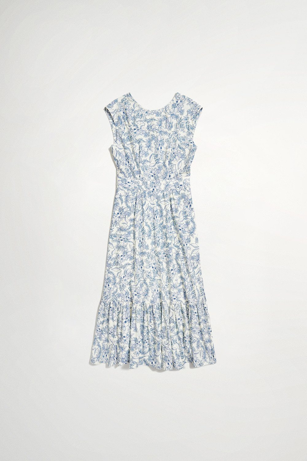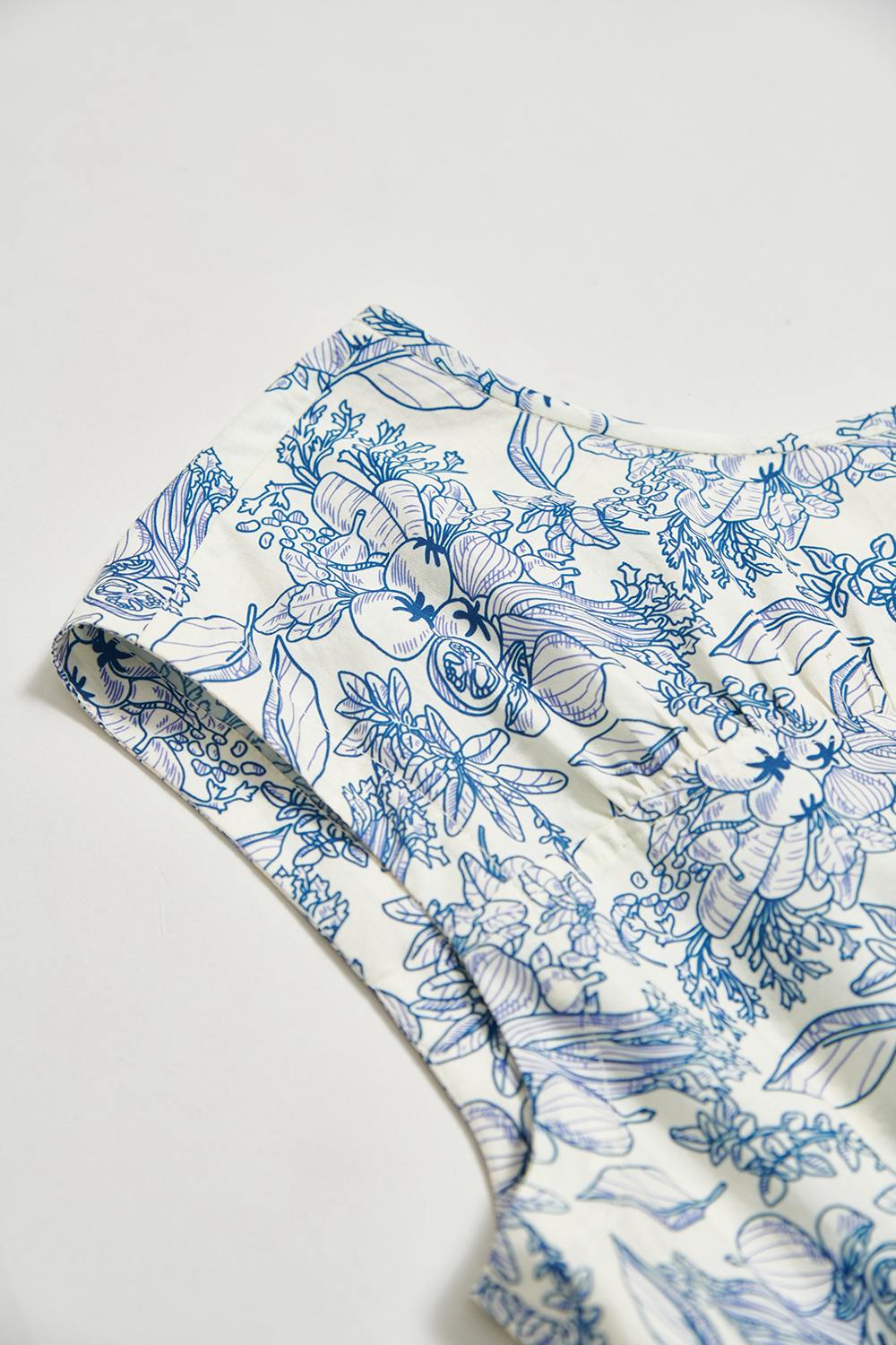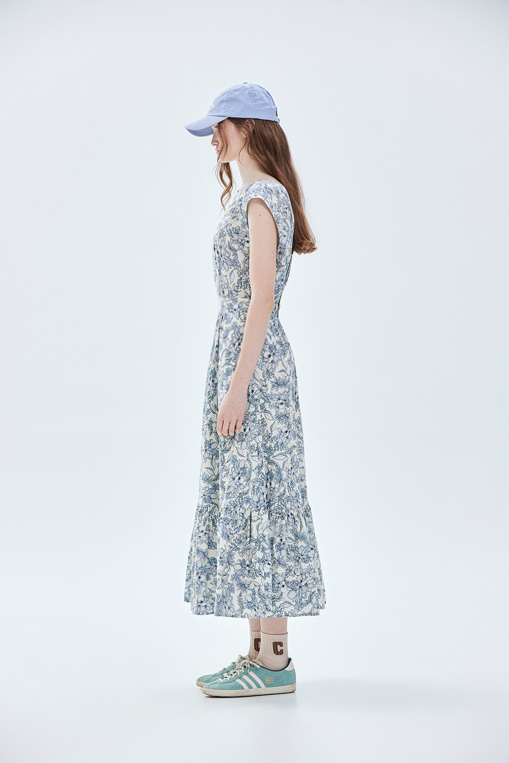 幽靜庭園長版印花蛋糕裙洋裝 - 寧靜黛藍, 38