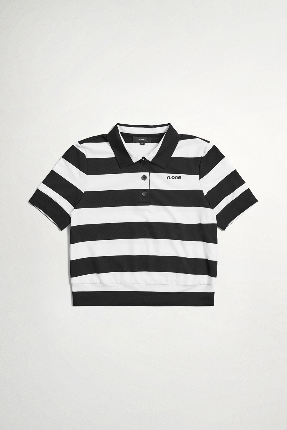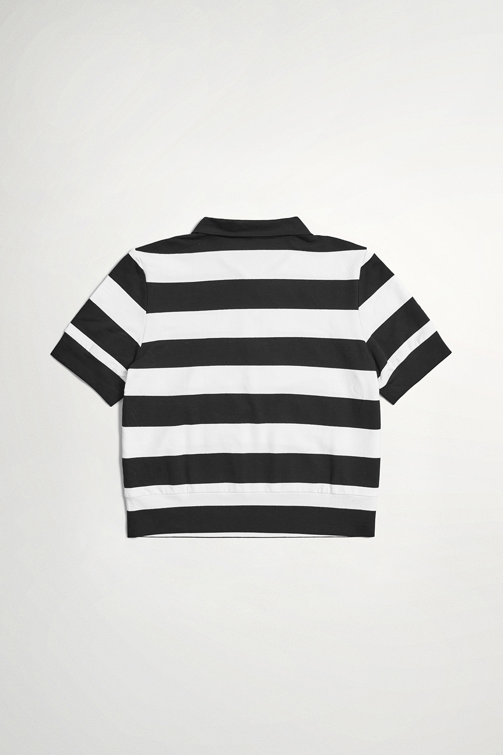 擺脫單調襯衫領配條上衣 - 黑白條紋, 38