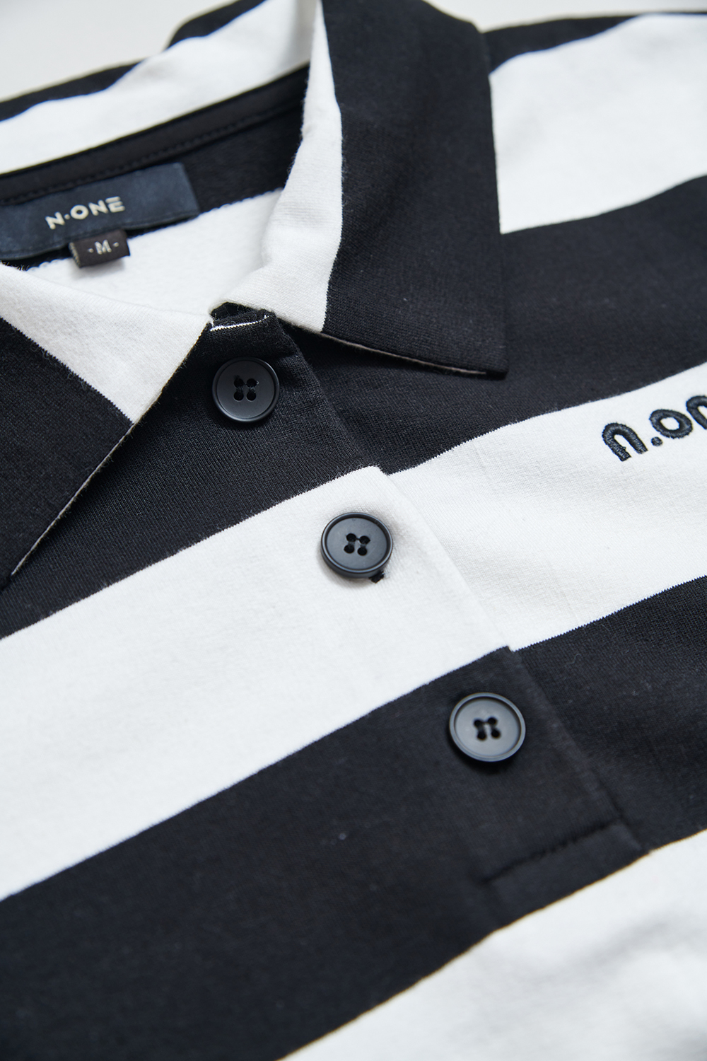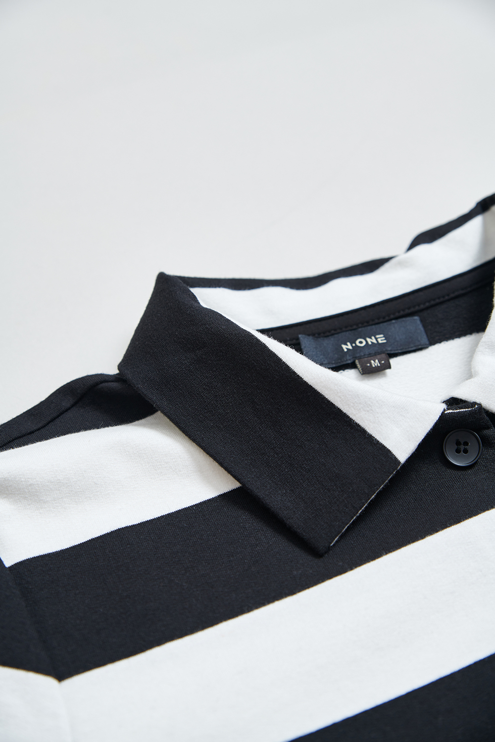 擺脫單調襯衫領配條上衣 - 黑白條紋, 40