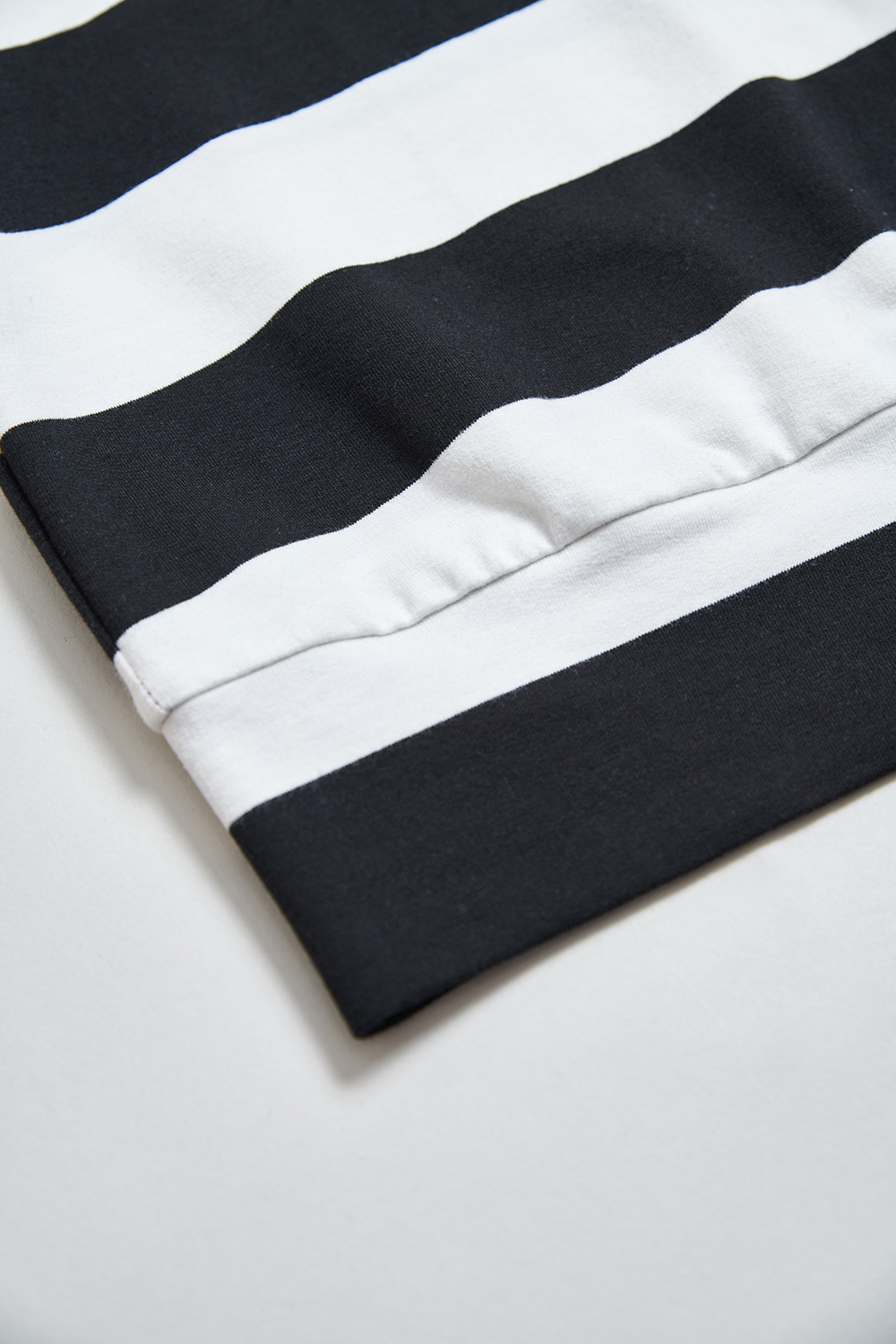 擺脫單調襯衫領配條上衣 - 黑白條紋, 36