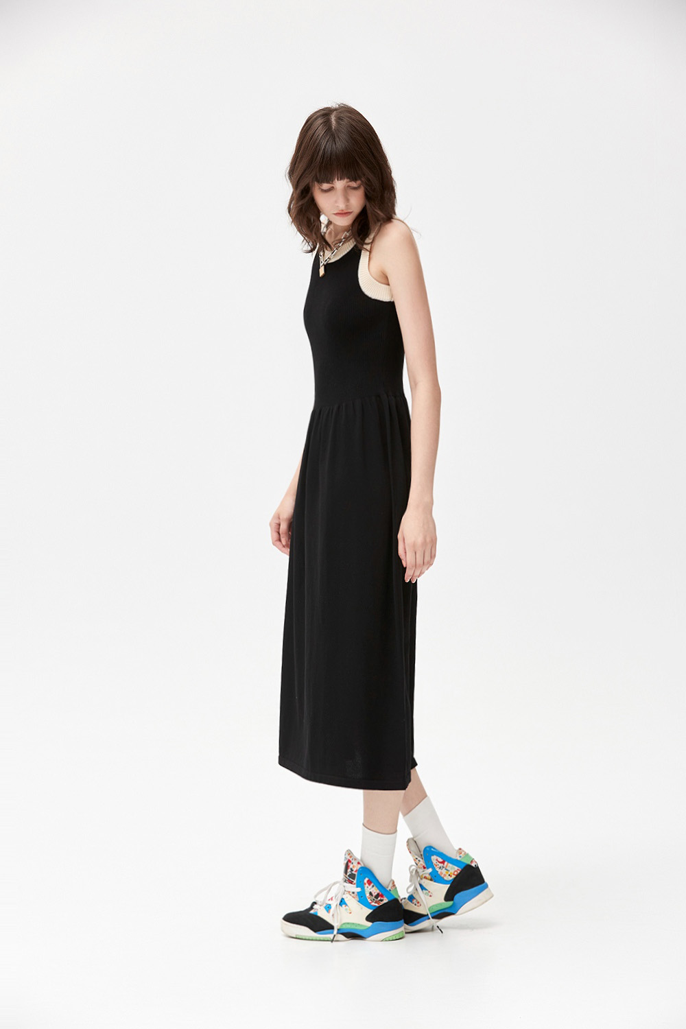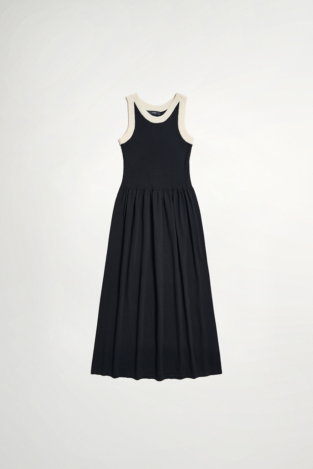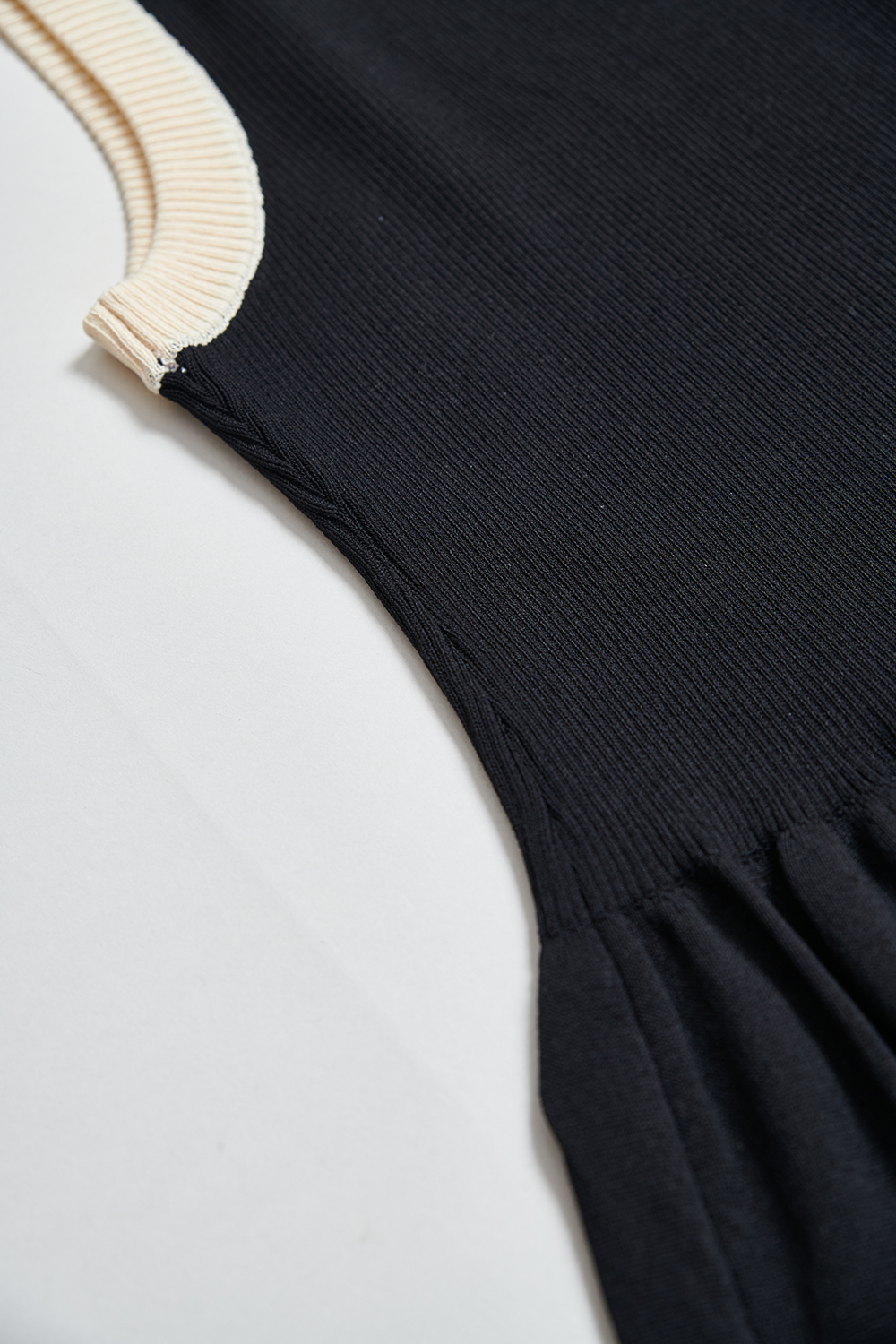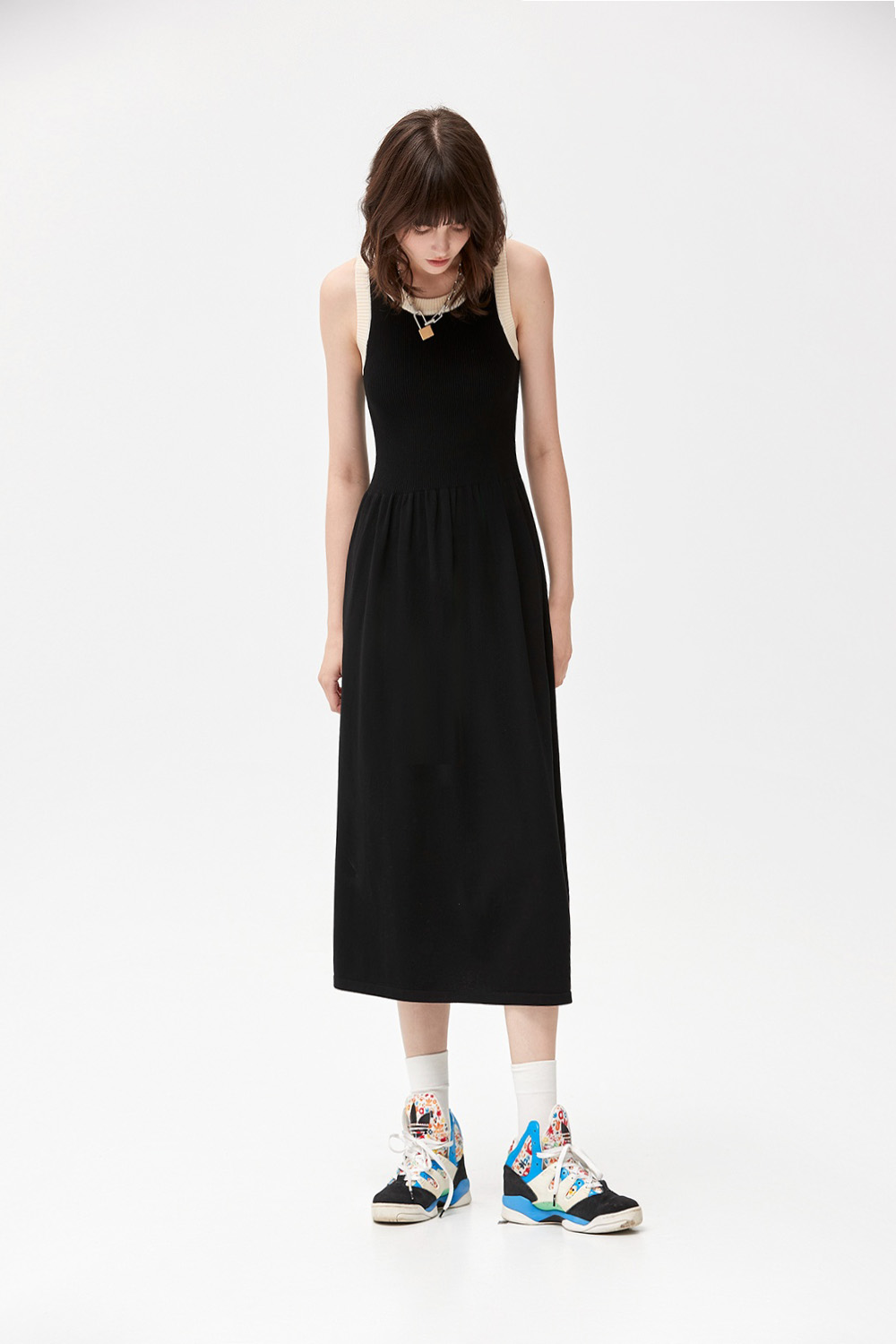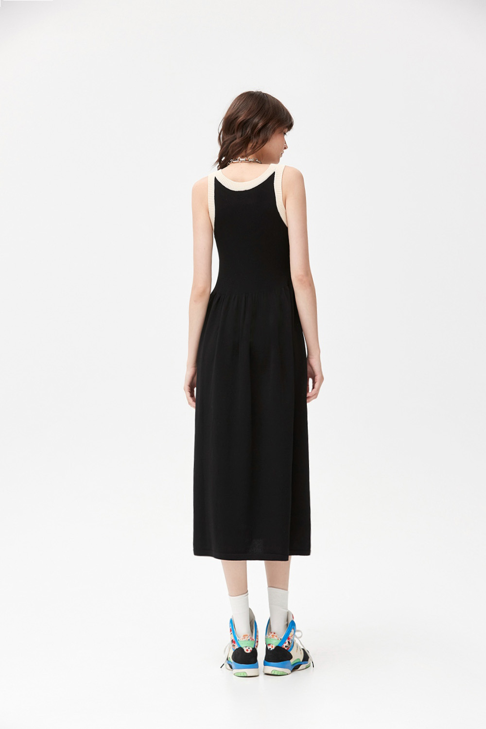 優雅大方配色肩帶洋裝 - 神祕純黑, 36