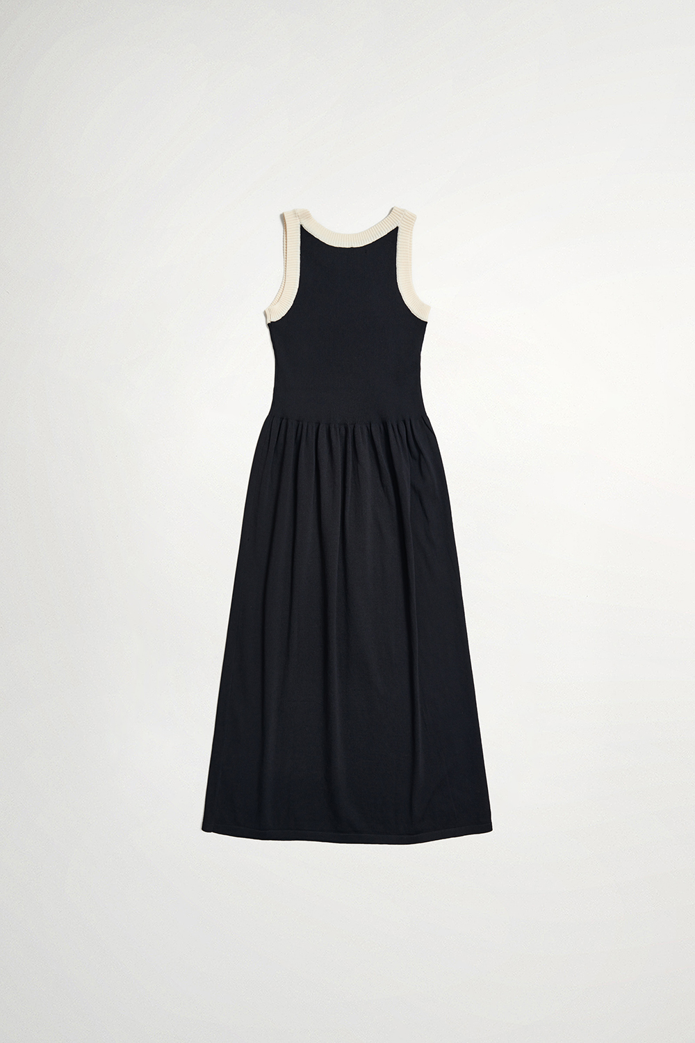 優雅大方配色肩帶洋裝 - 神祕純黑, 40