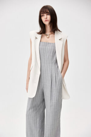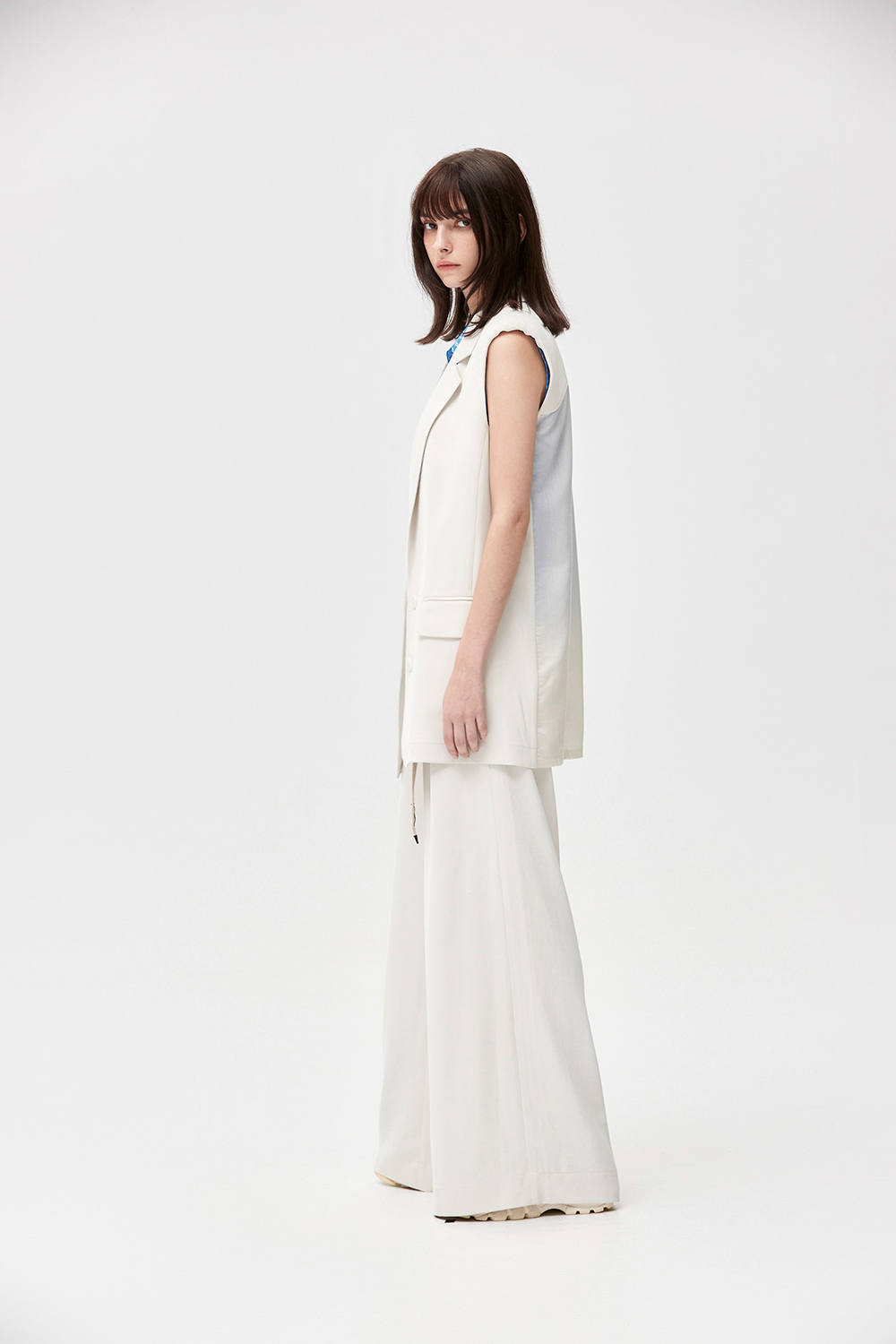 柔光鈴蘭透感剪接西裝外套 - 奶油杏色, 36