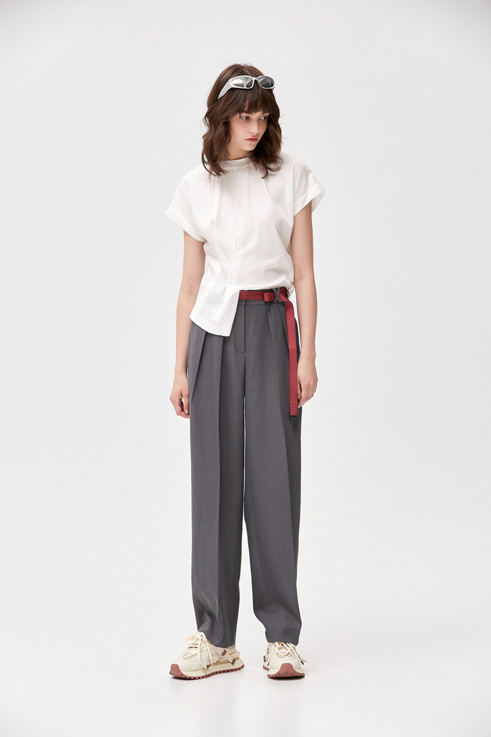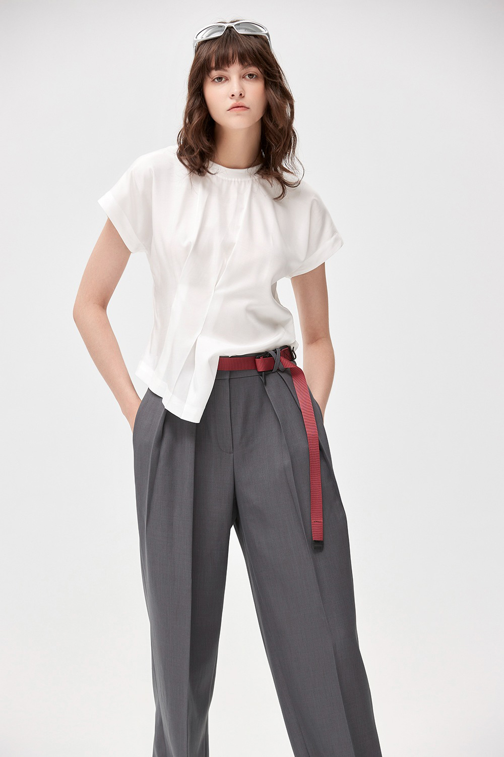 沉寂曙光質感抓褶西裝褲 - 沉穩霧灰, 40