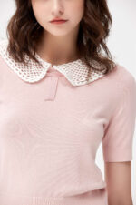 尋覓浪漫蕾絲翻領針織上衣