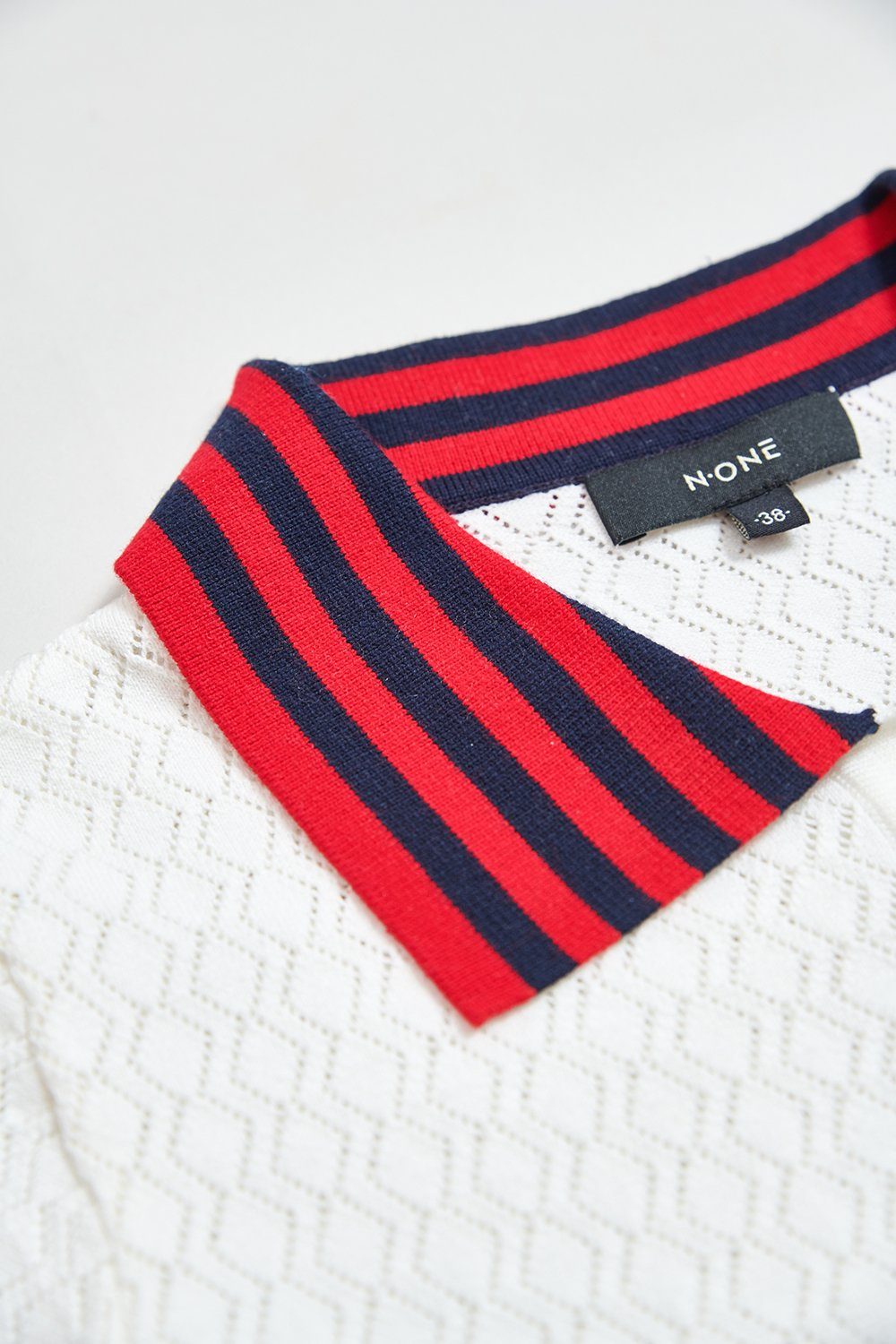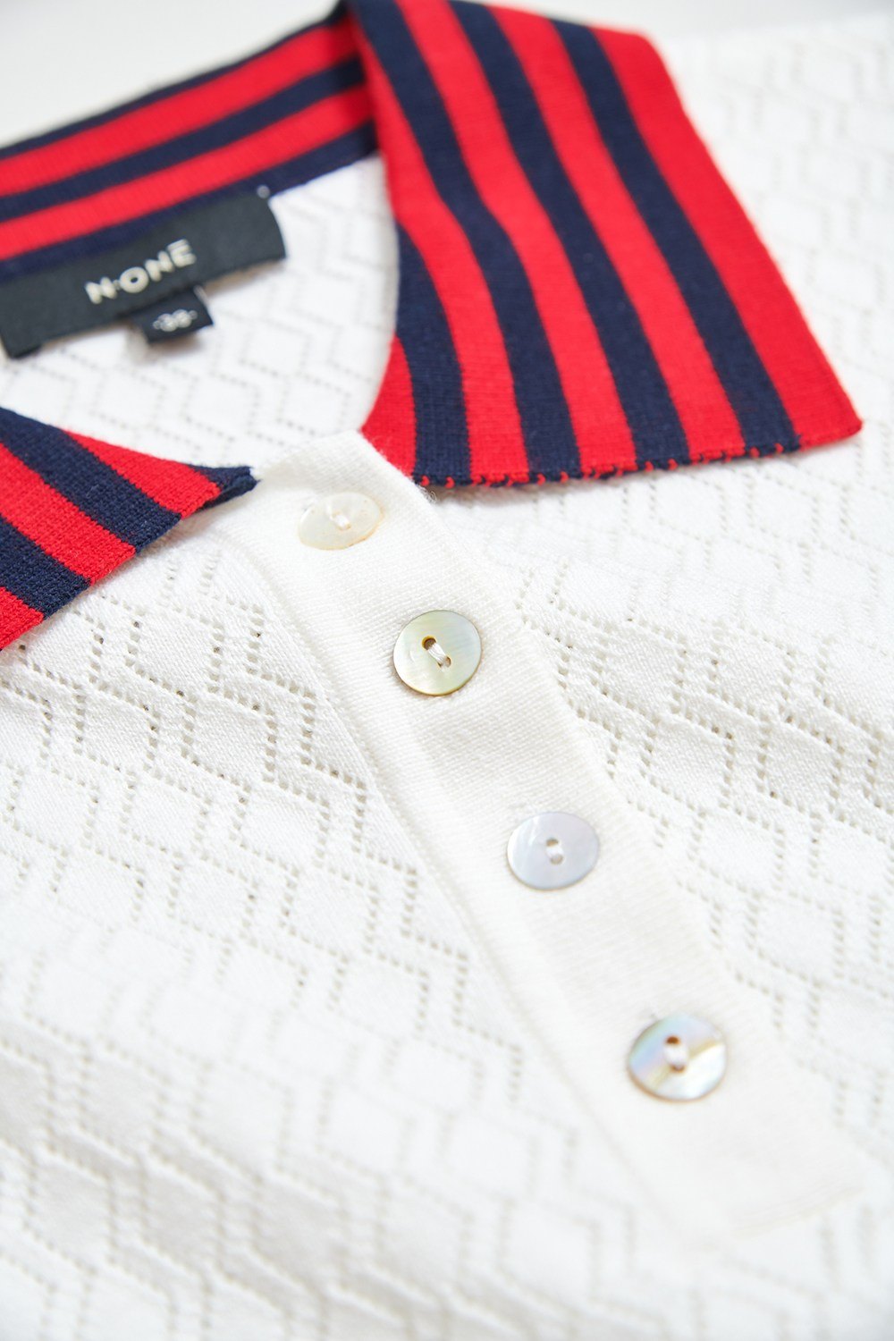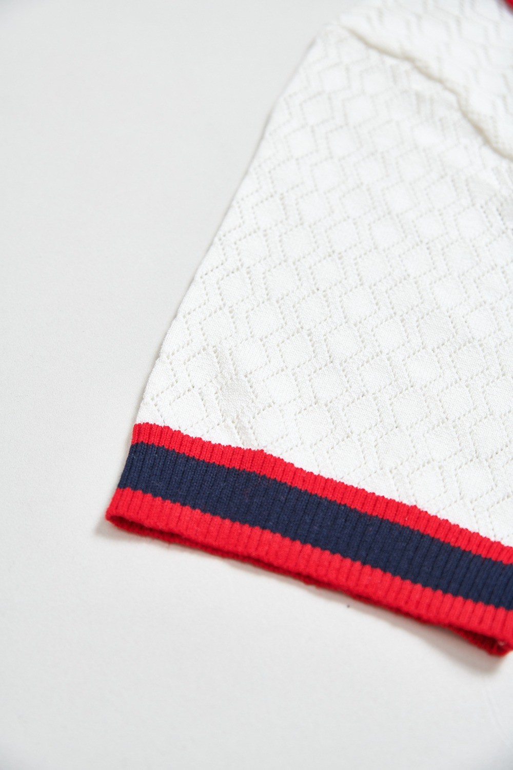 復古潮流簍空菱紋配條針織上衣 - 無瑕純白, 38
