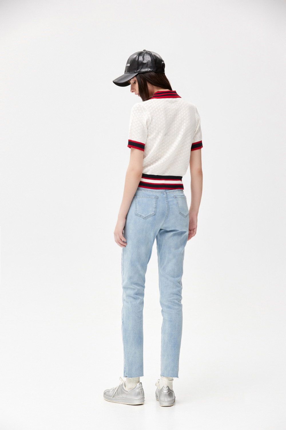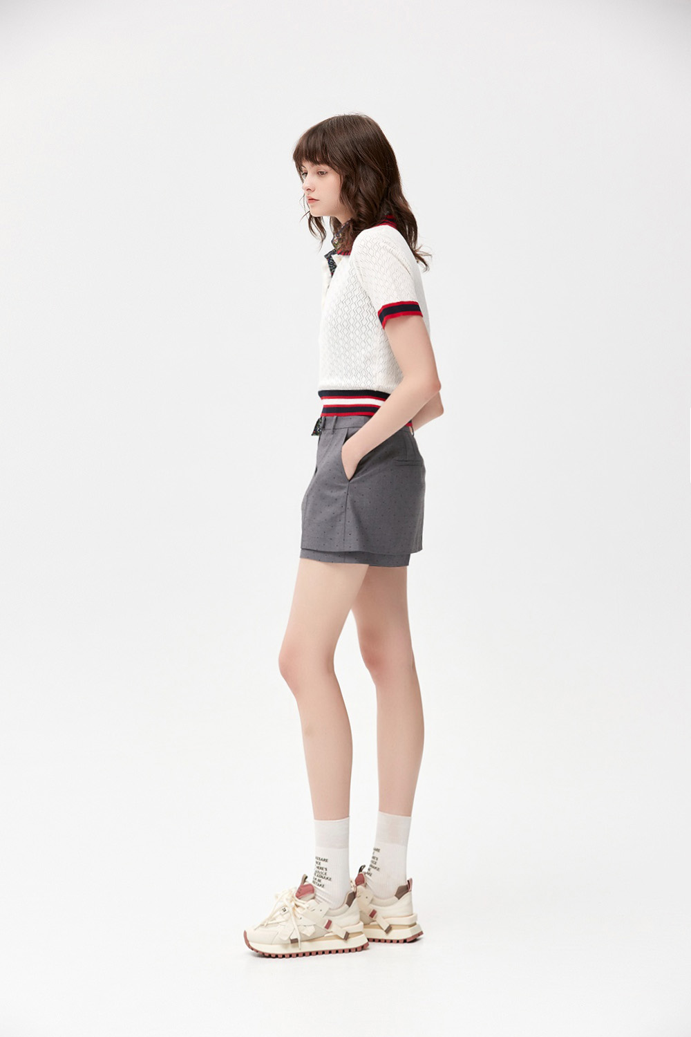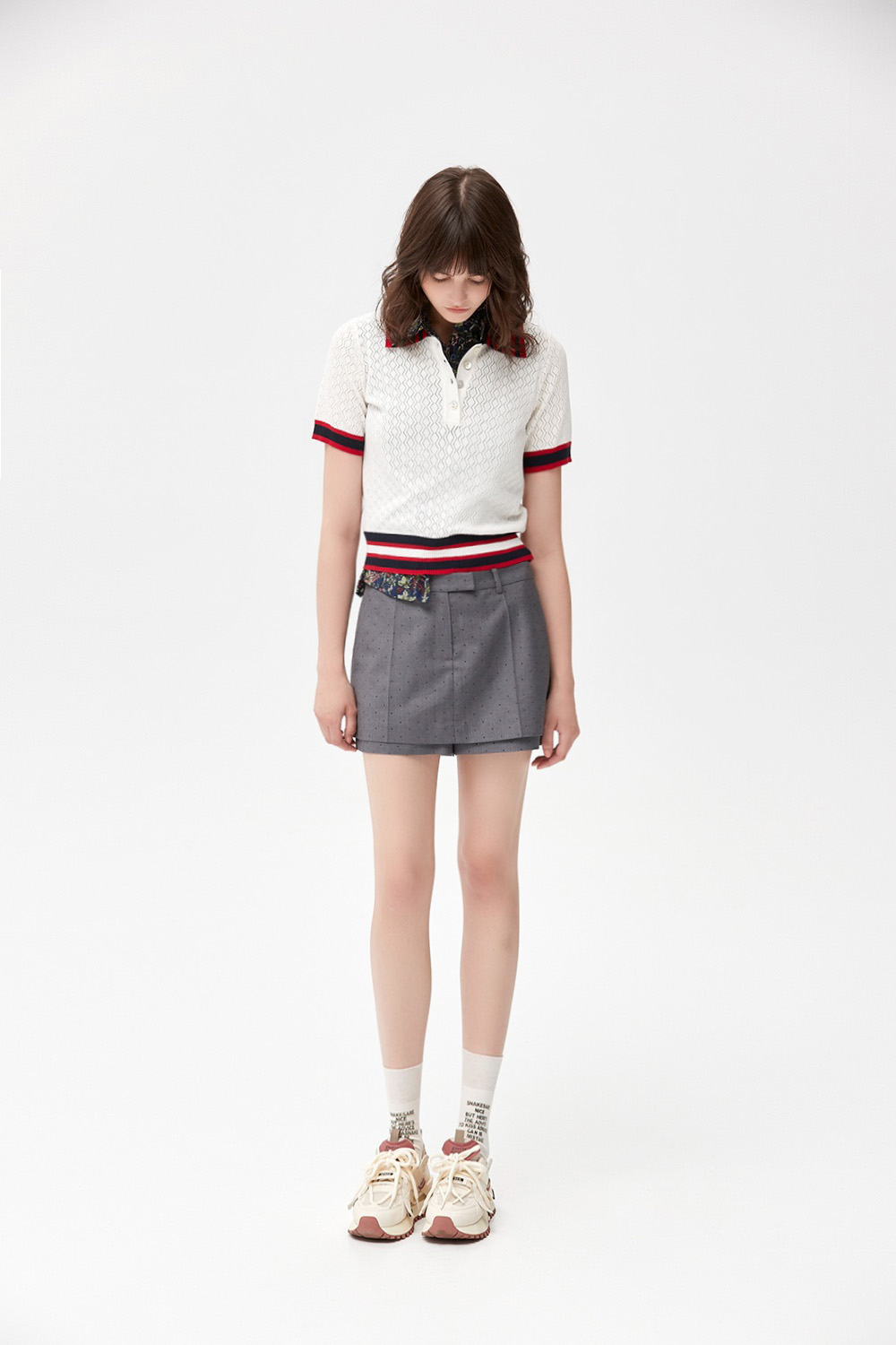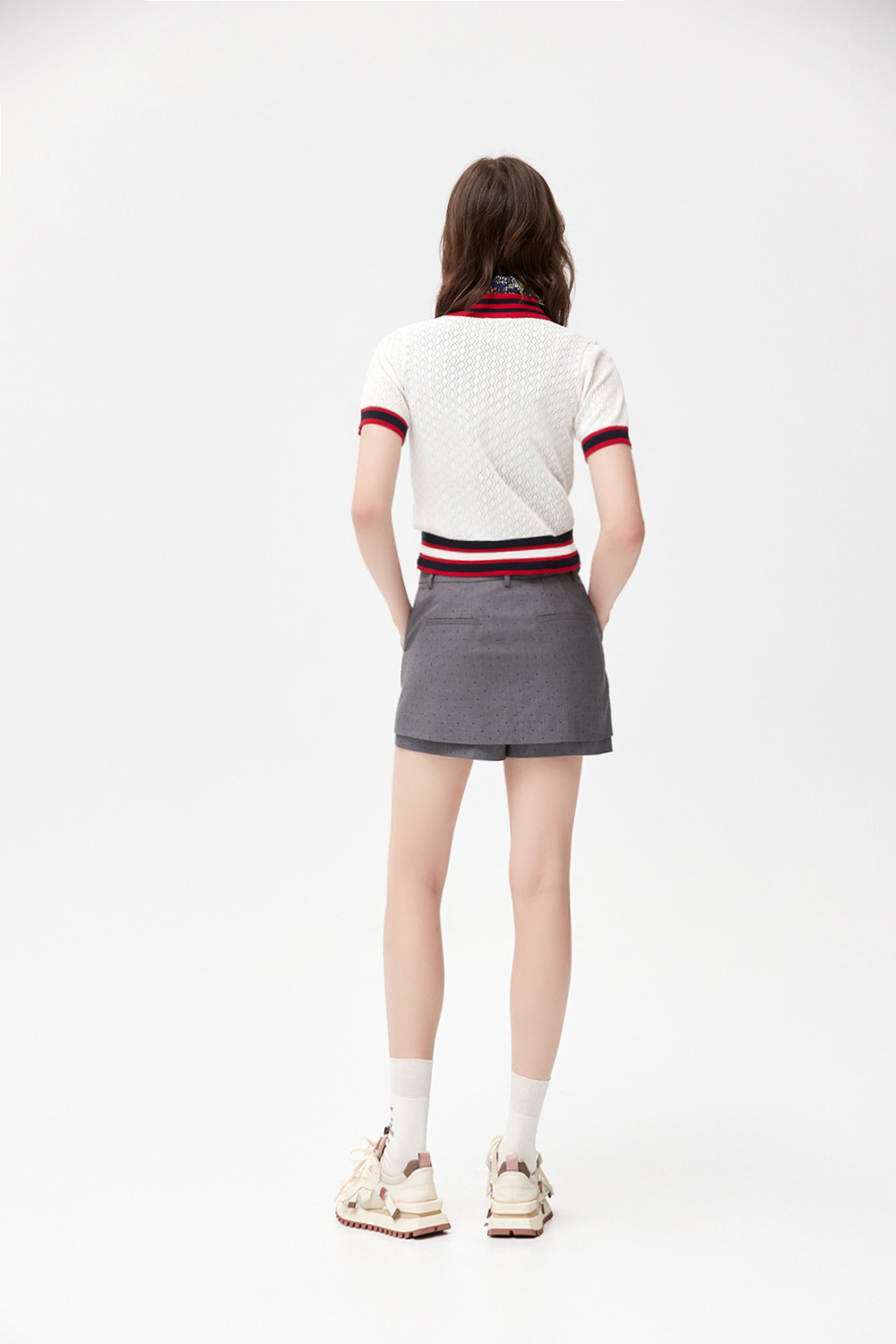 復古潮流簍空菱紋配條針織上衣 - 無瑕純白, 38