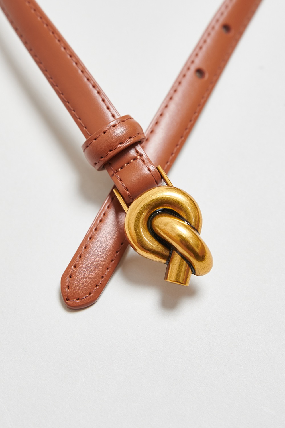 時髦扭轉金屬頭腰帶 - 琥珀棕色, F