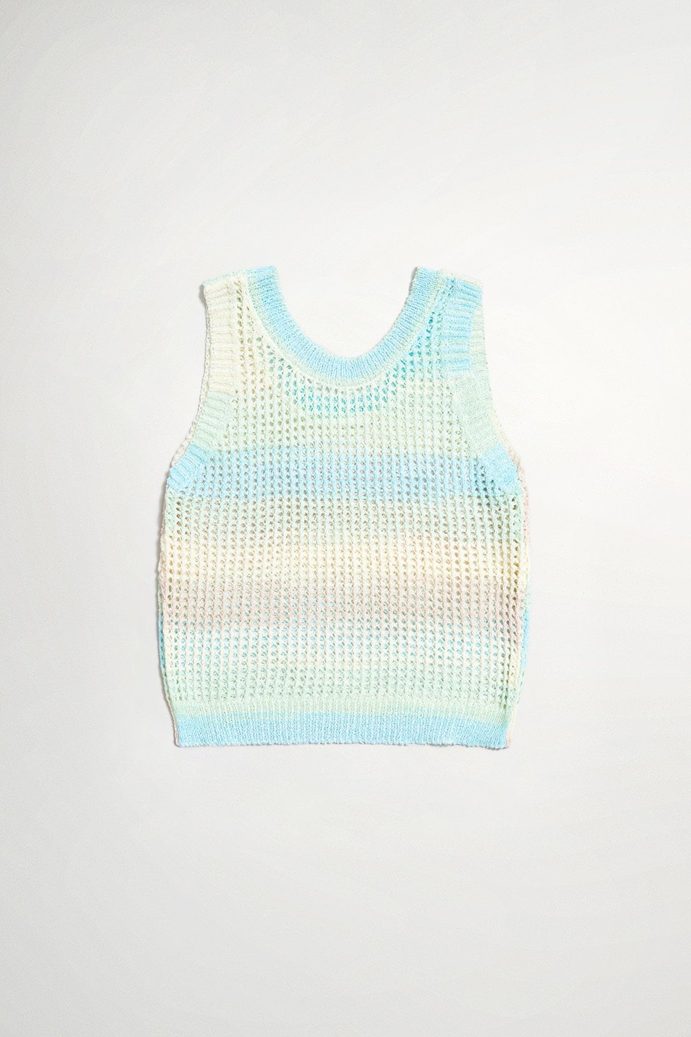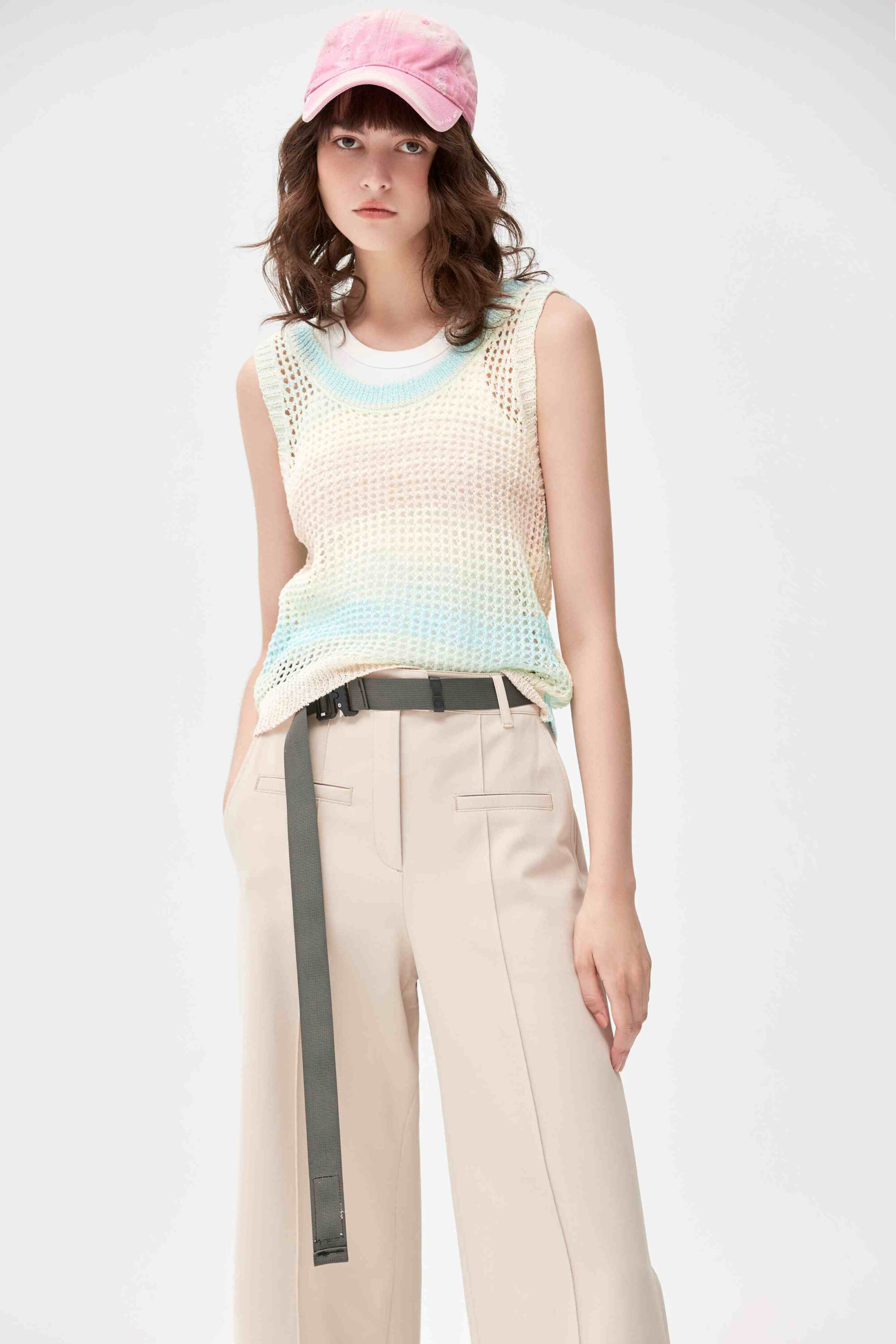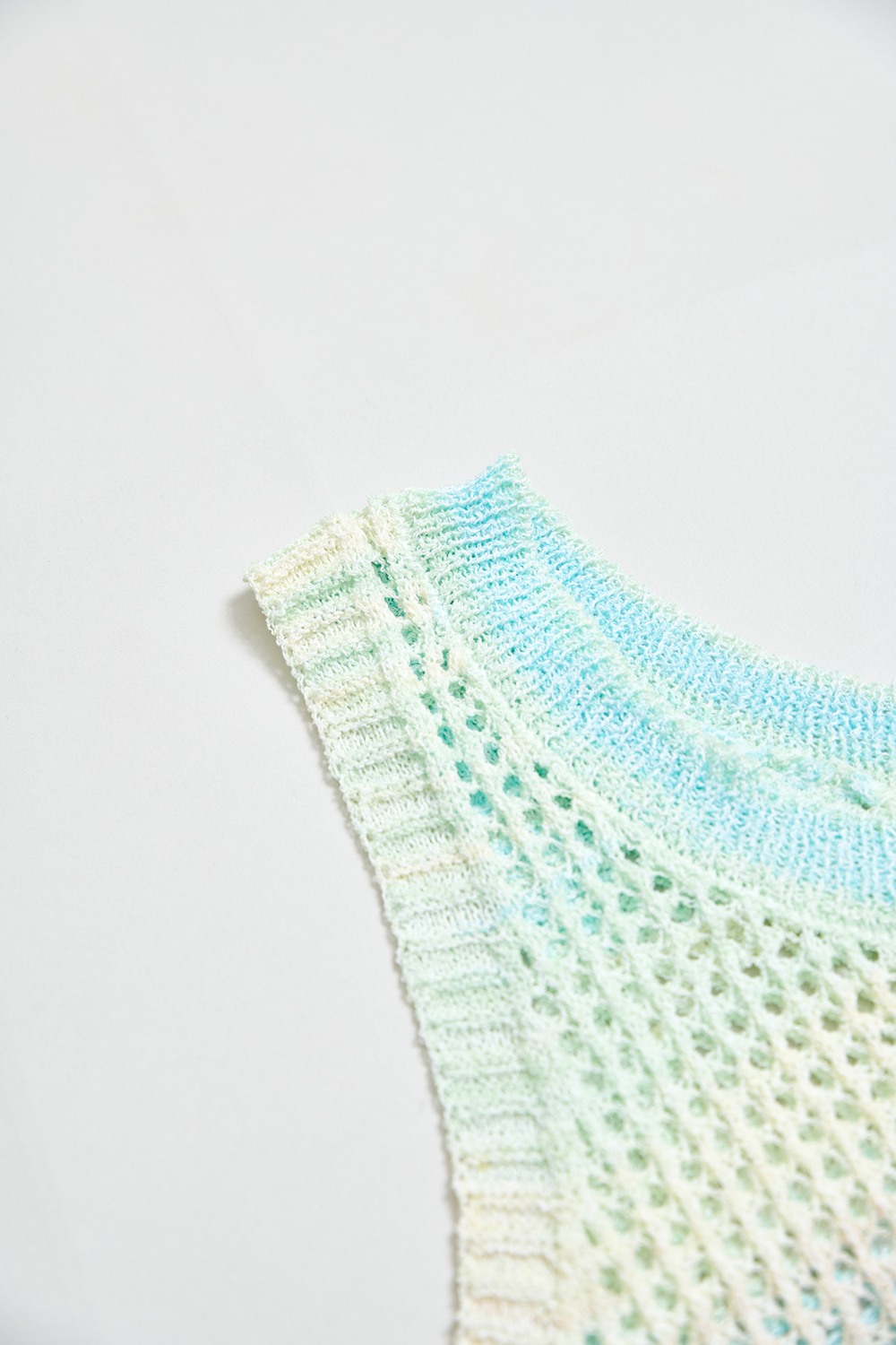 夏日遐想漸層洞洞針織上衣 - 夢幻灰綠, F