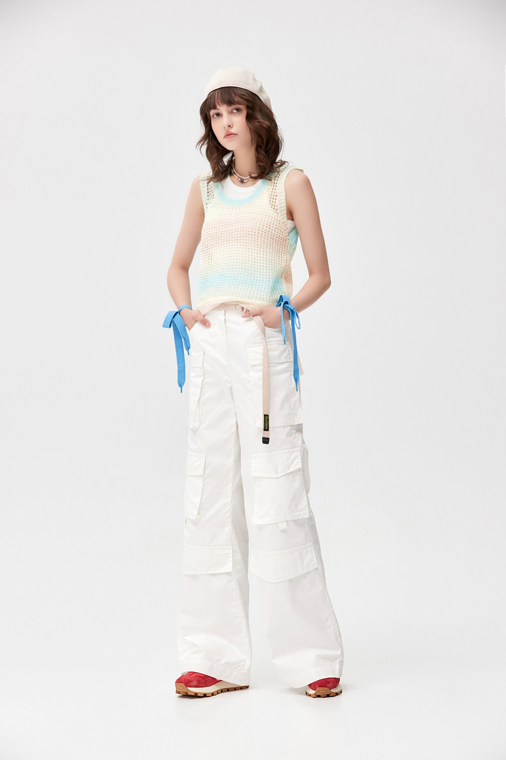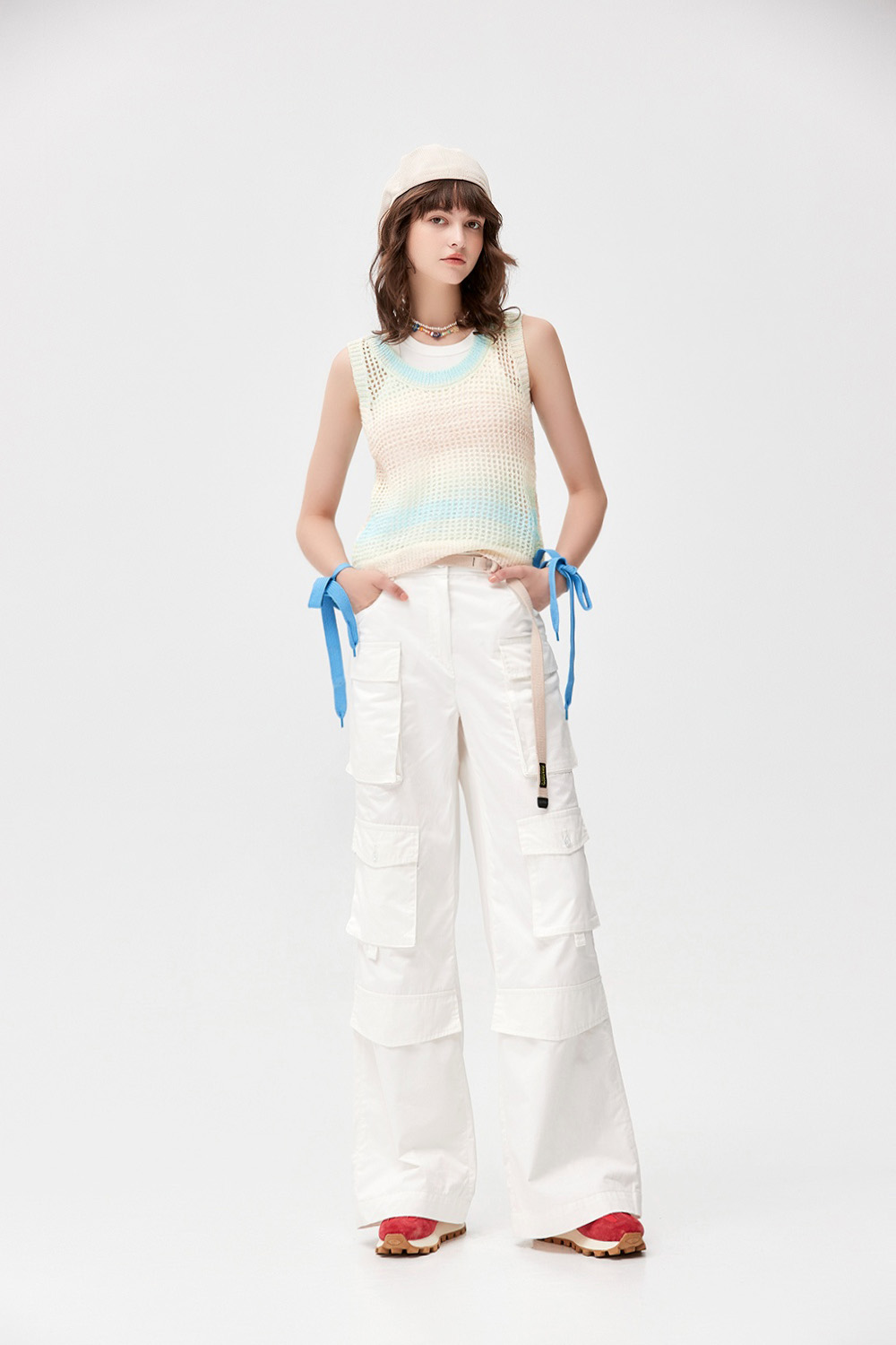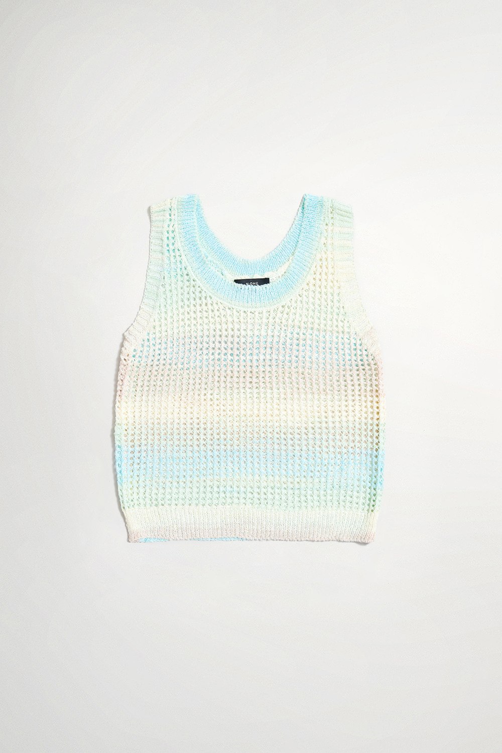 夏日遐想漸層洞洞針織上衣 - 夢幻灰綠, F