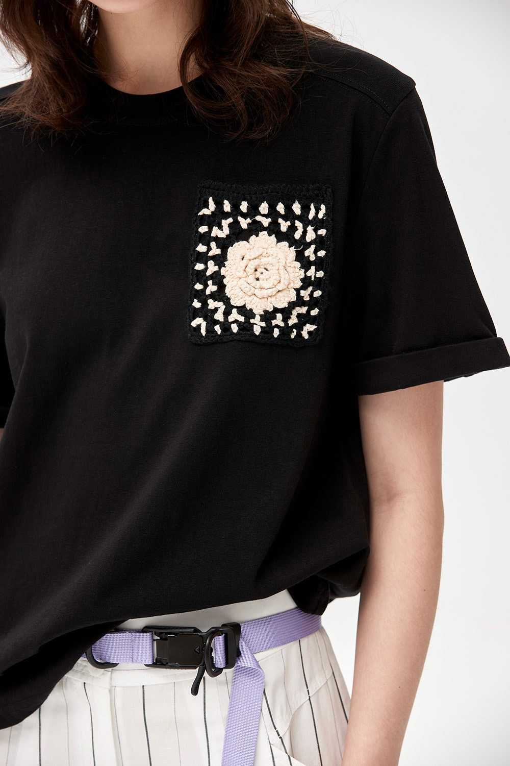 率性典藏玫瑰百搭素面T桖 - 神祕純黑, 36