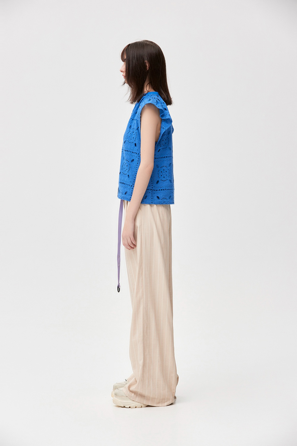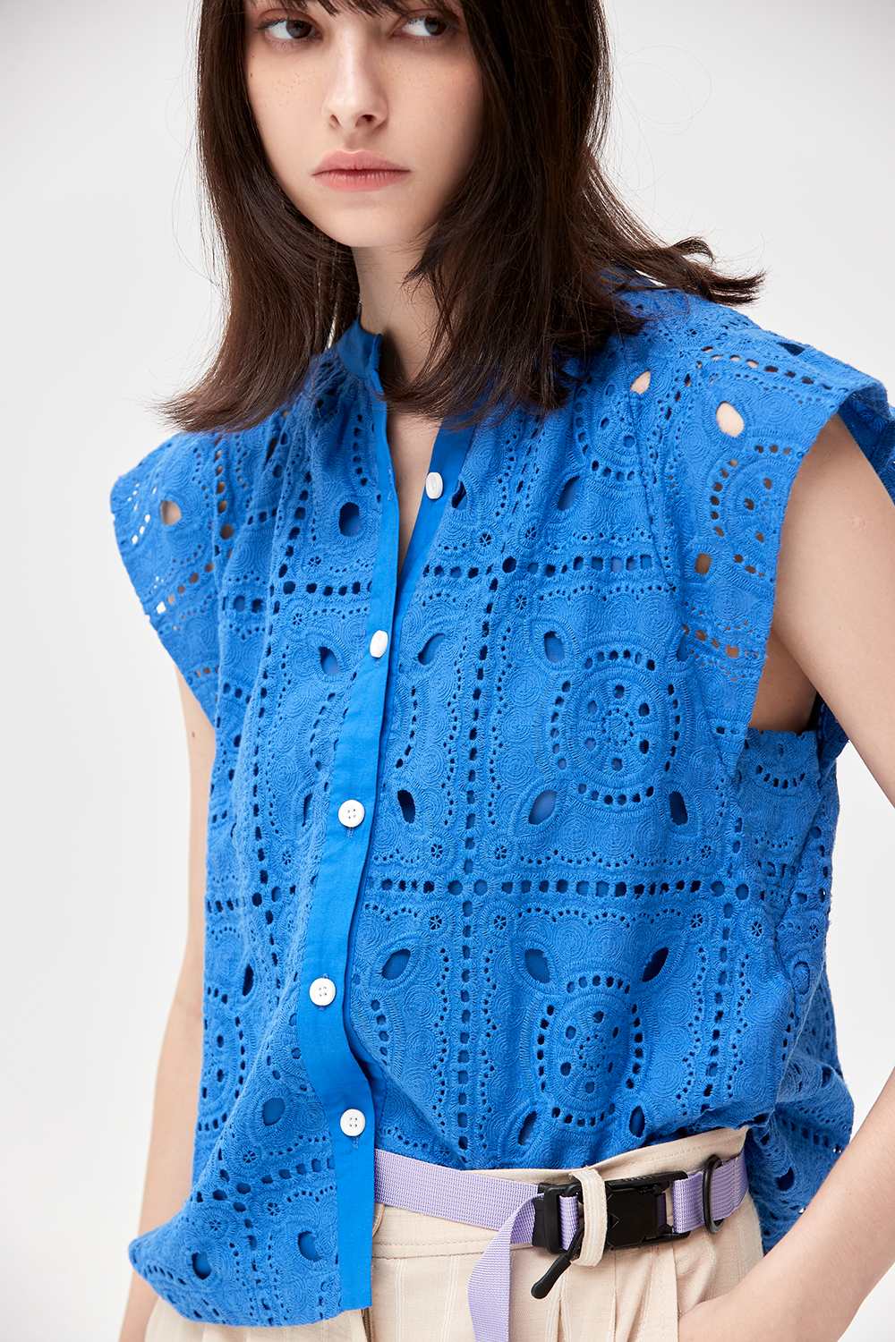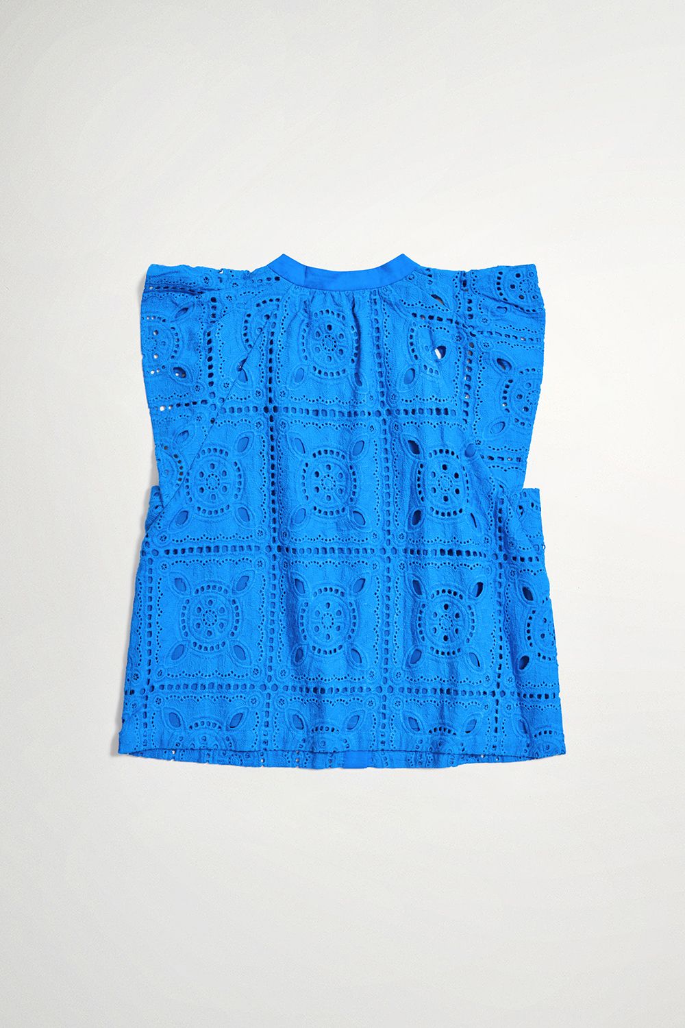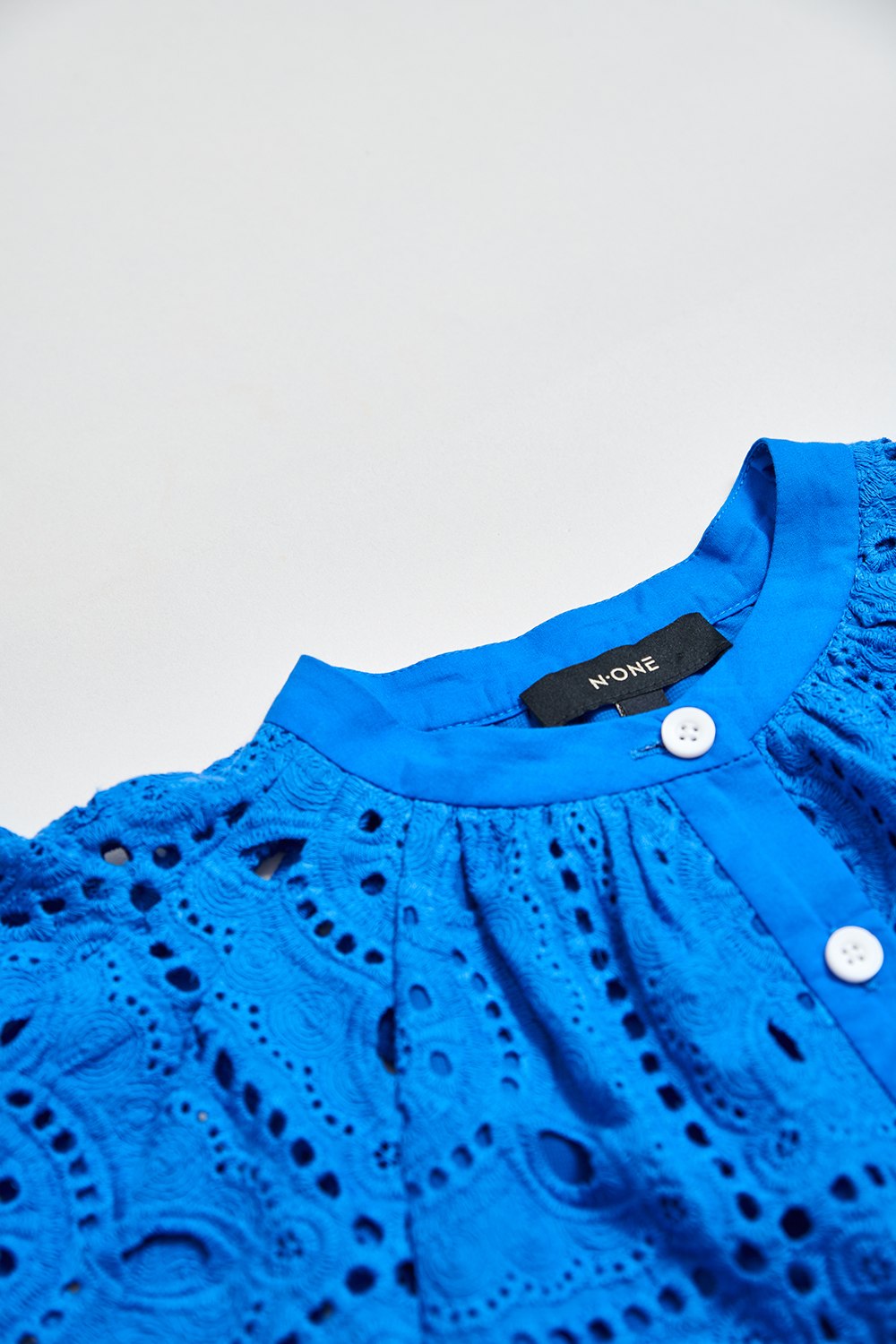 蘊光純粹繡花抓褶荷葉袖上衣 - 深邃藏藍, 40