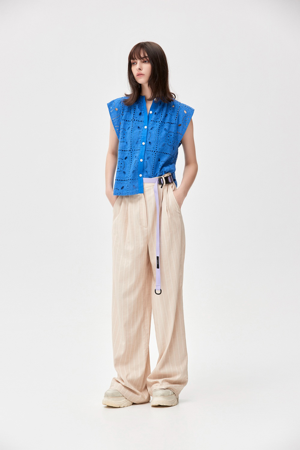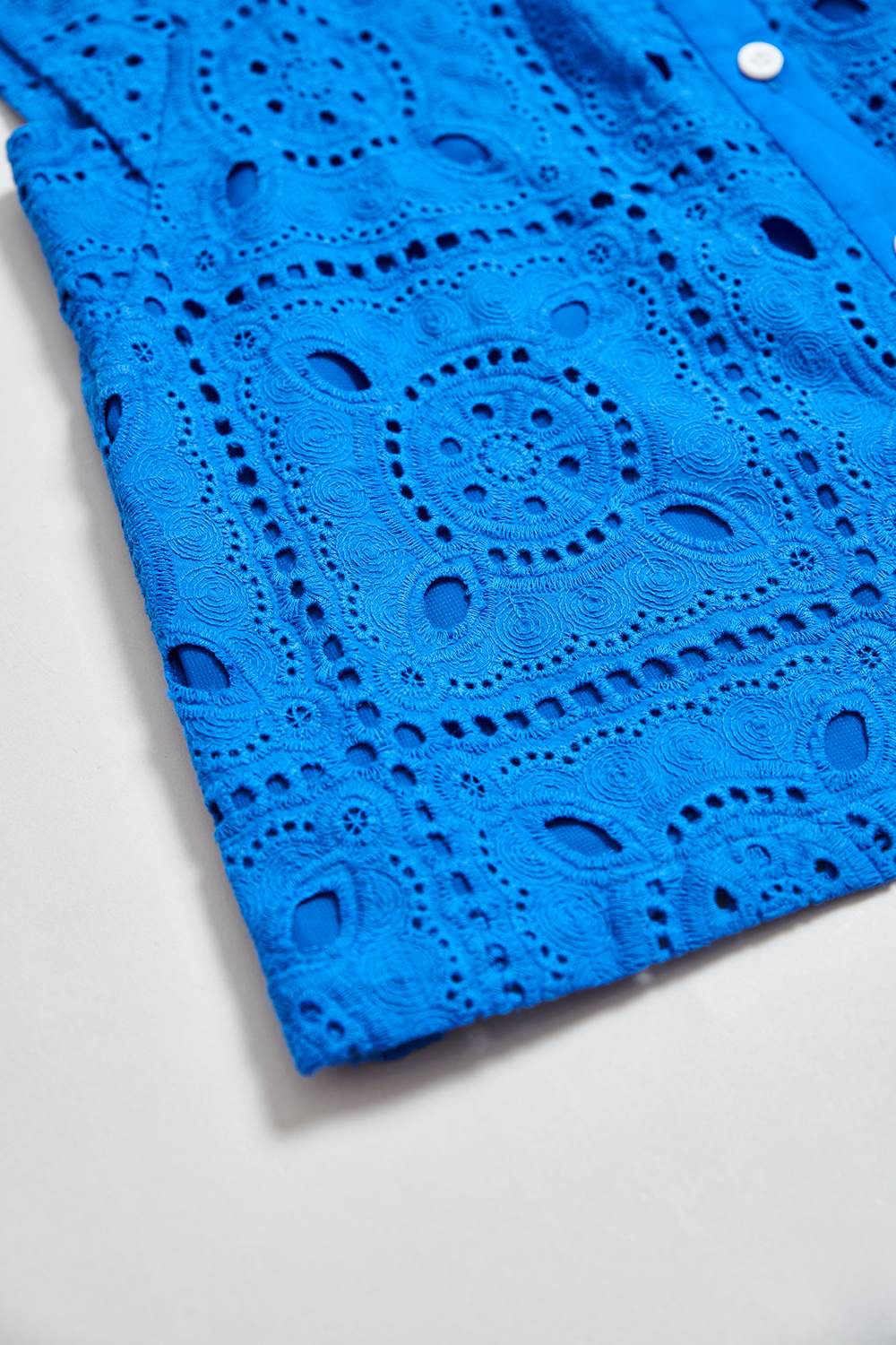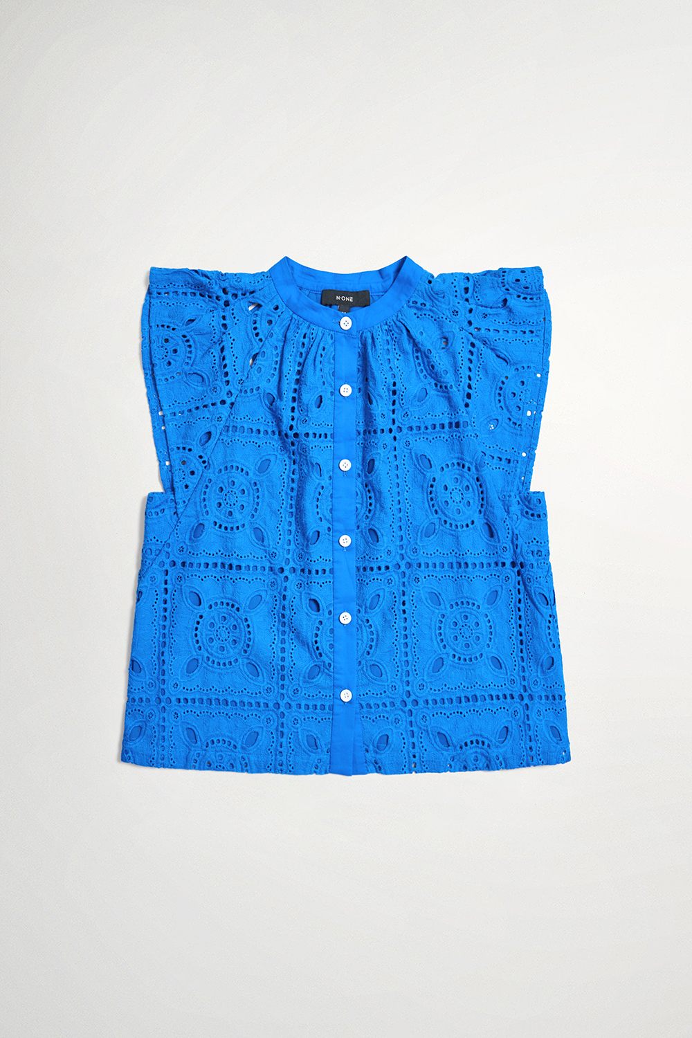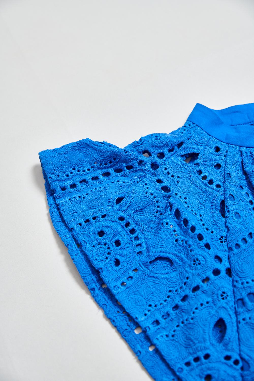 蘊光純粹繡花抓褶荷葉袖上衣 - 深邃藏藍, 40