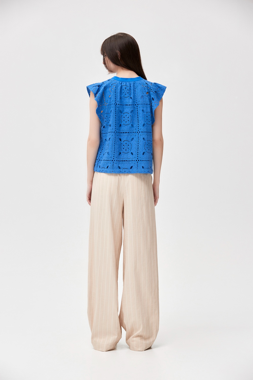 蘊光純粹繡花抓褶荷葉袖上衣 - 深邃藏藍, 36