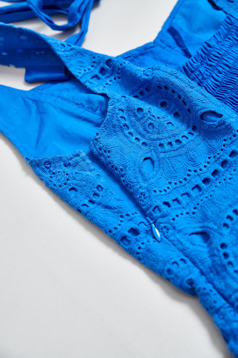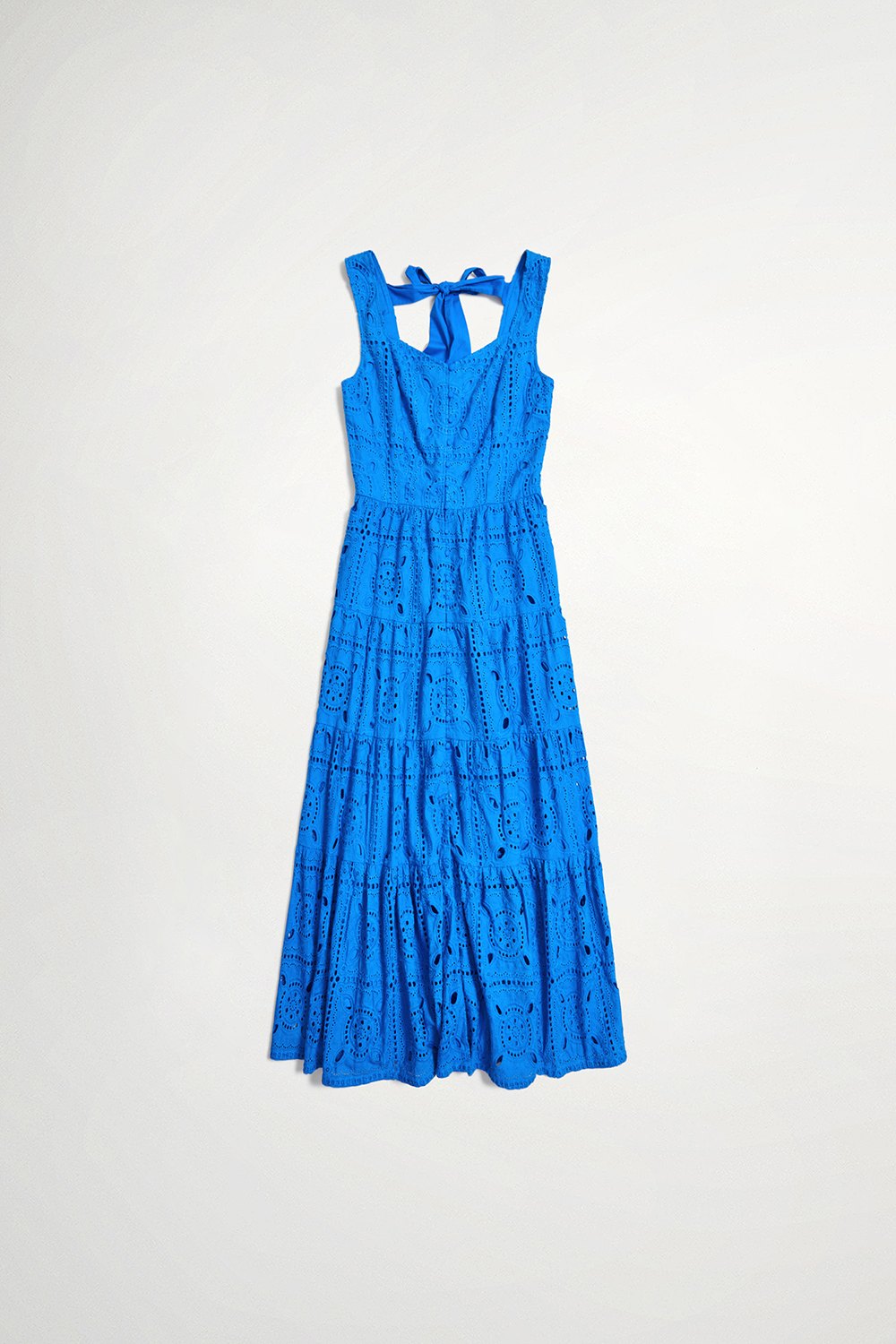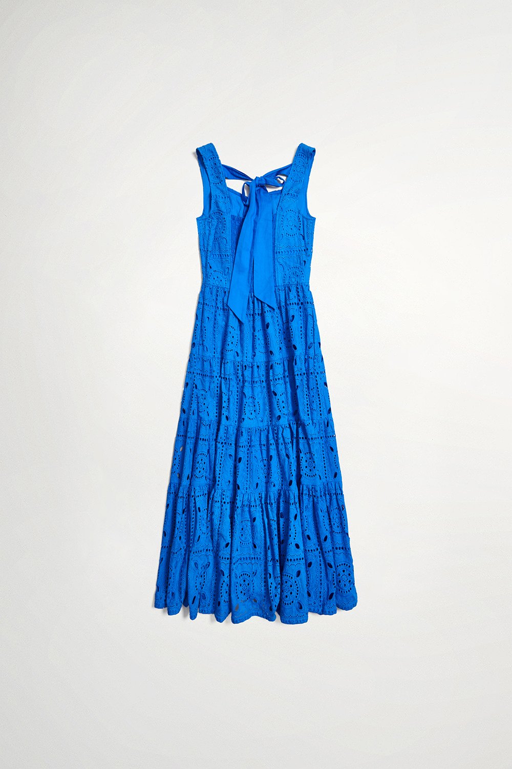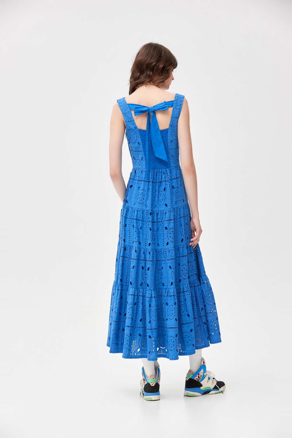 溫雅細膩繡花後綁帶洋裝 - 深邃藏藍, 36