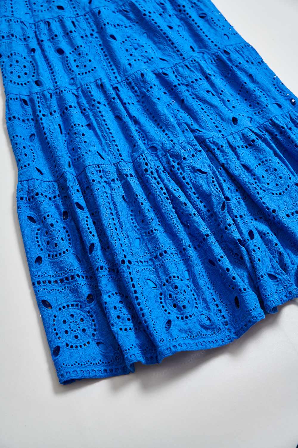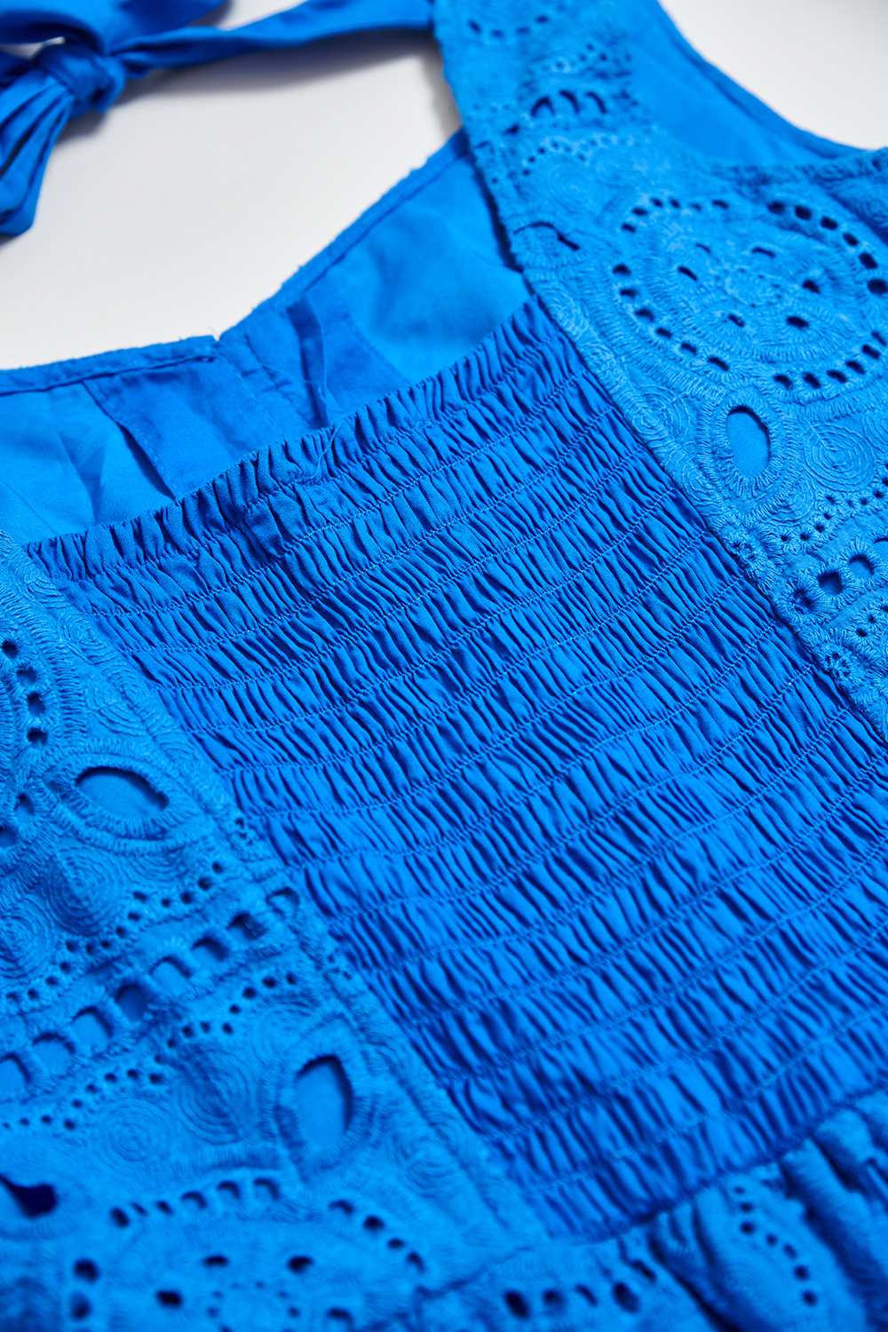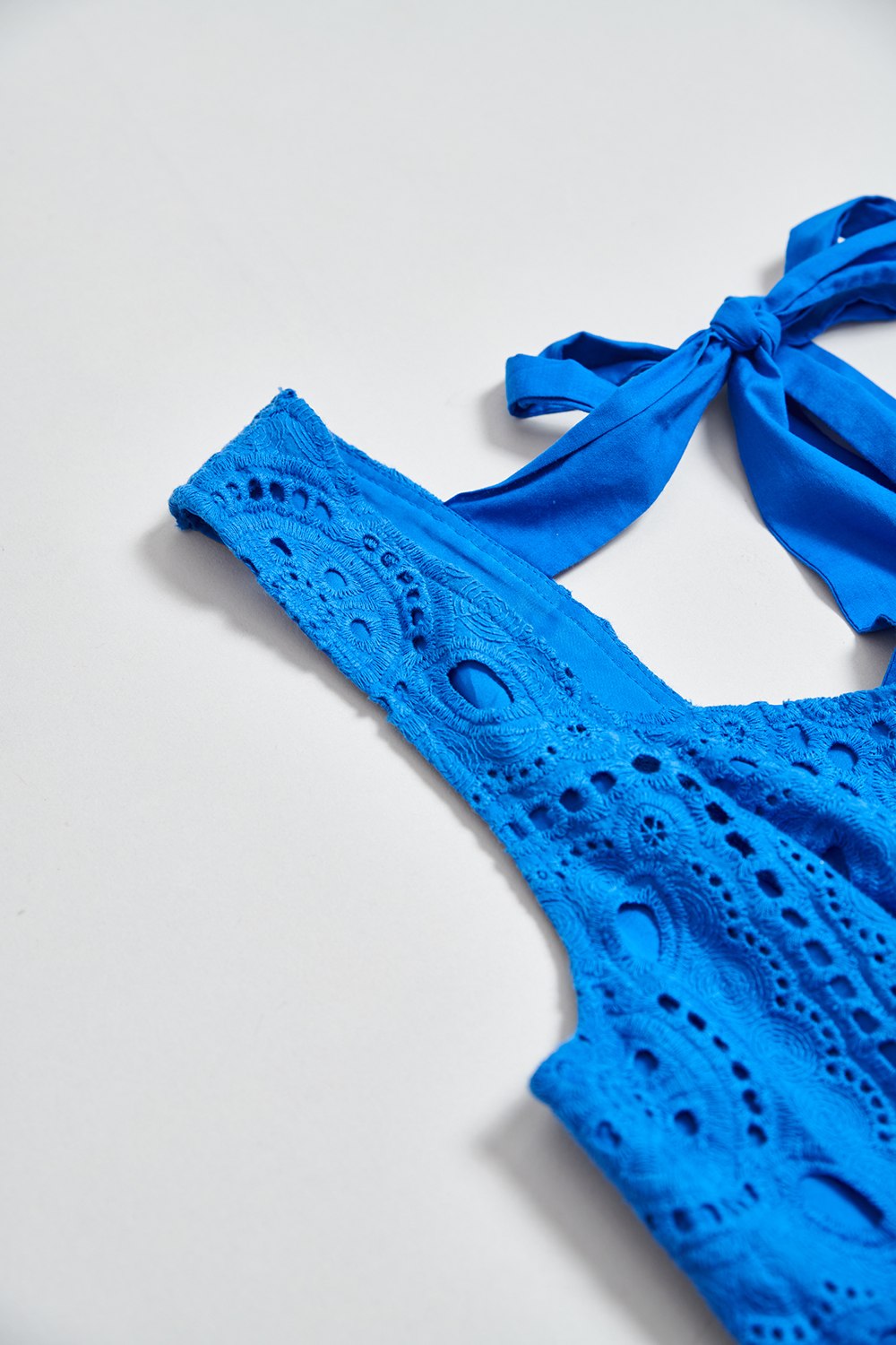溫雅細膩繡花後綁帶洋裝 - 深邃藏藍, 40
