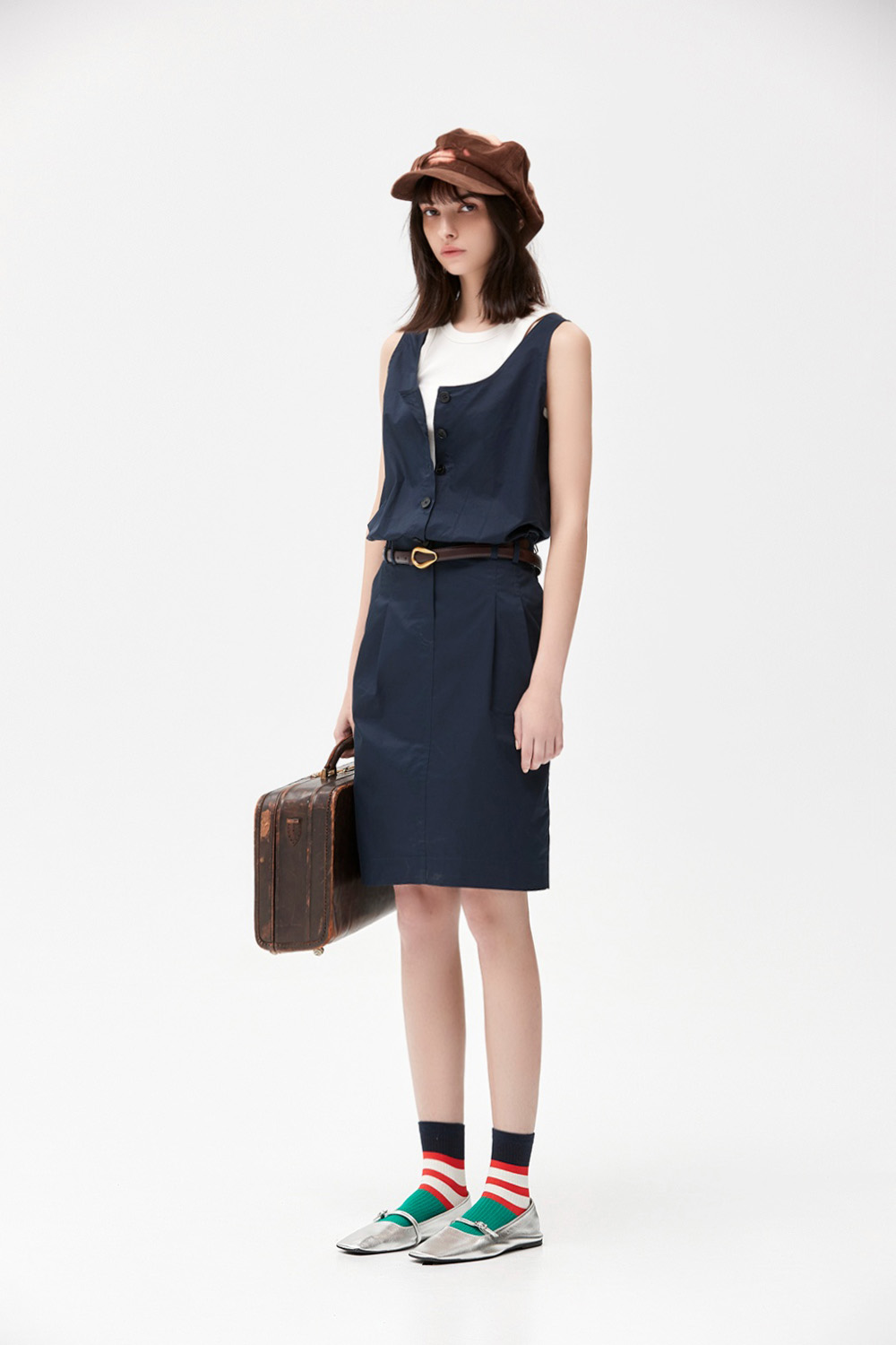 舒適搖擺假兩件背心式洋裝 - 深邃藏藍, 38