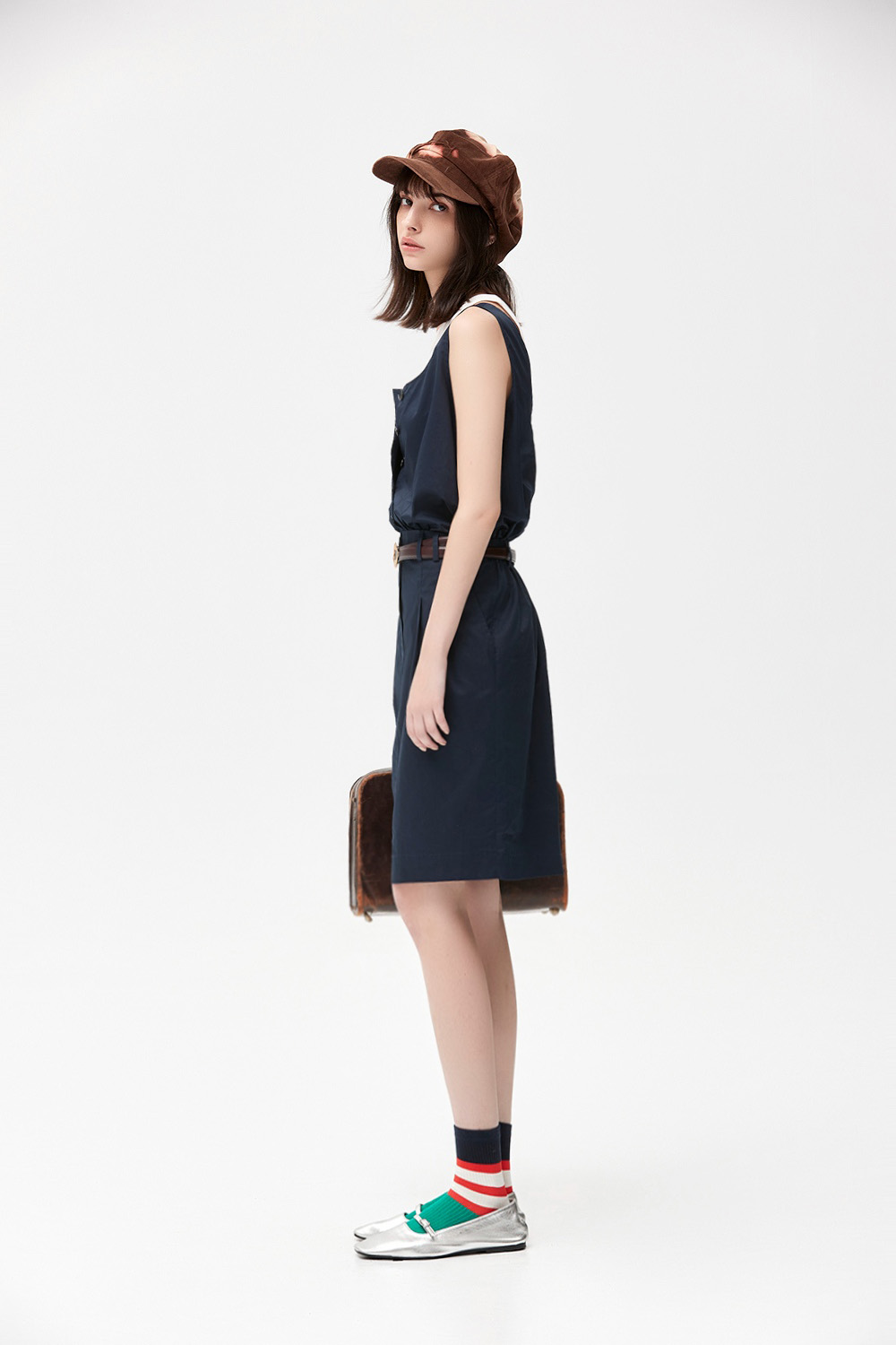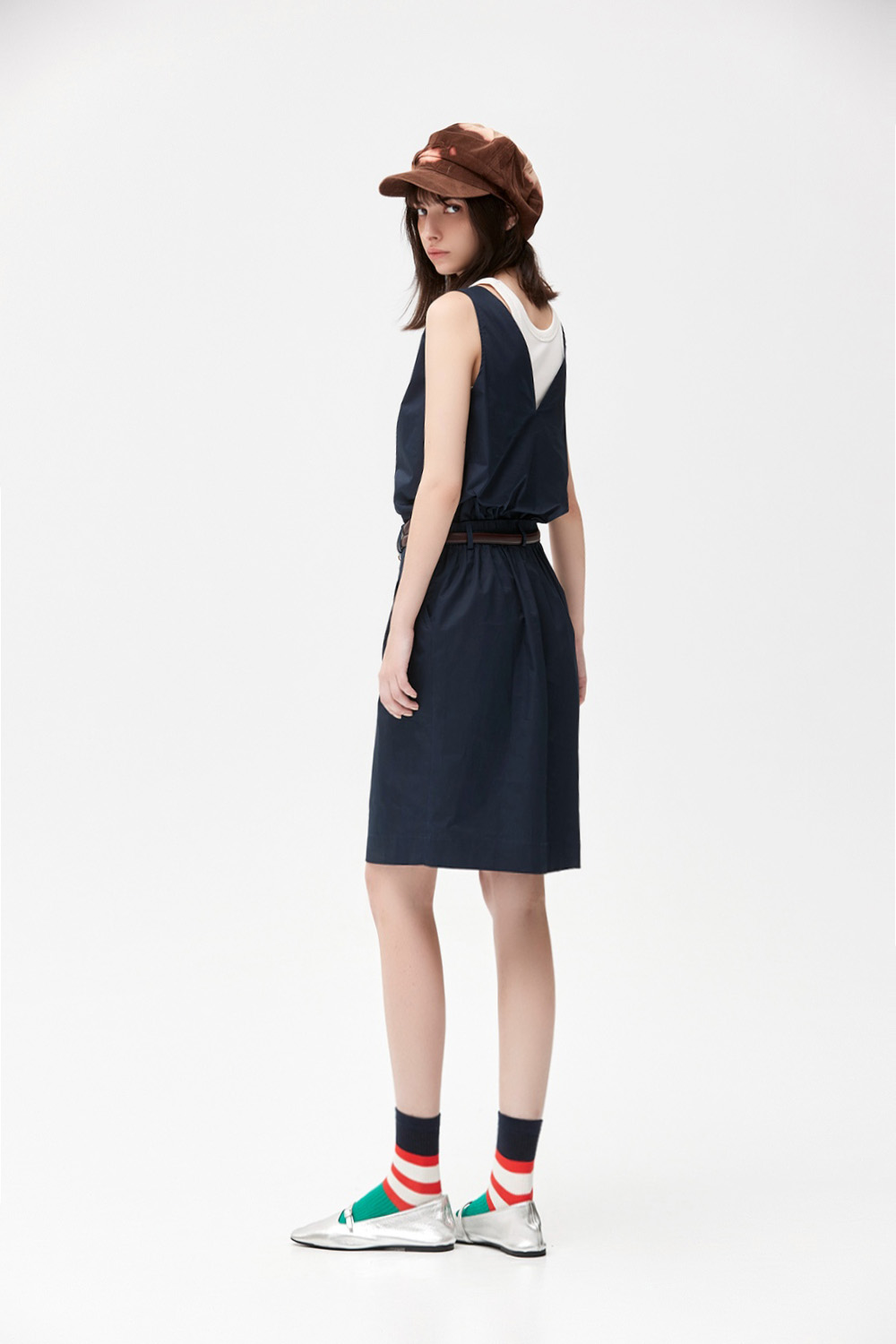 舒適搖擺假兩件背心式洋裝 - 深邃藏藍, 36