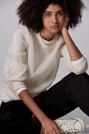 綻放時光透感小亮鑽上衣 - 奶油杏色, 36
