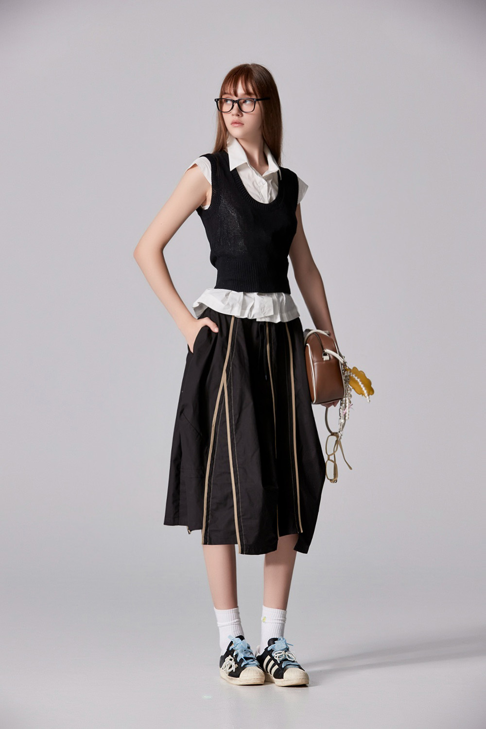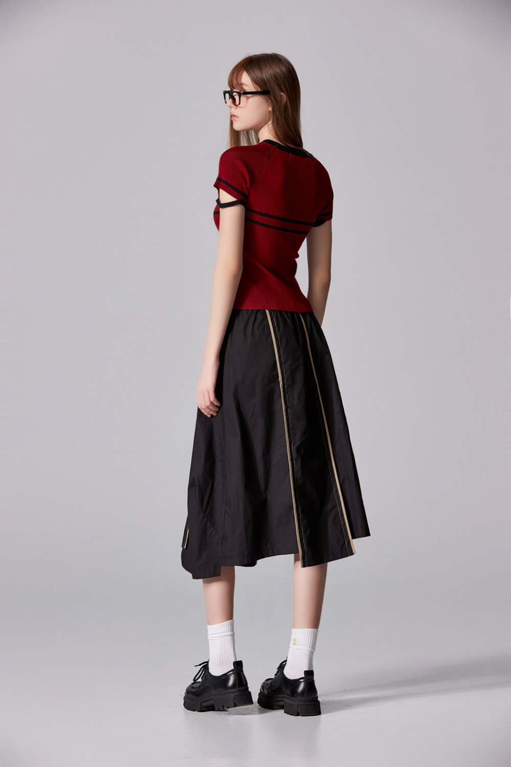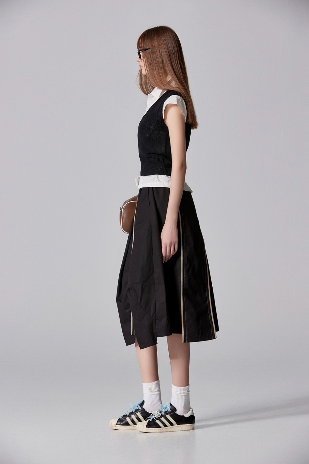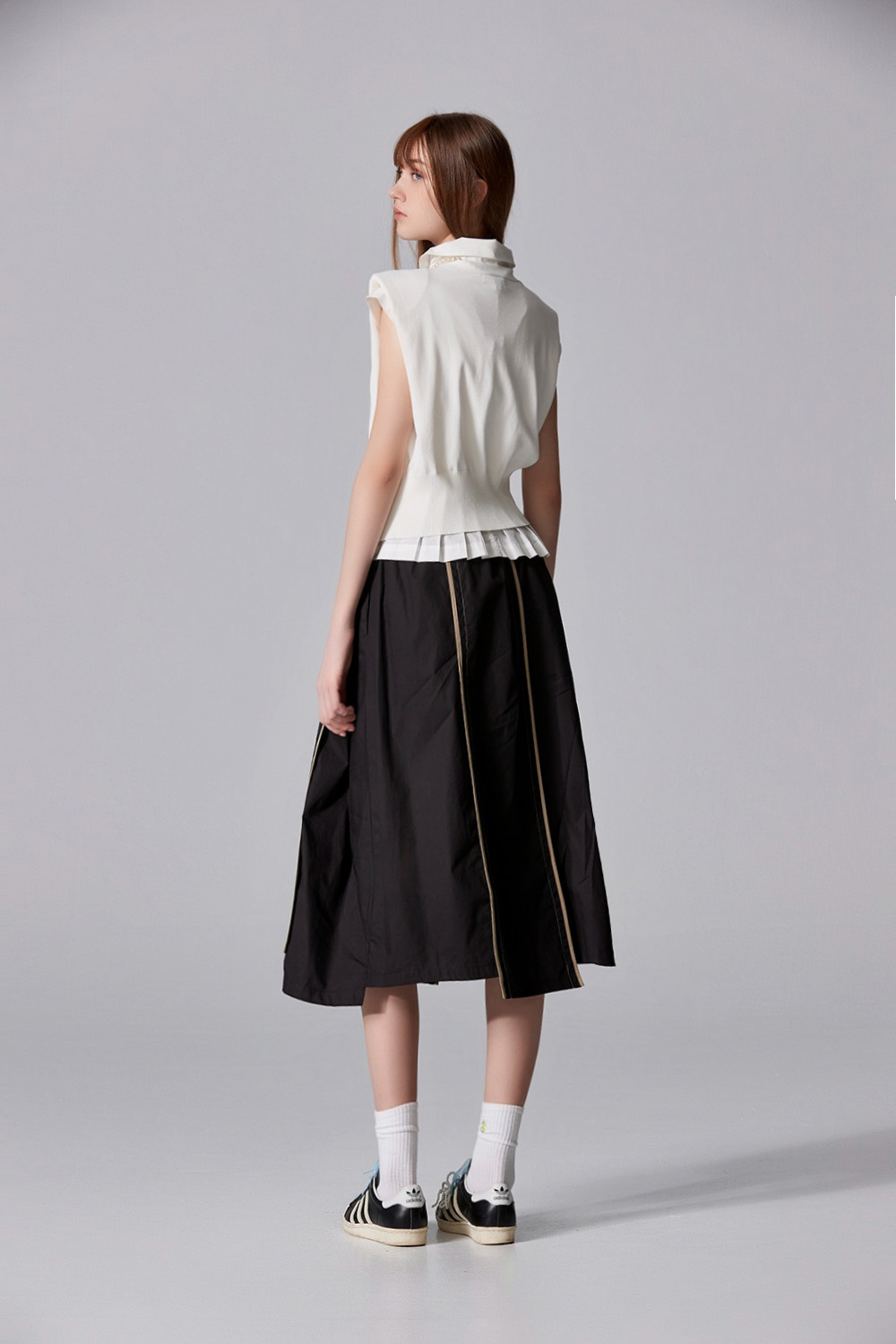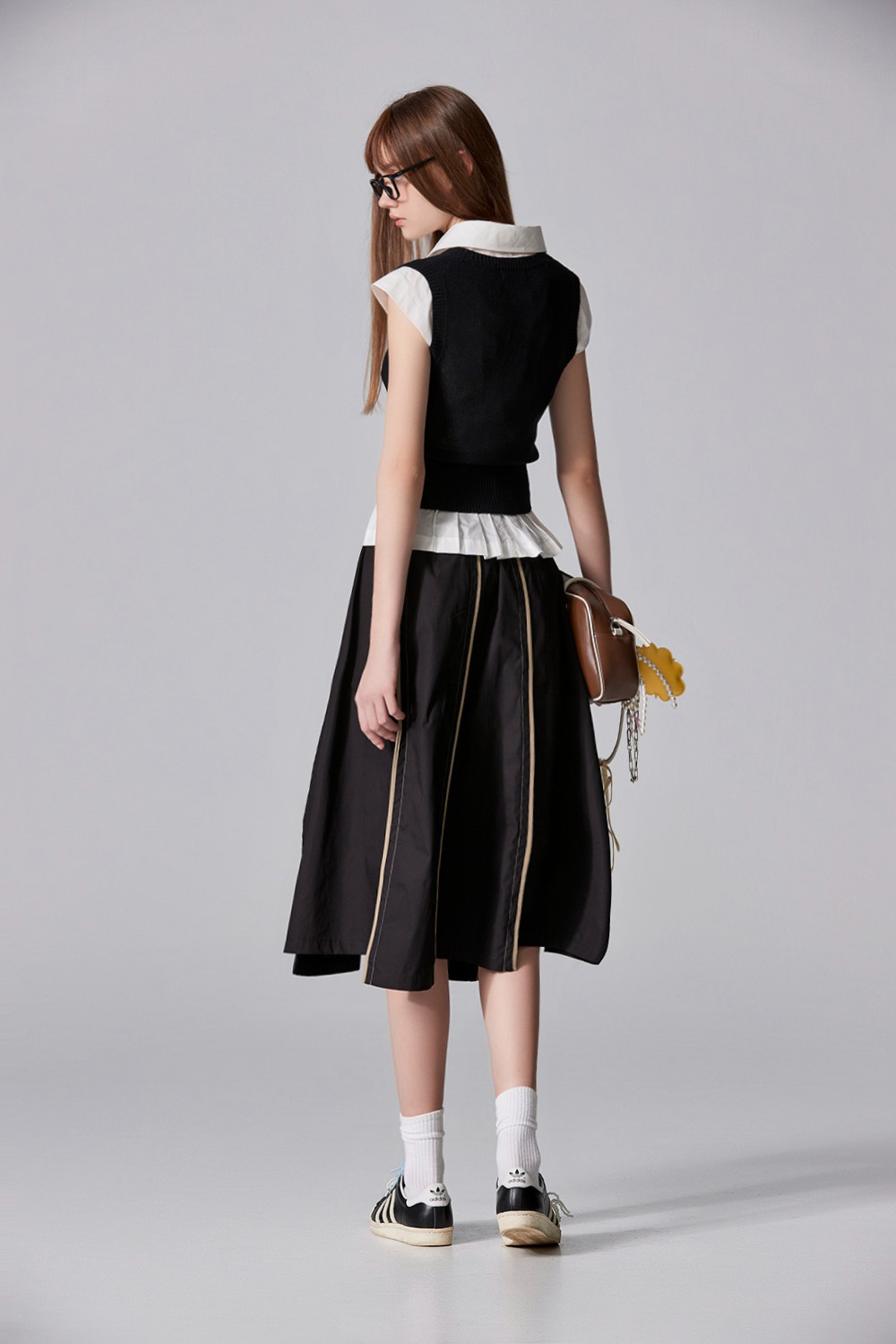 黑色隱秘立裁配色裙 - 神祕純黑, 38