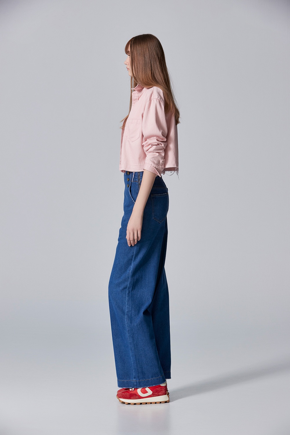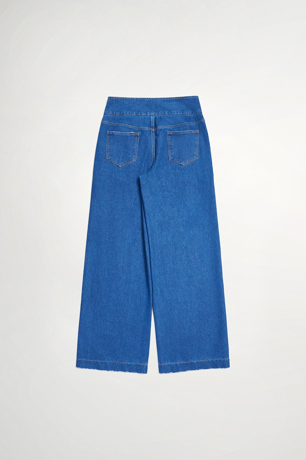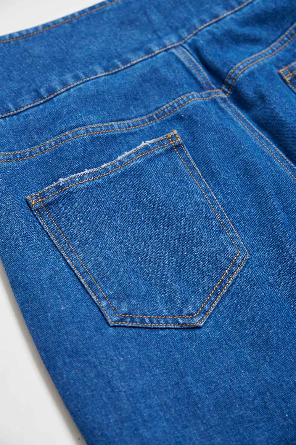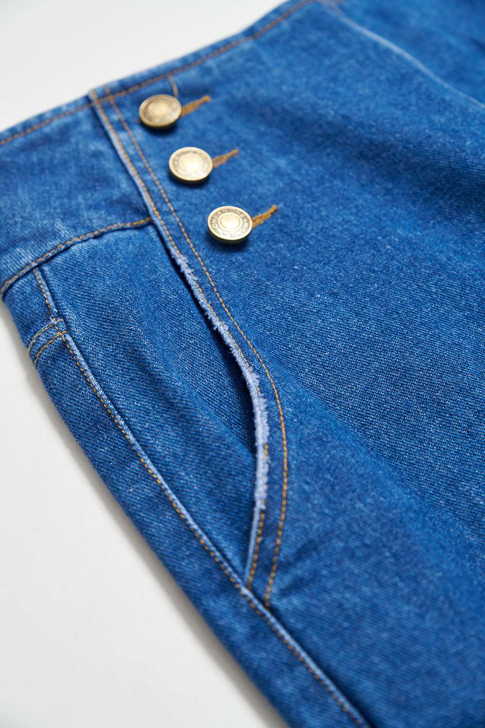 時尚前衛高腰修身牛仔長褲 - 深邃藏藍, 38
