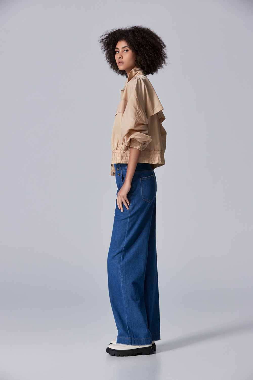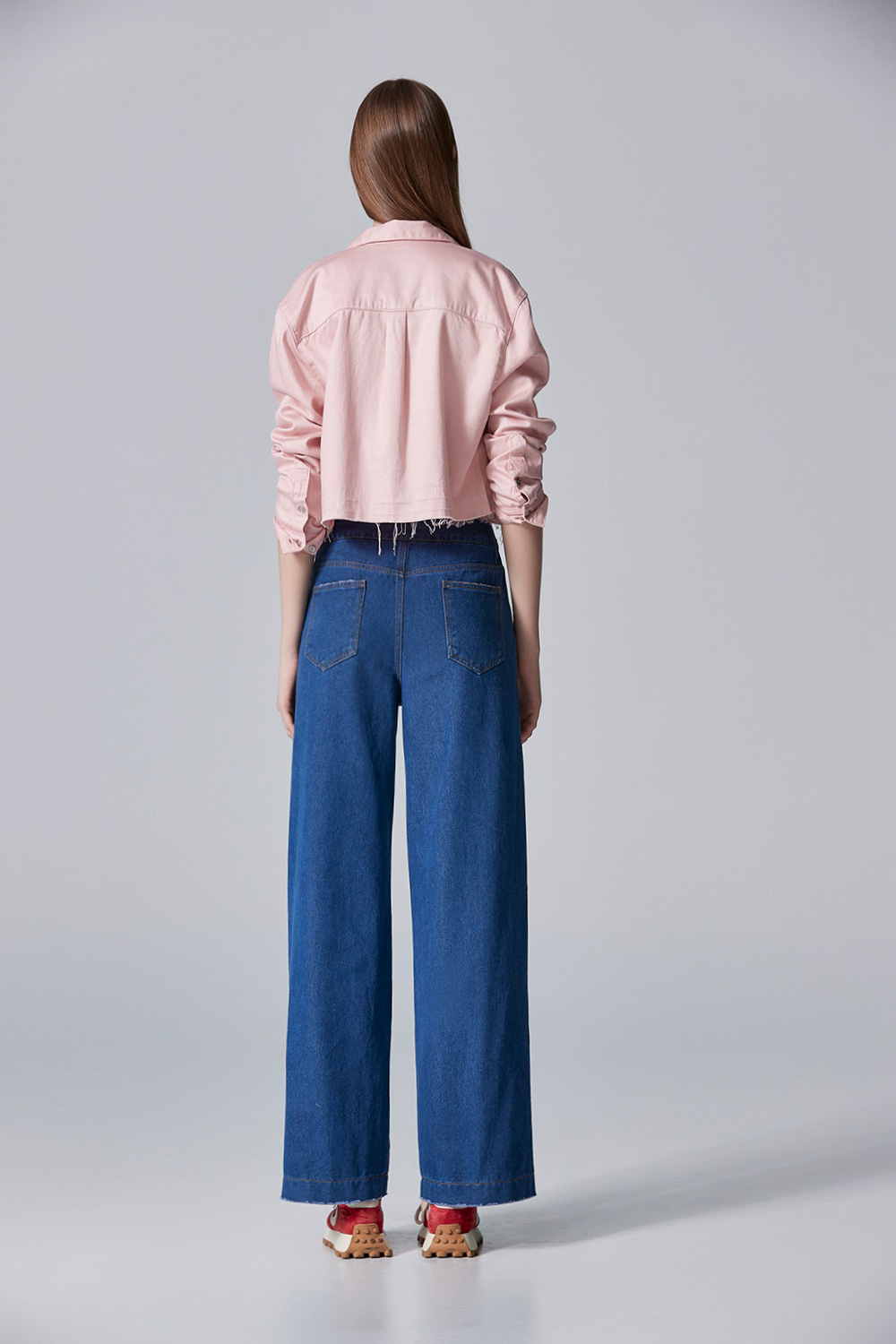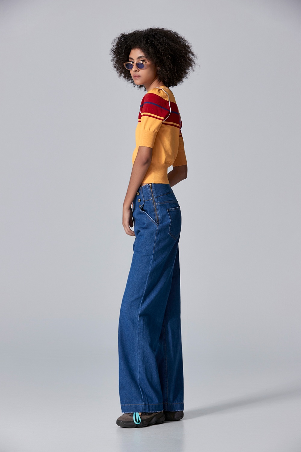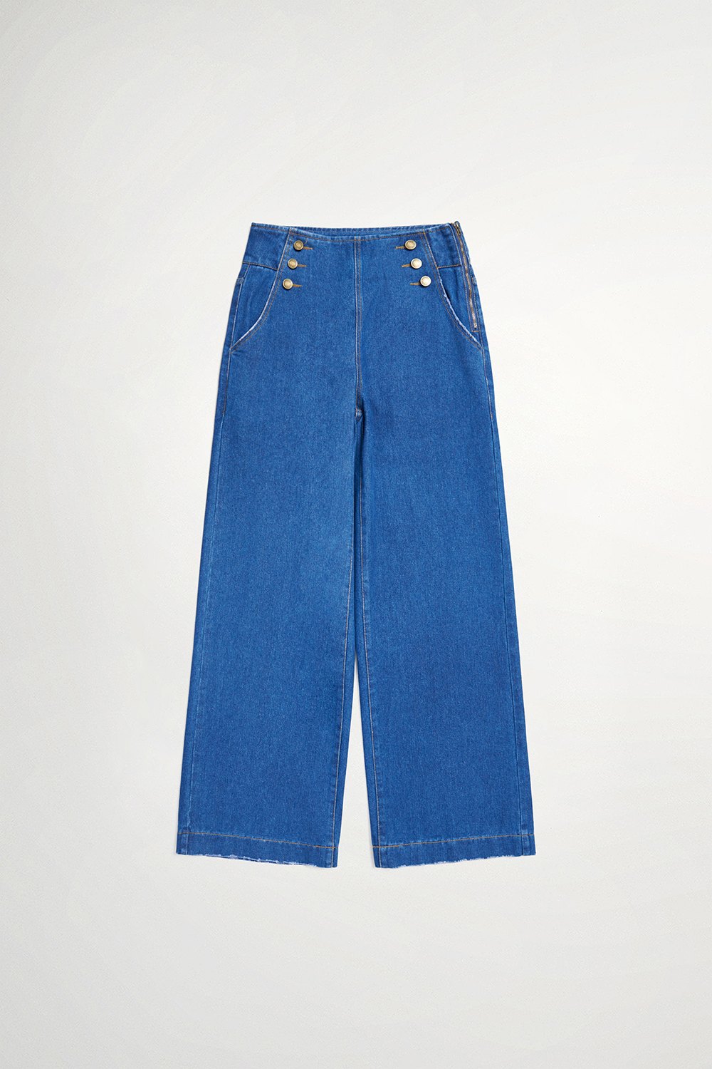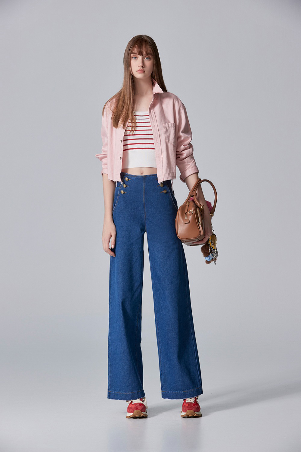 時尚前衛高腰修身牛仔長褲 - 深邃藏藍, 38