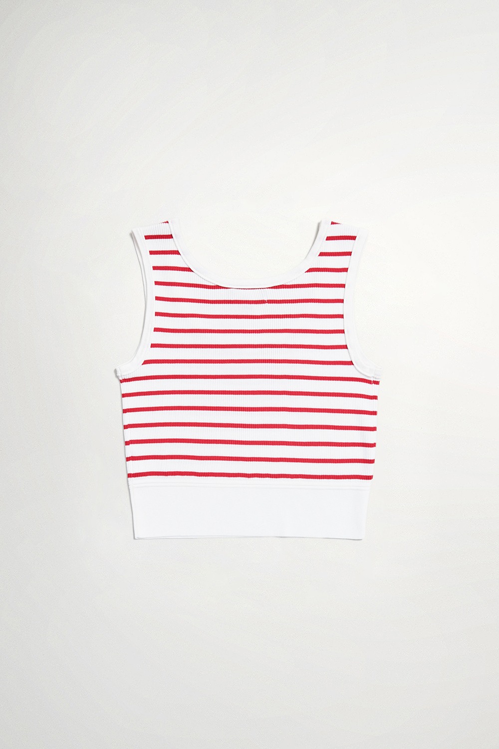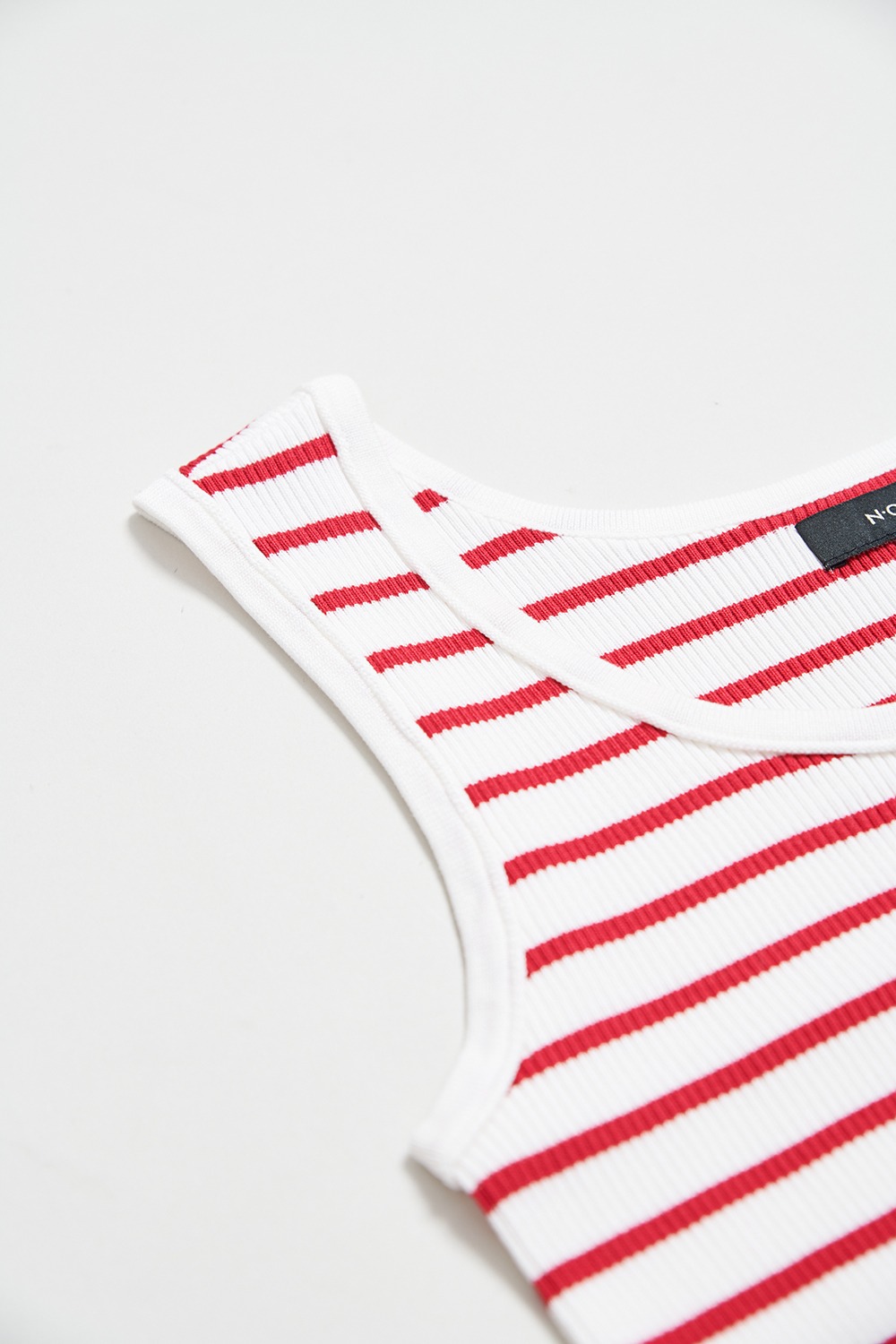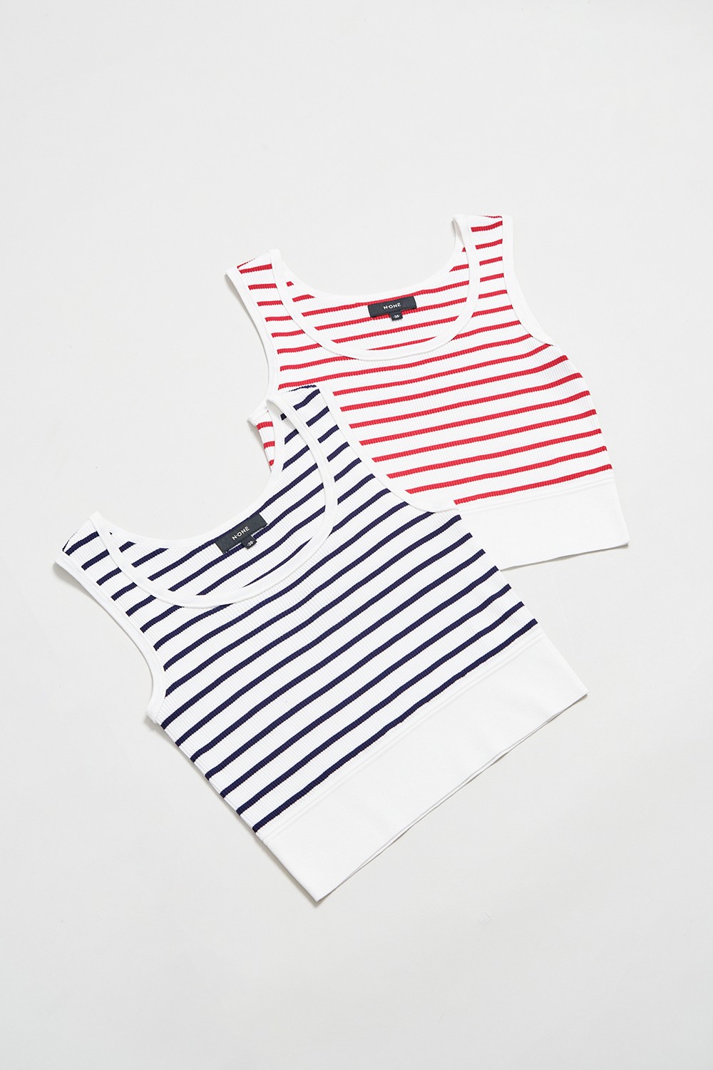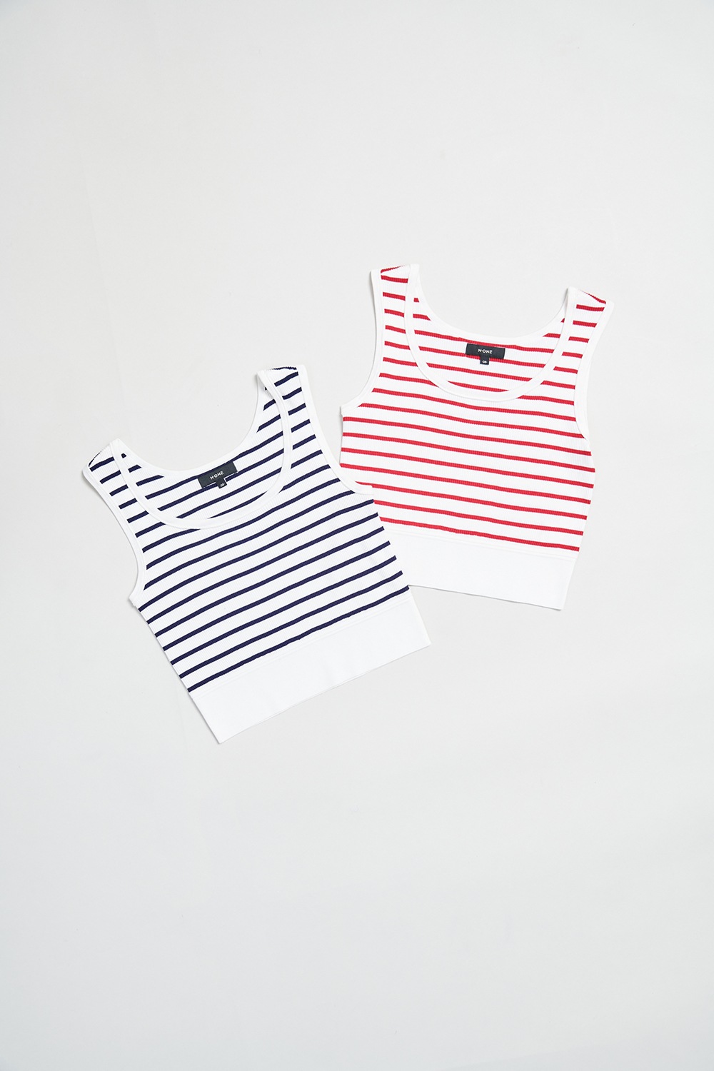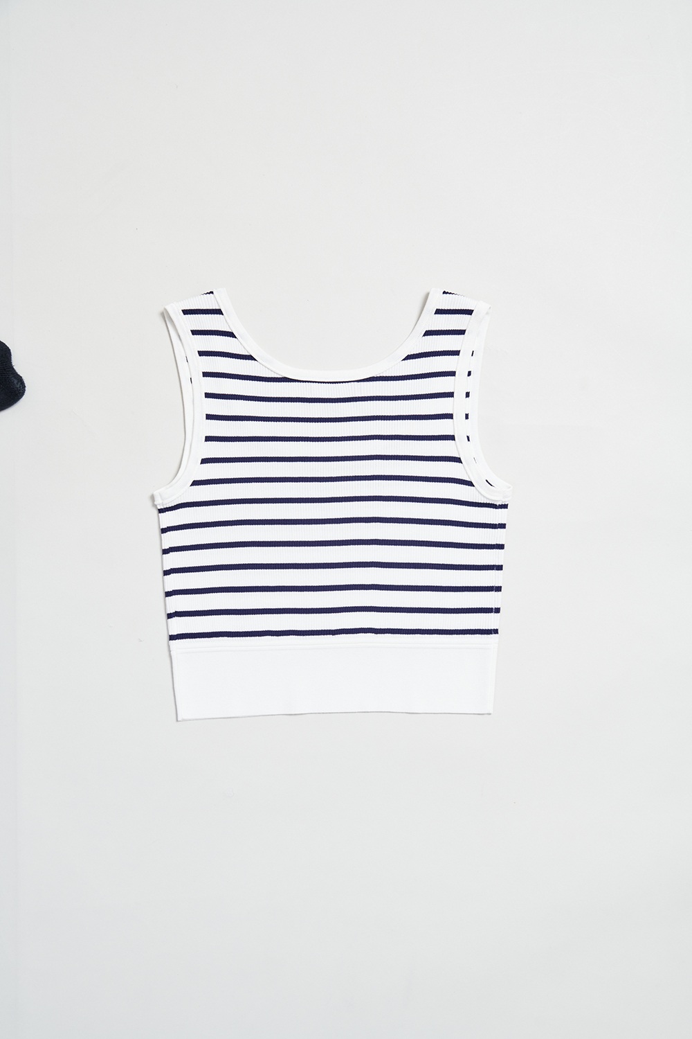 盛夏午後休閒短版條紋背心 ( 藍 / 紅 ) - 深邃藏藍, 36