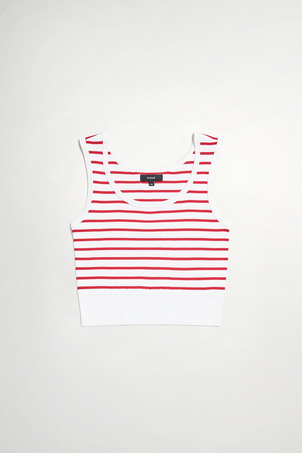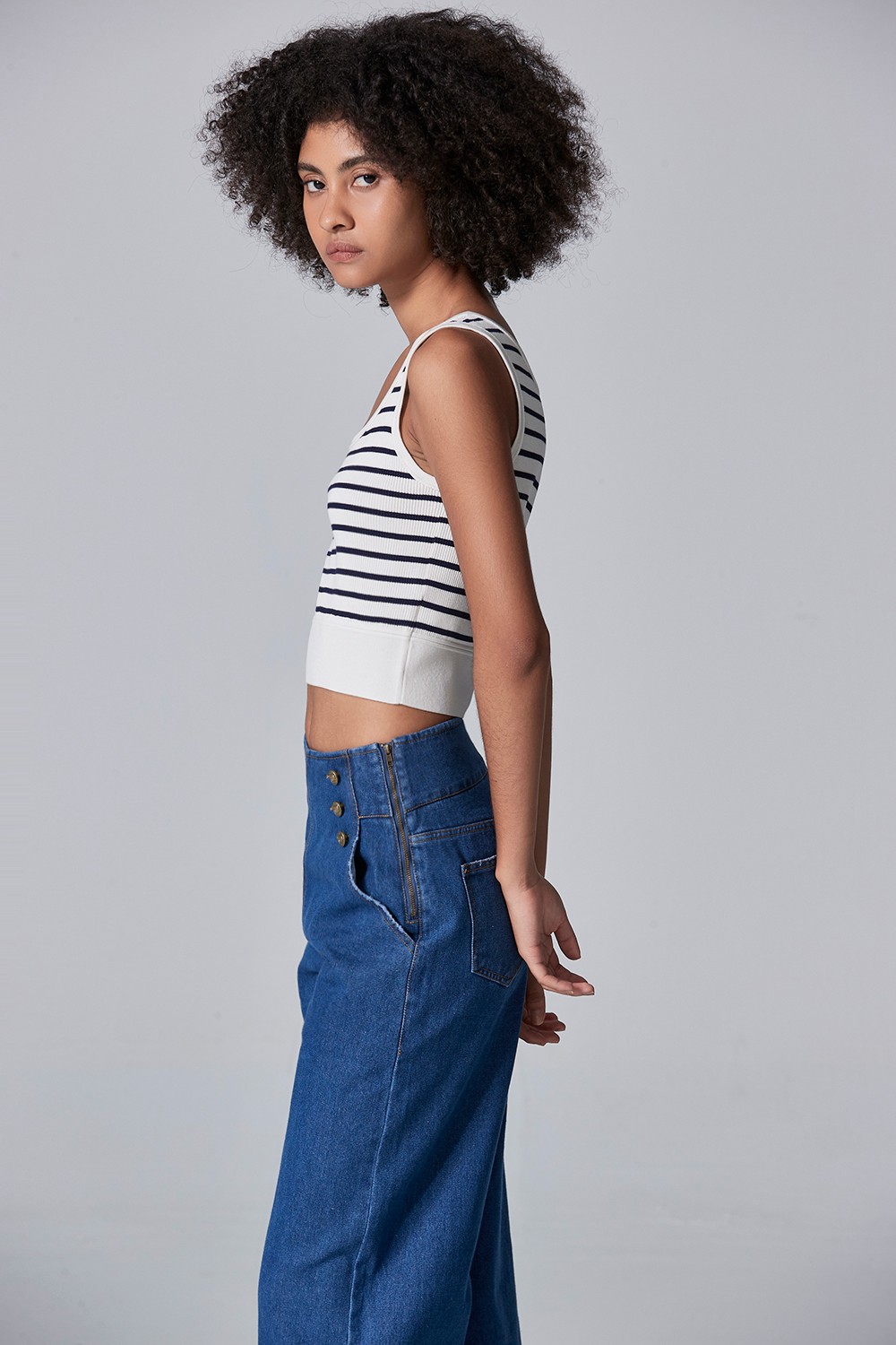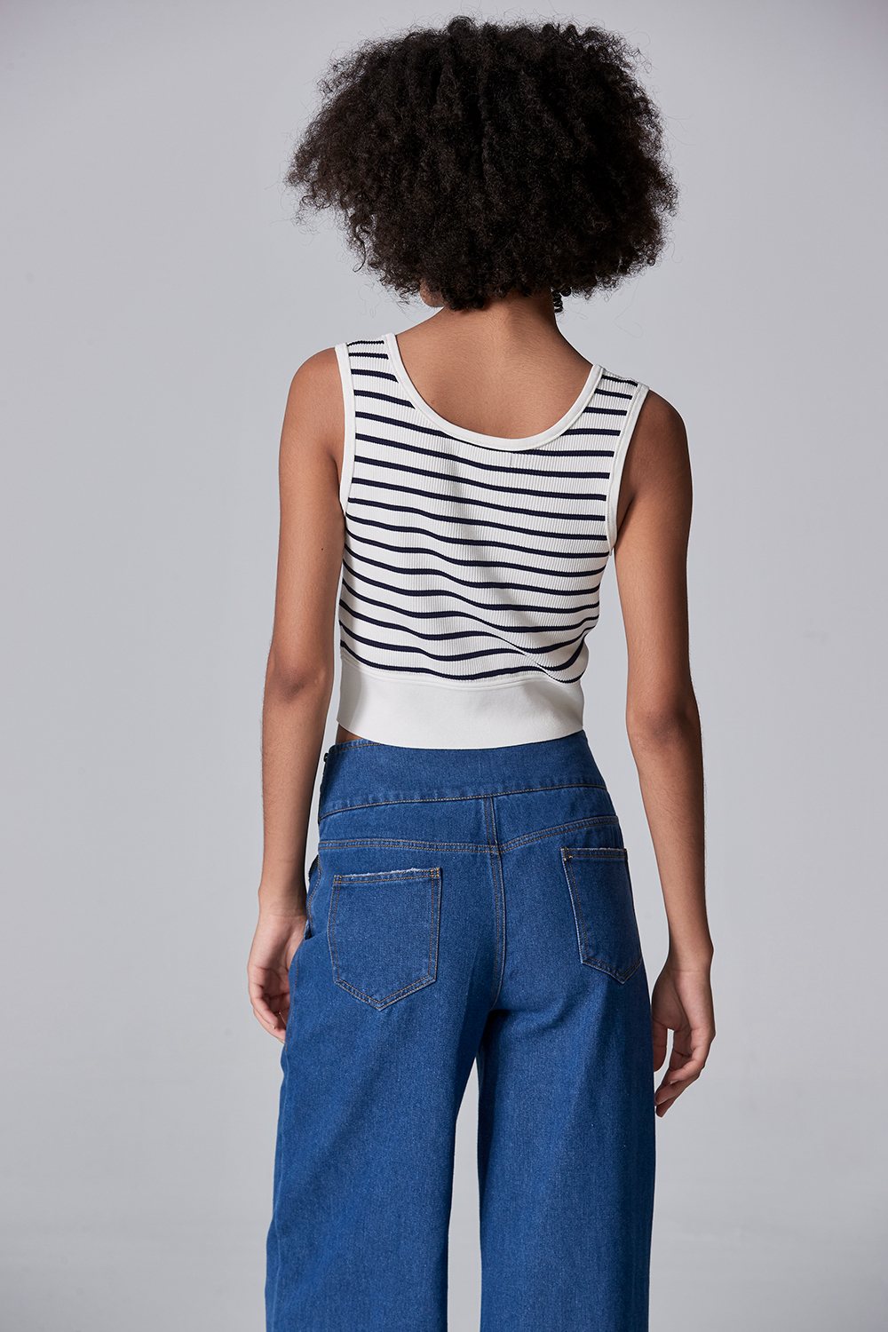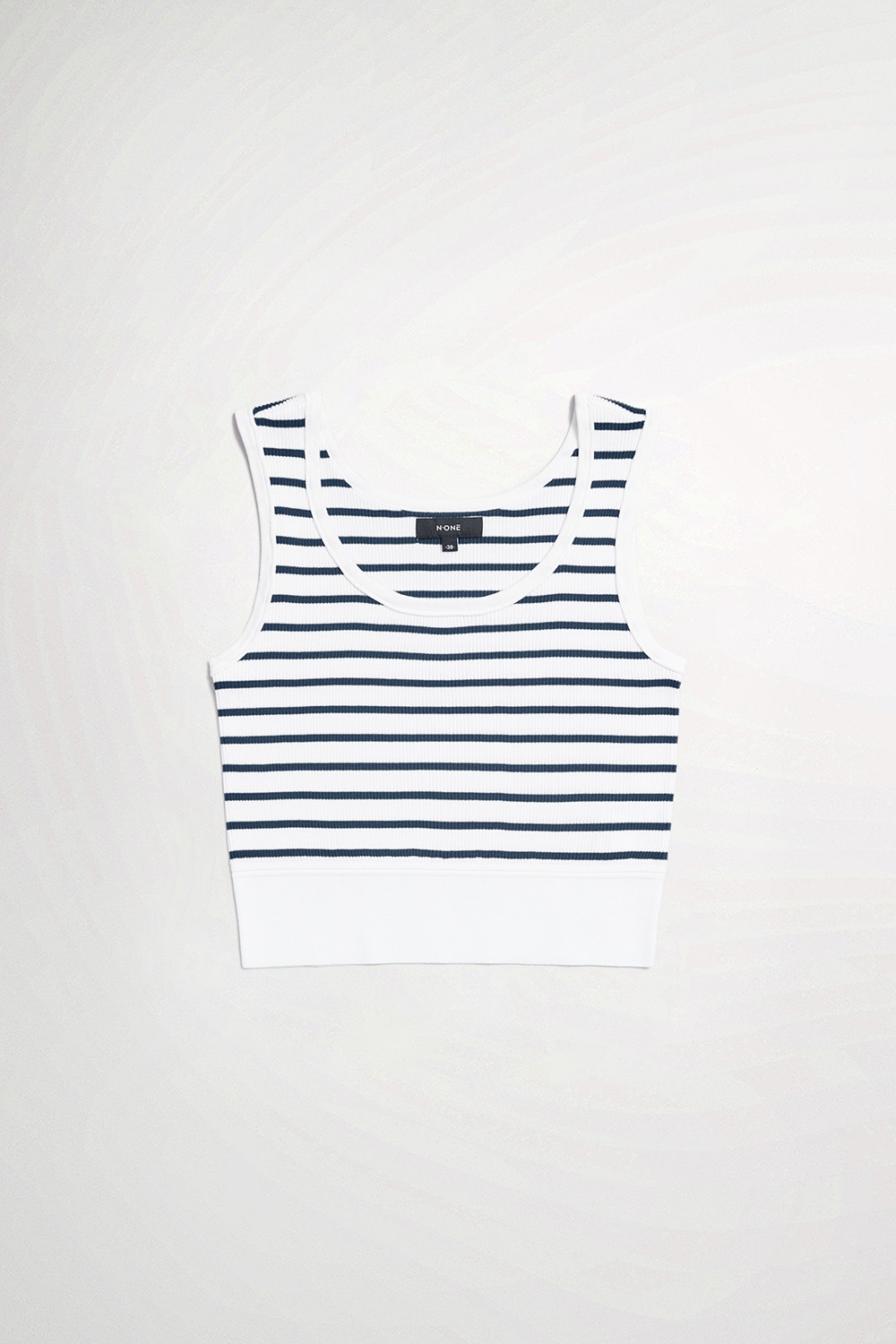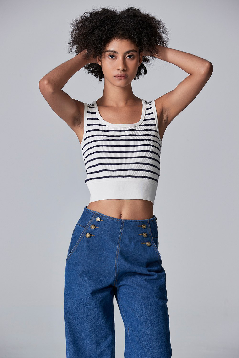盛夏午後休閒短版條紋背心 ( 藍 / 紅 ) - 深邃藏藍, 36
