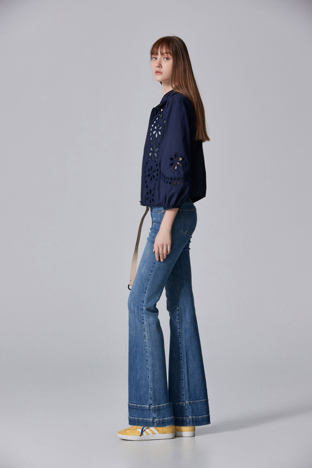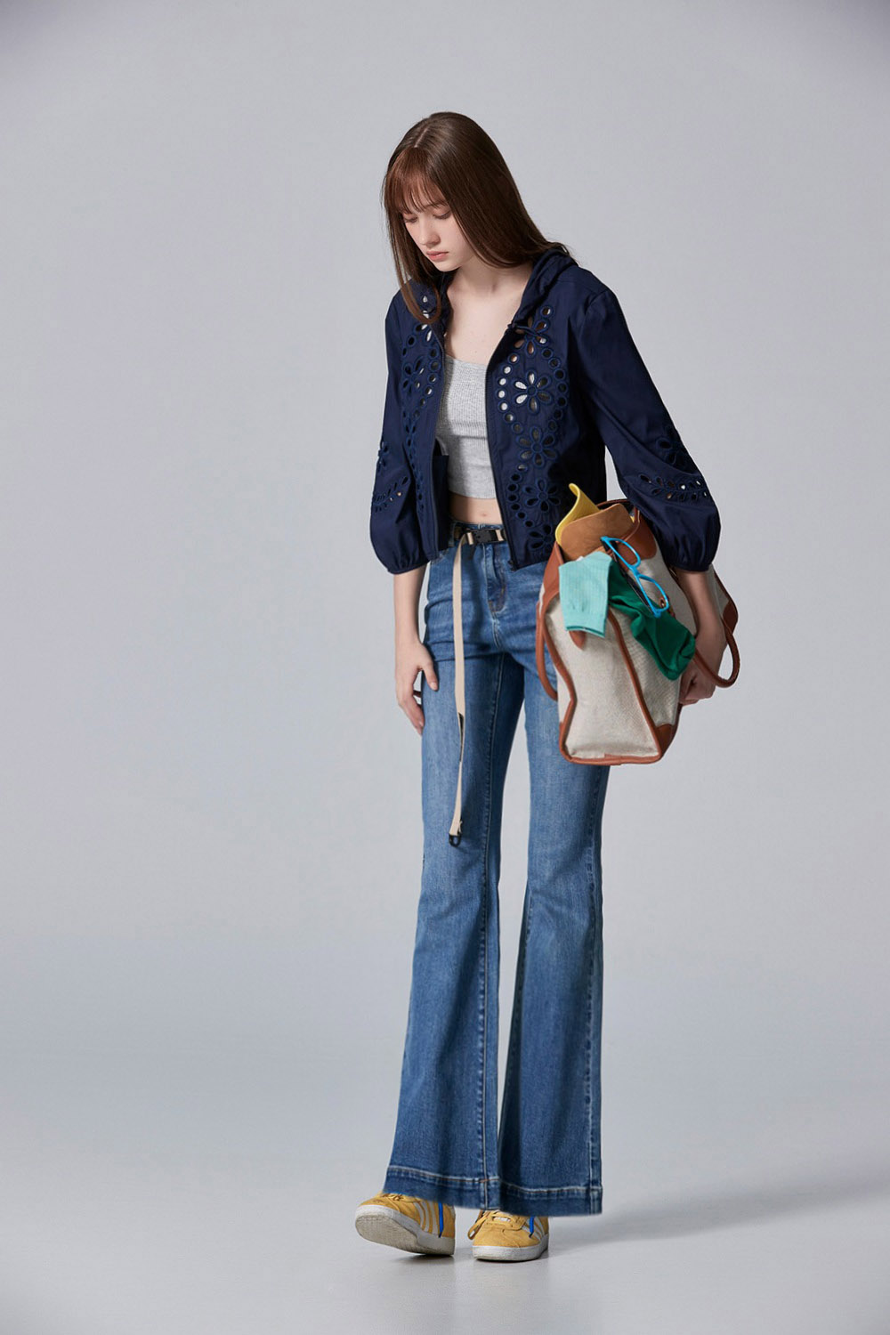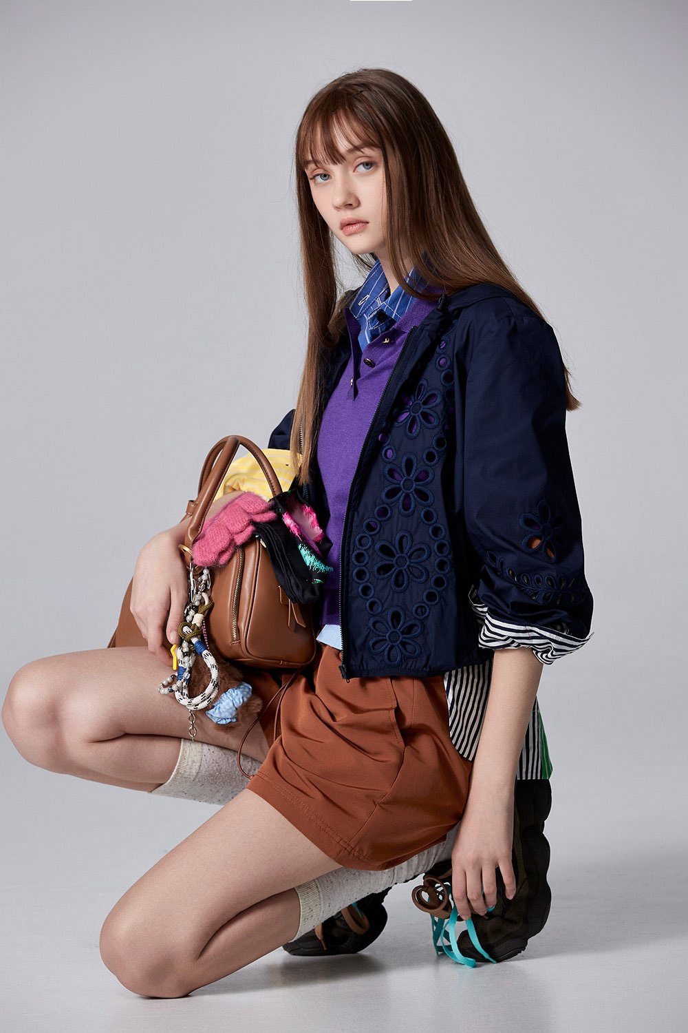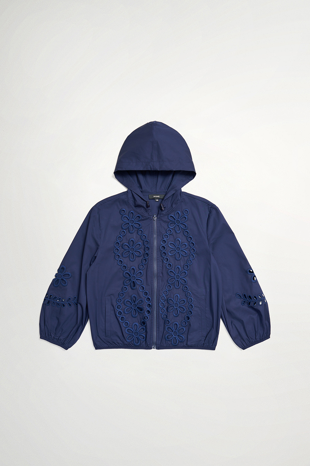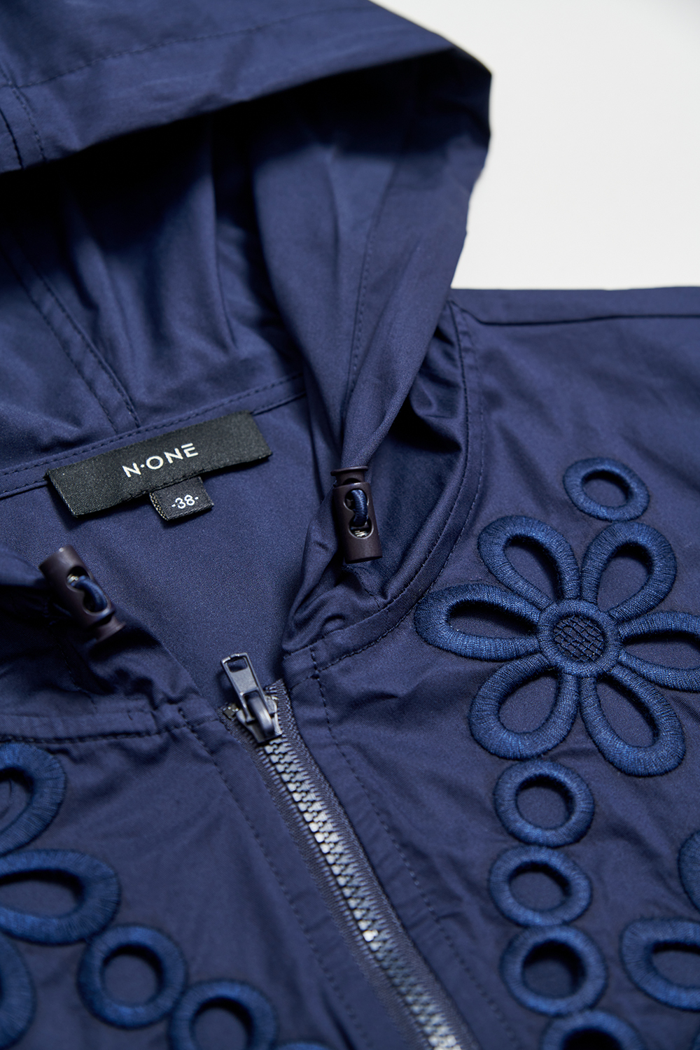 浪漫氣息簍空繡花連帽外套 - 深邃藏藍, 38