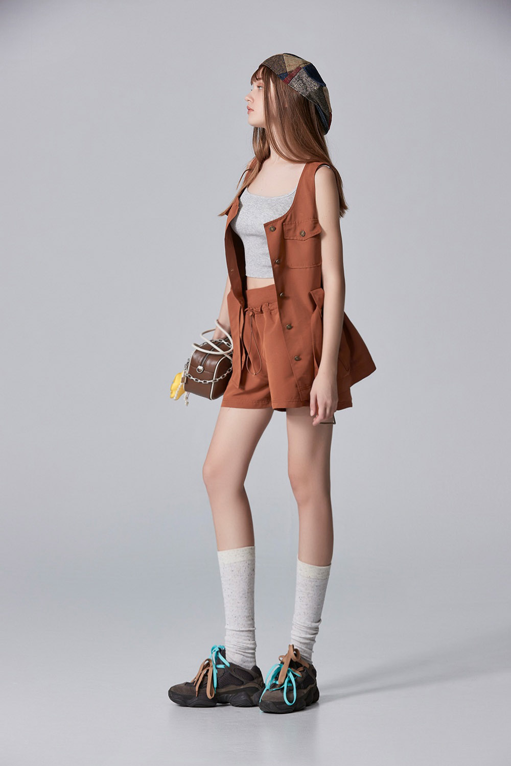 入秋淡曦抽繩小荷葉短褲 - 古樸咖啡, 38