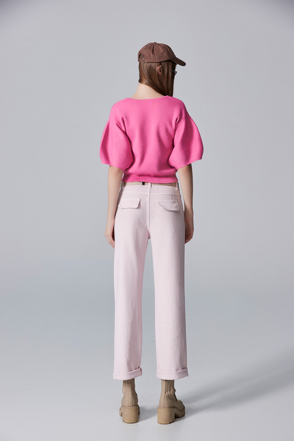 柔暖舒心圓領拋袖針織上衣 - 撫媚枚紅, 38