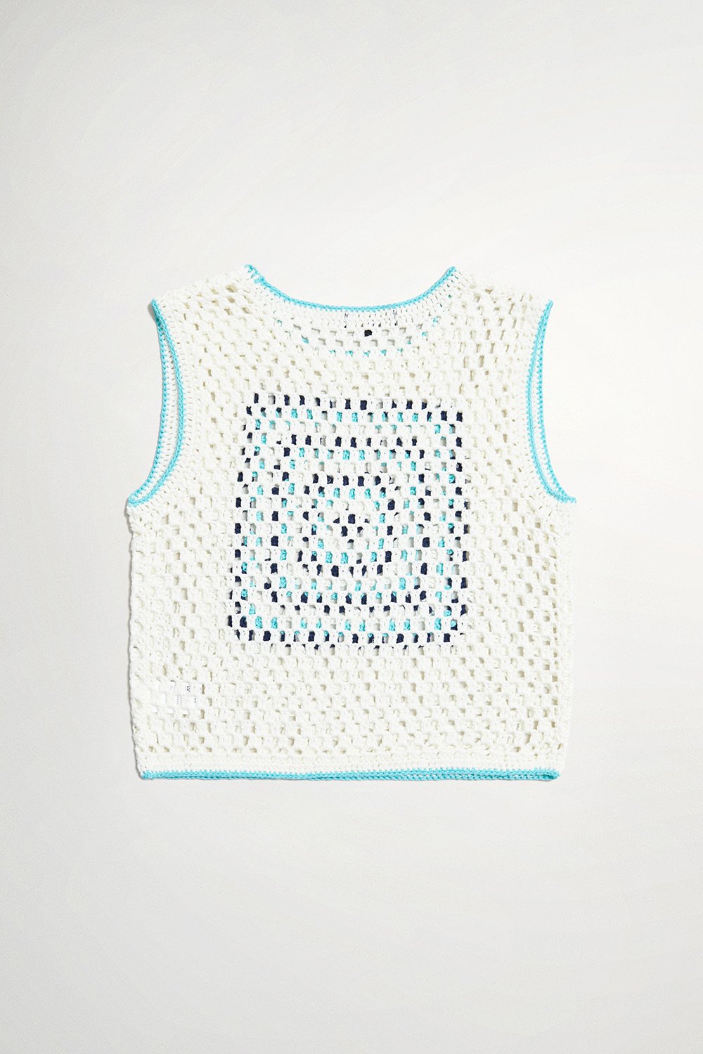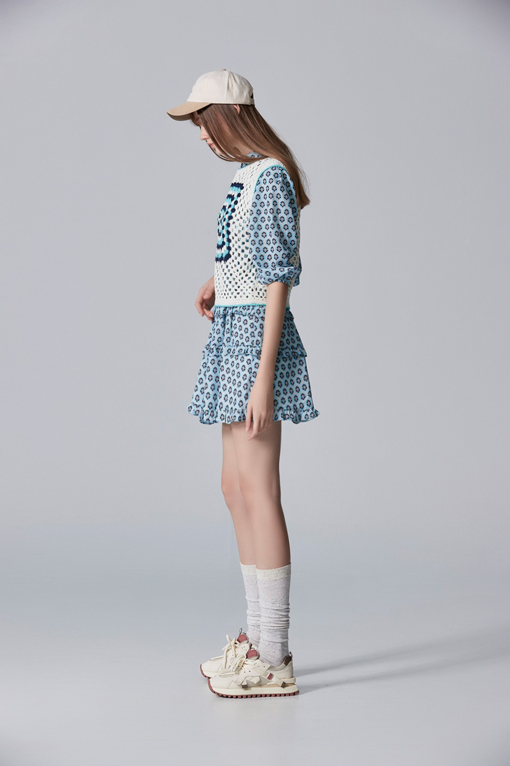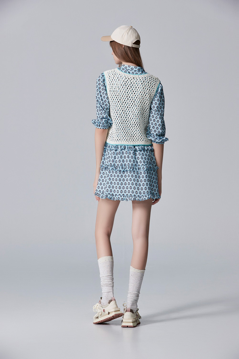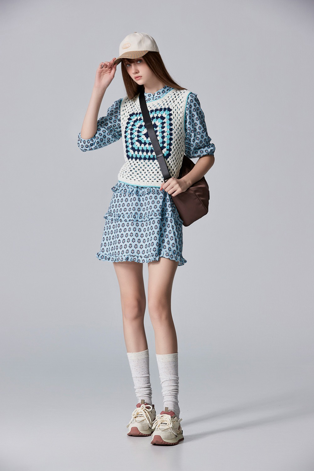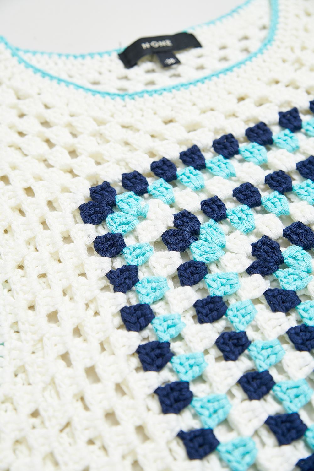 圖騰印花鏤空方格針織上衣 - 無瑕純白, 38