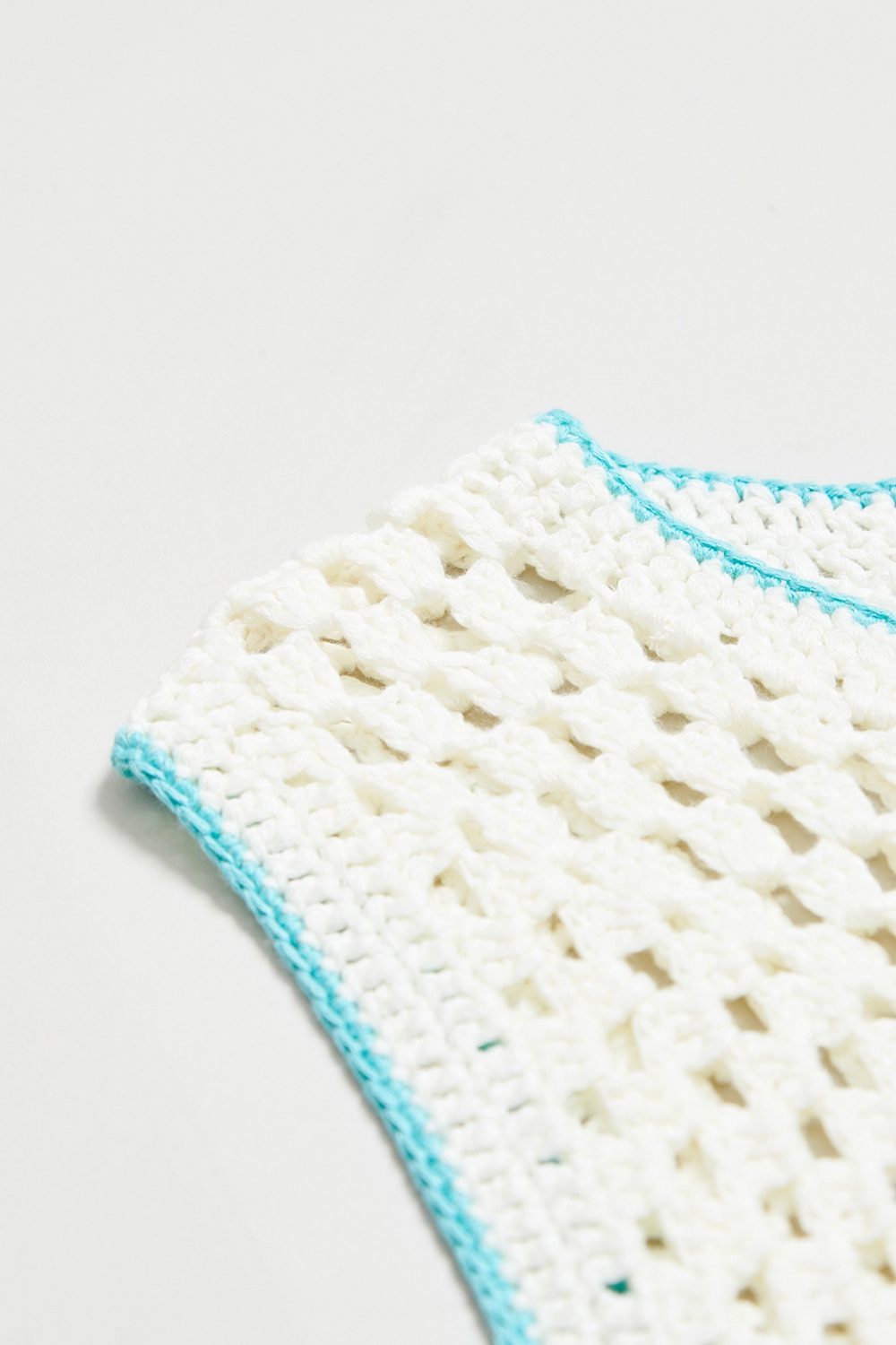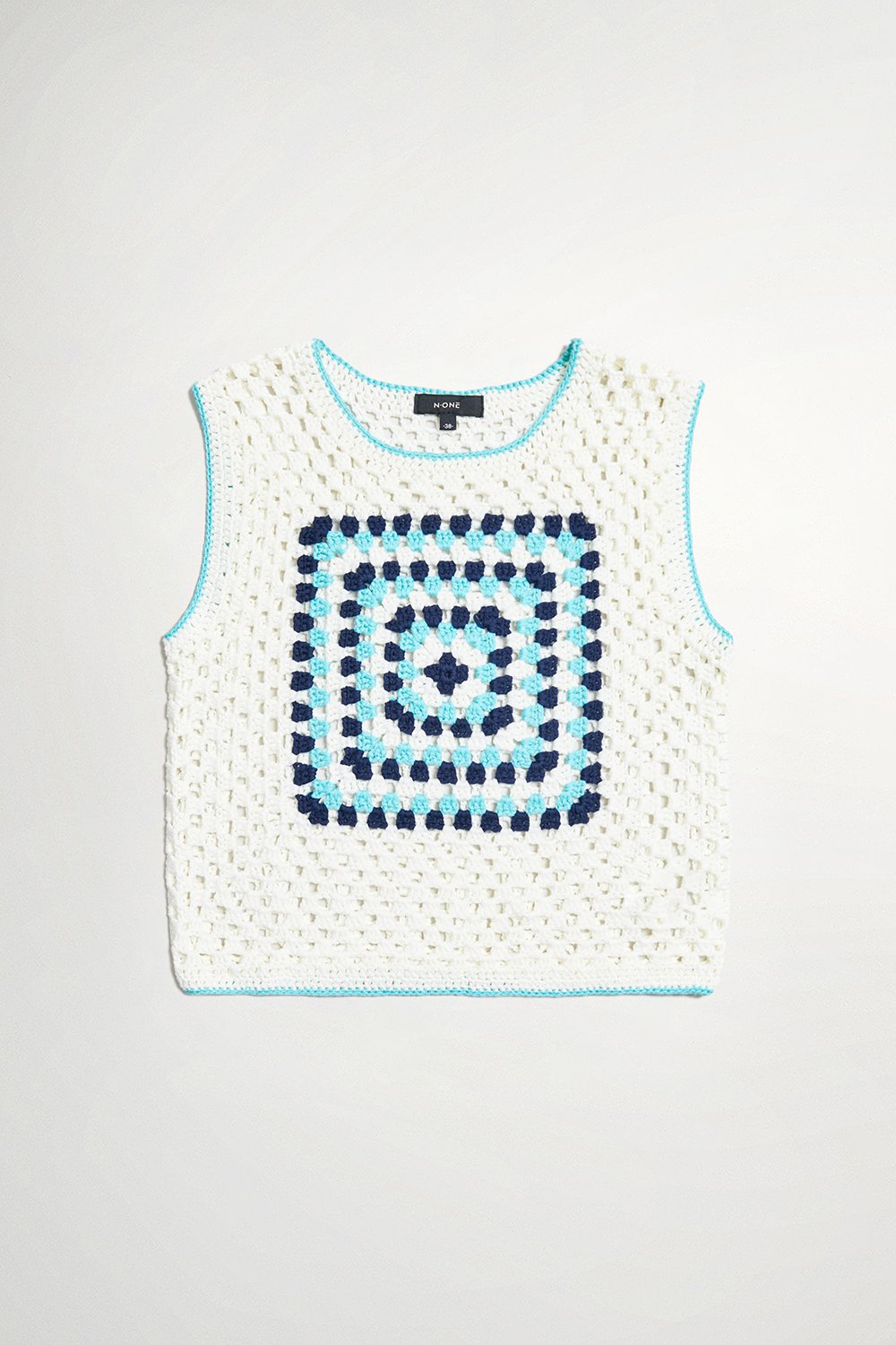 圖騰印花鏤空方格針織上衣 - 無瑕純白, 40