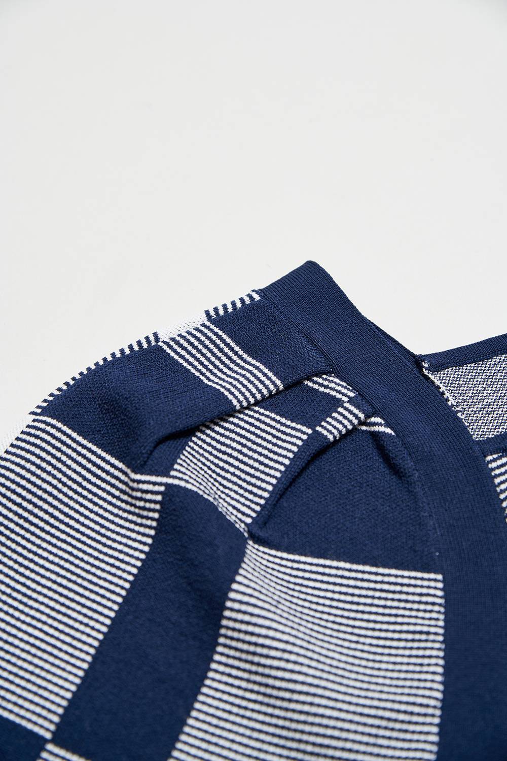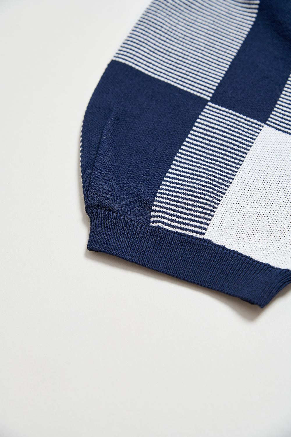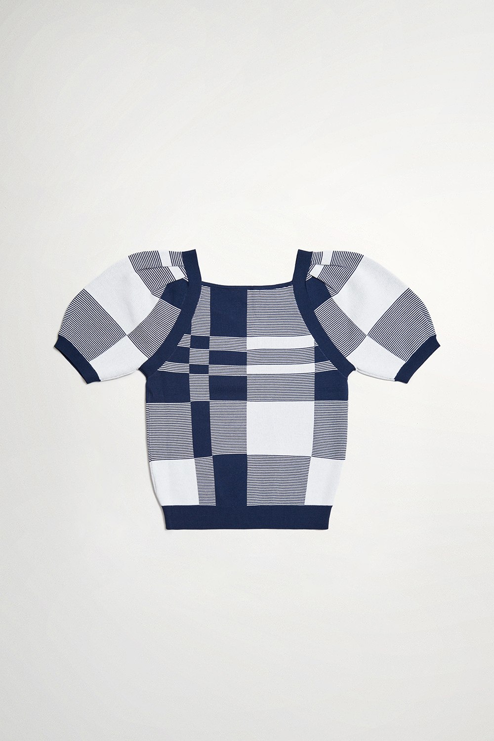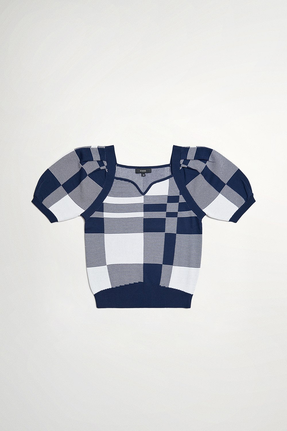 古典優雅格紋公主袖針織上衣 - 深邃藏藍, 40