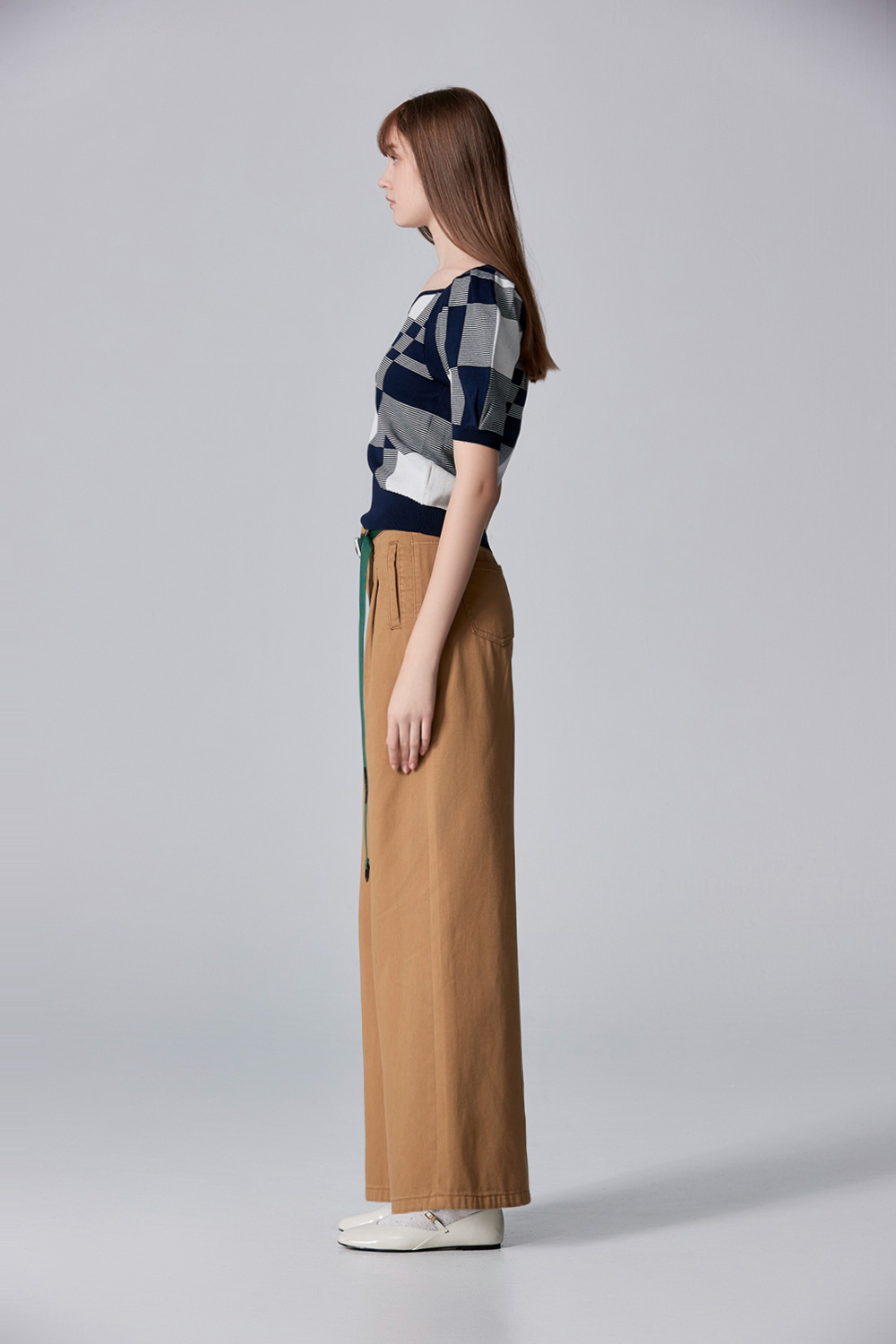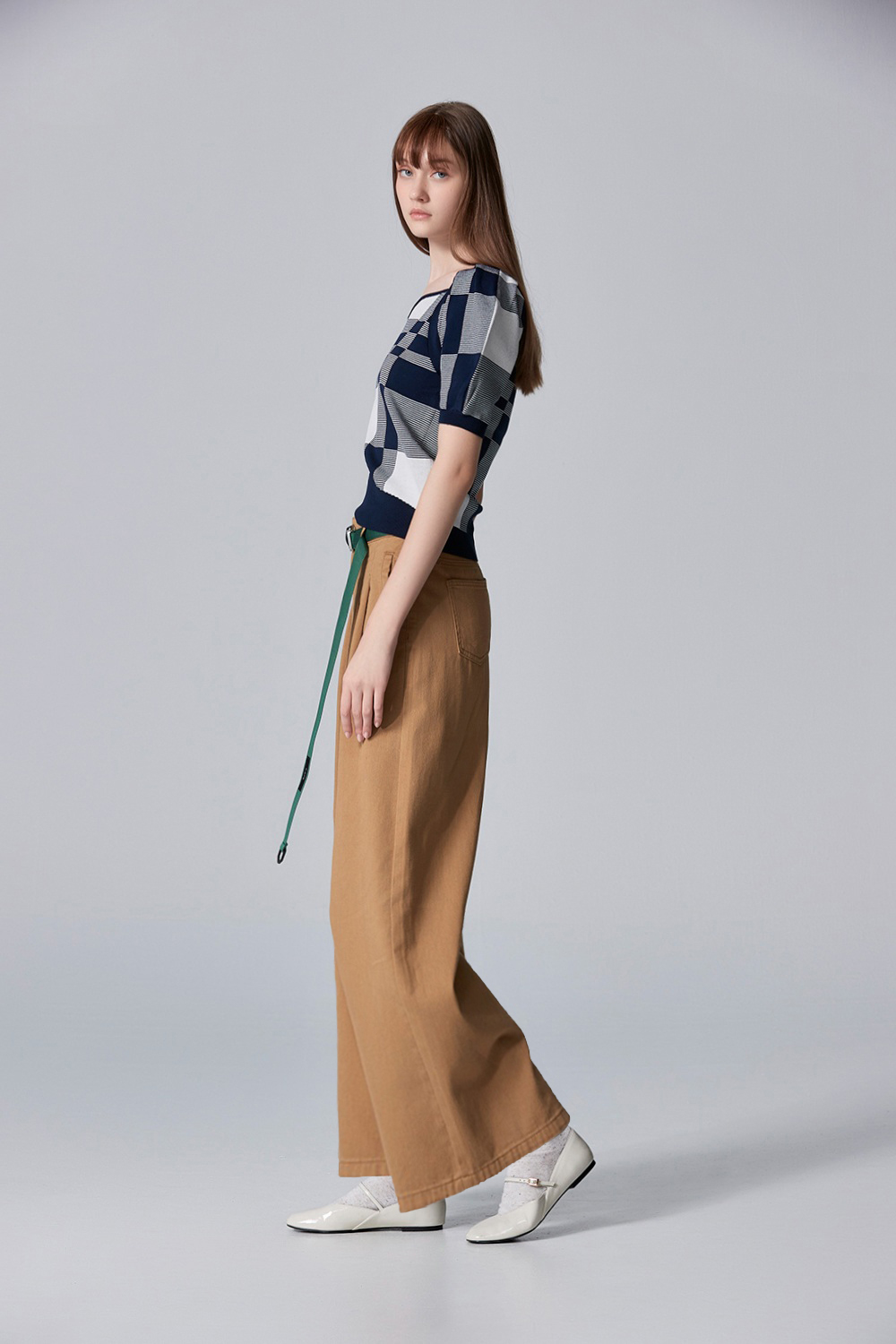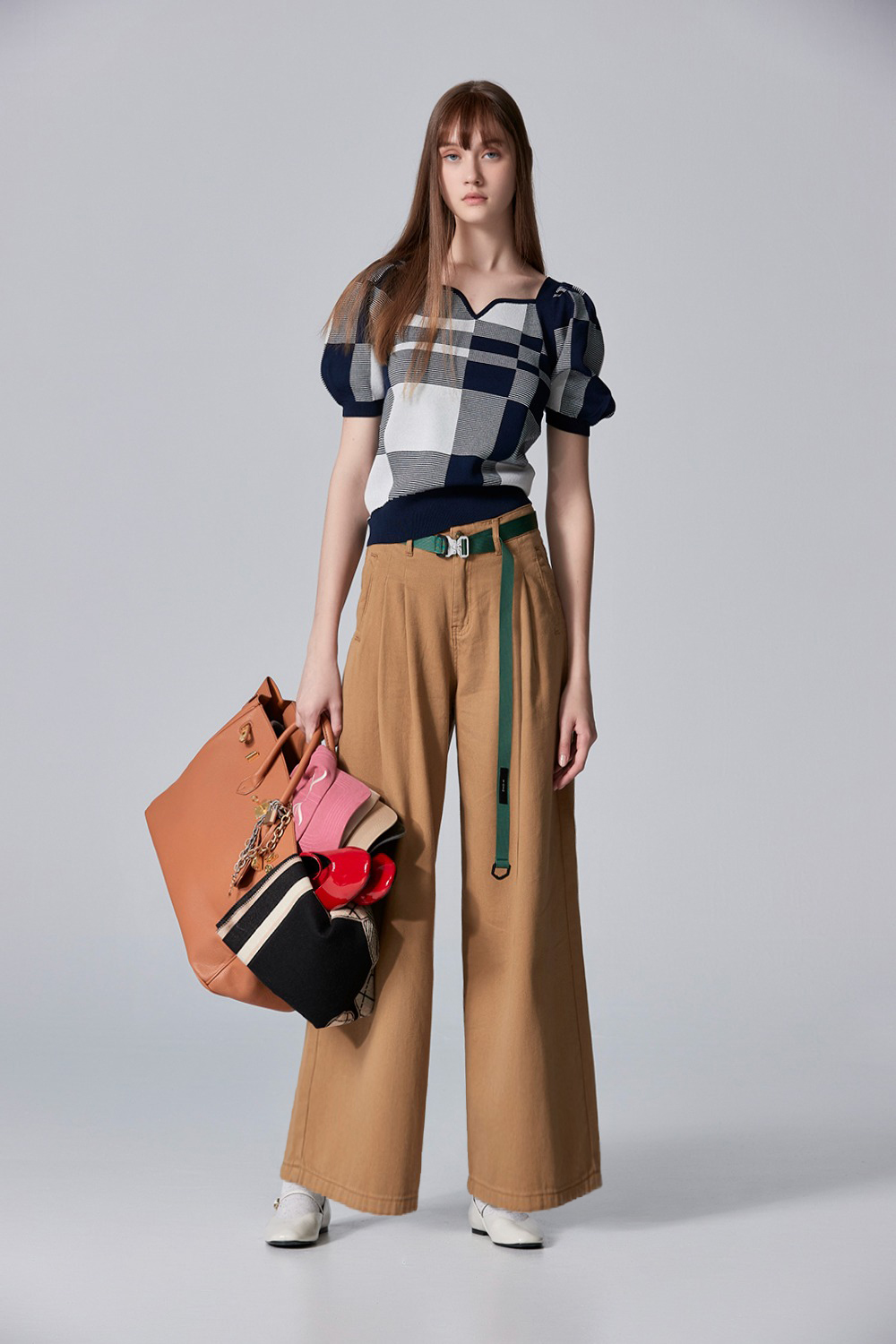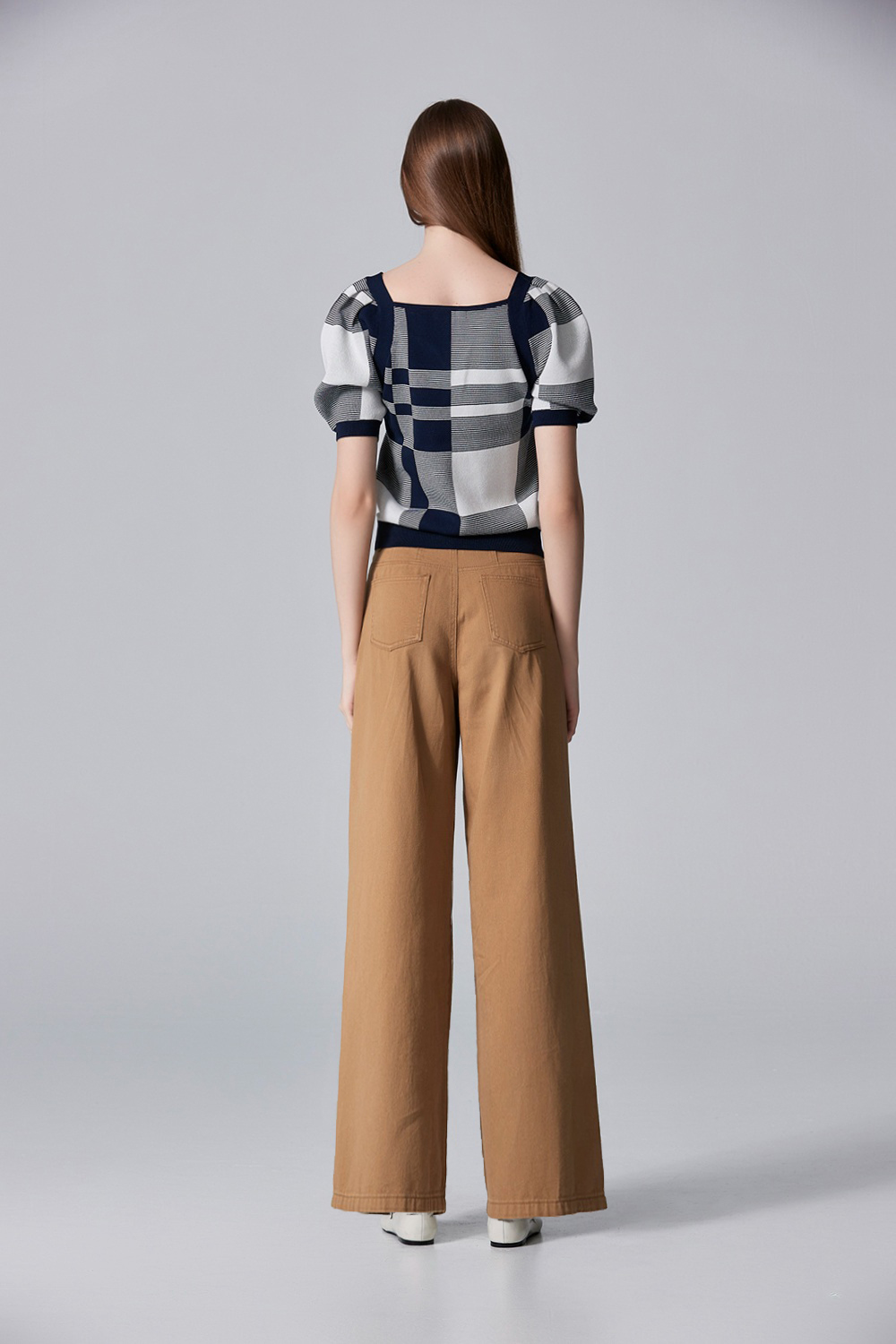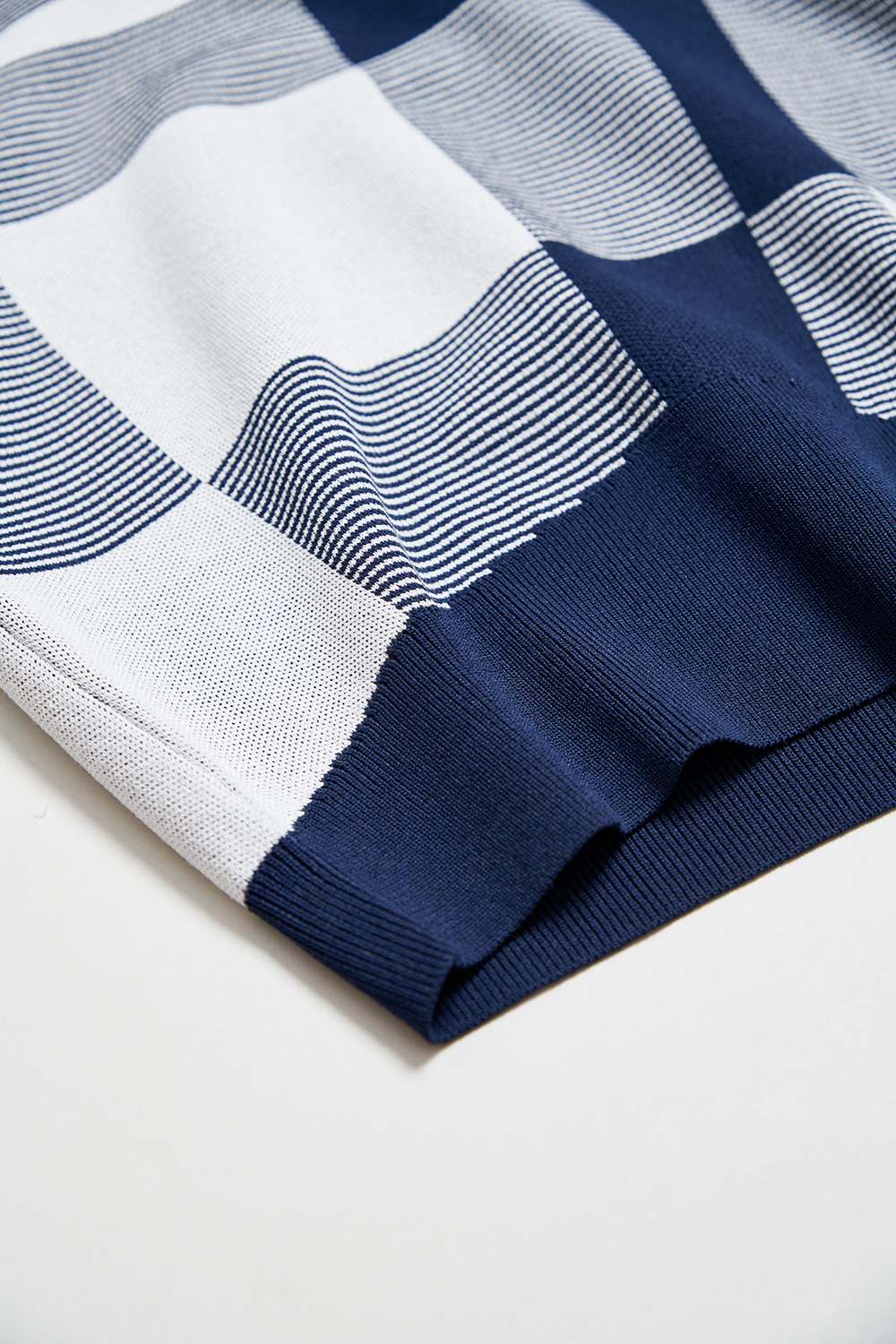 古典優雅格紋公主袖針織上衣 - 深邃藏藍, 40