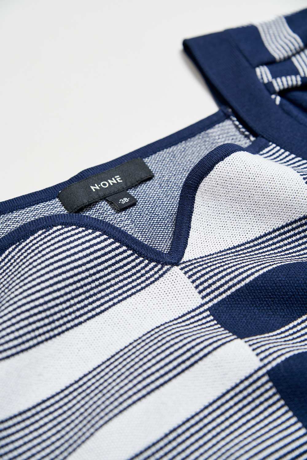 古典優雅格紋公主袖針織上衣 - 深邃藏藍, 38