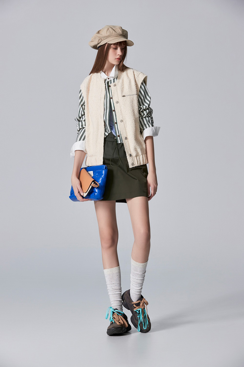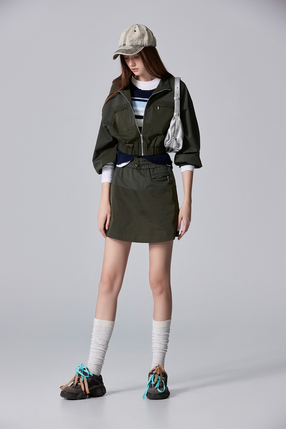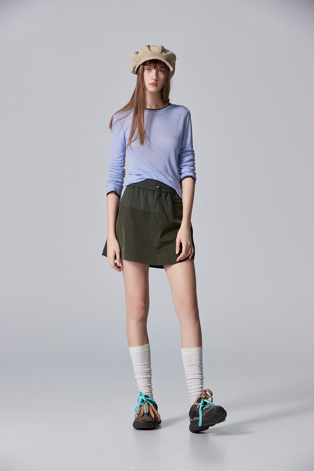 慵懒格調修身剪接休閒短裙 - 霧柔墨綠, 36