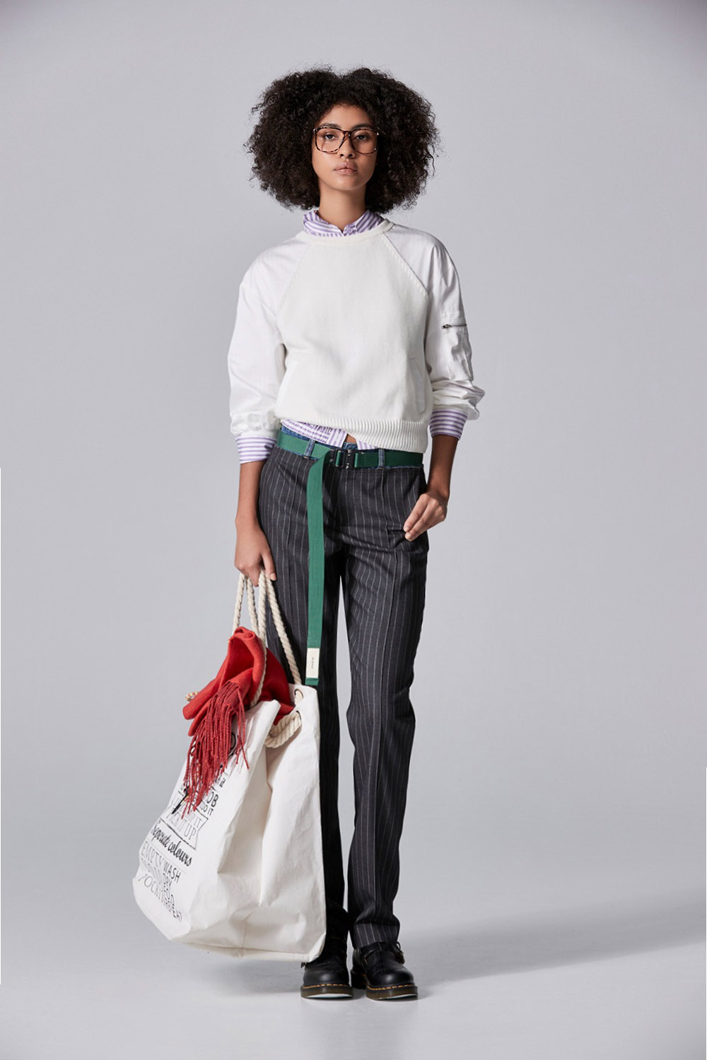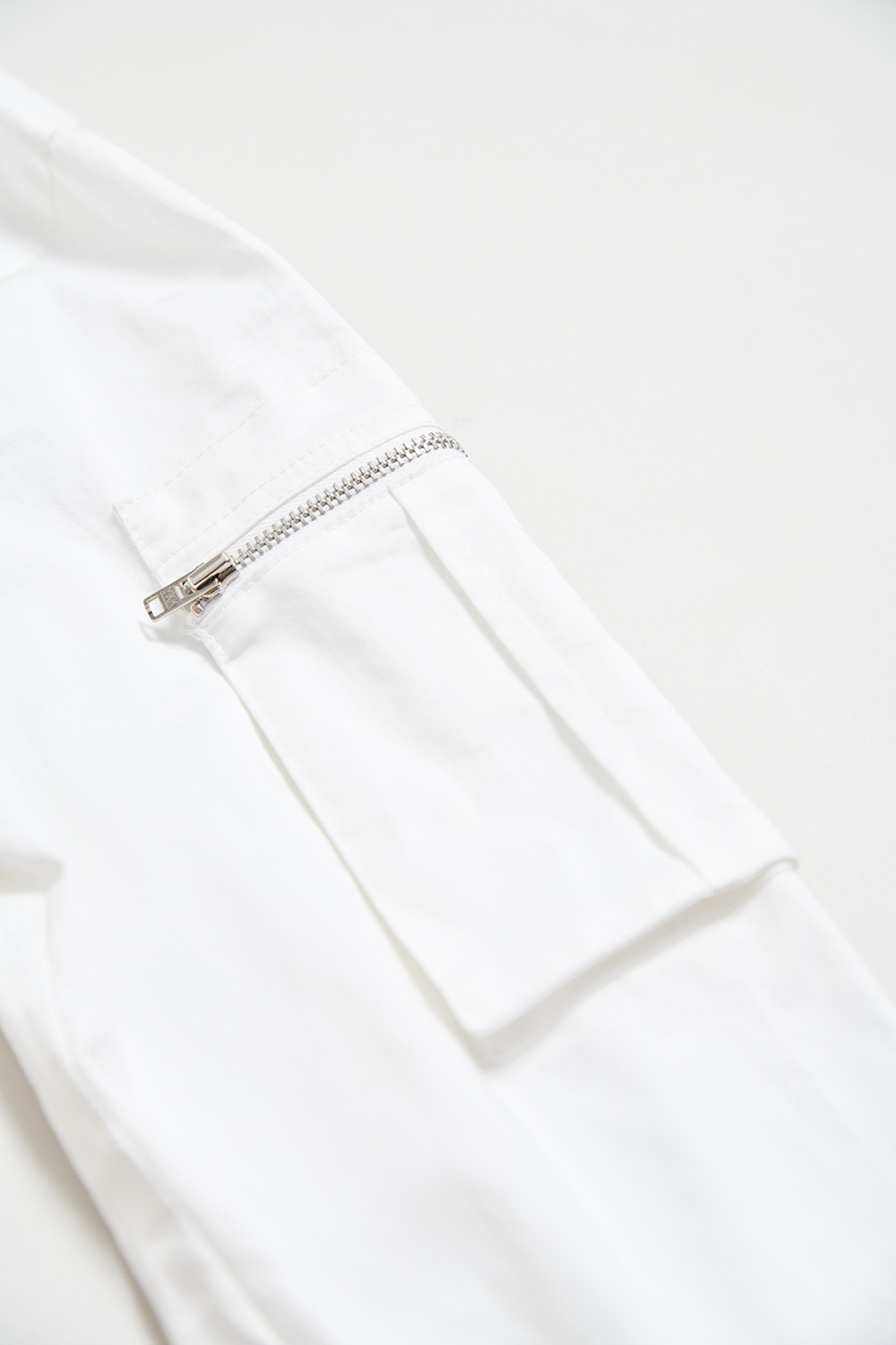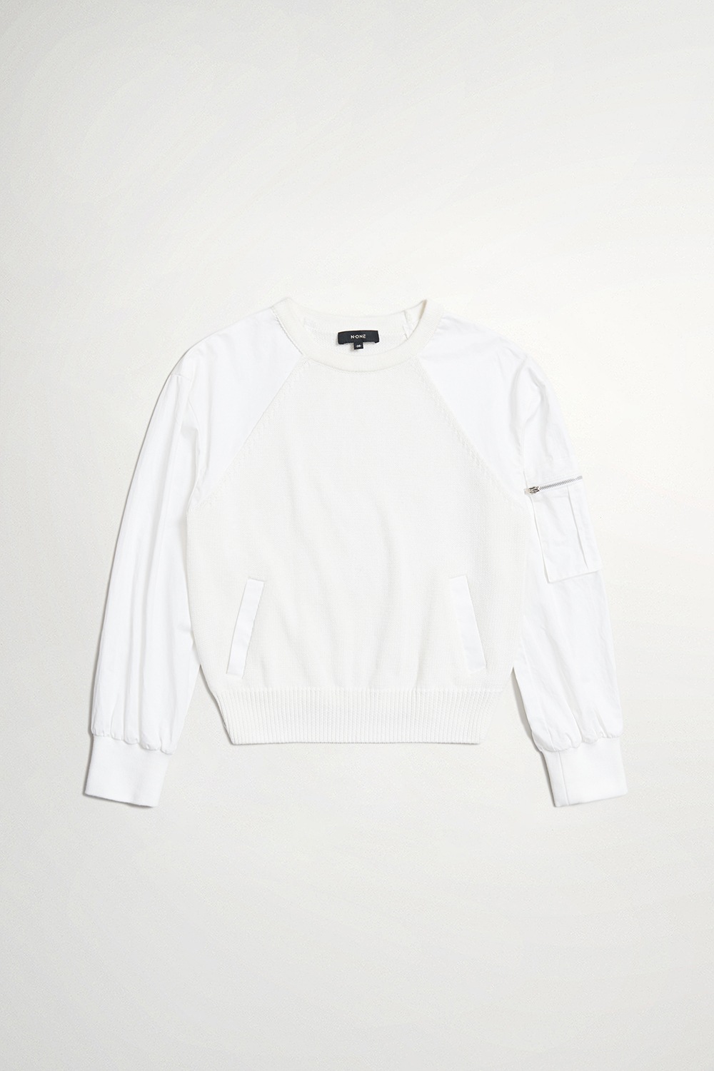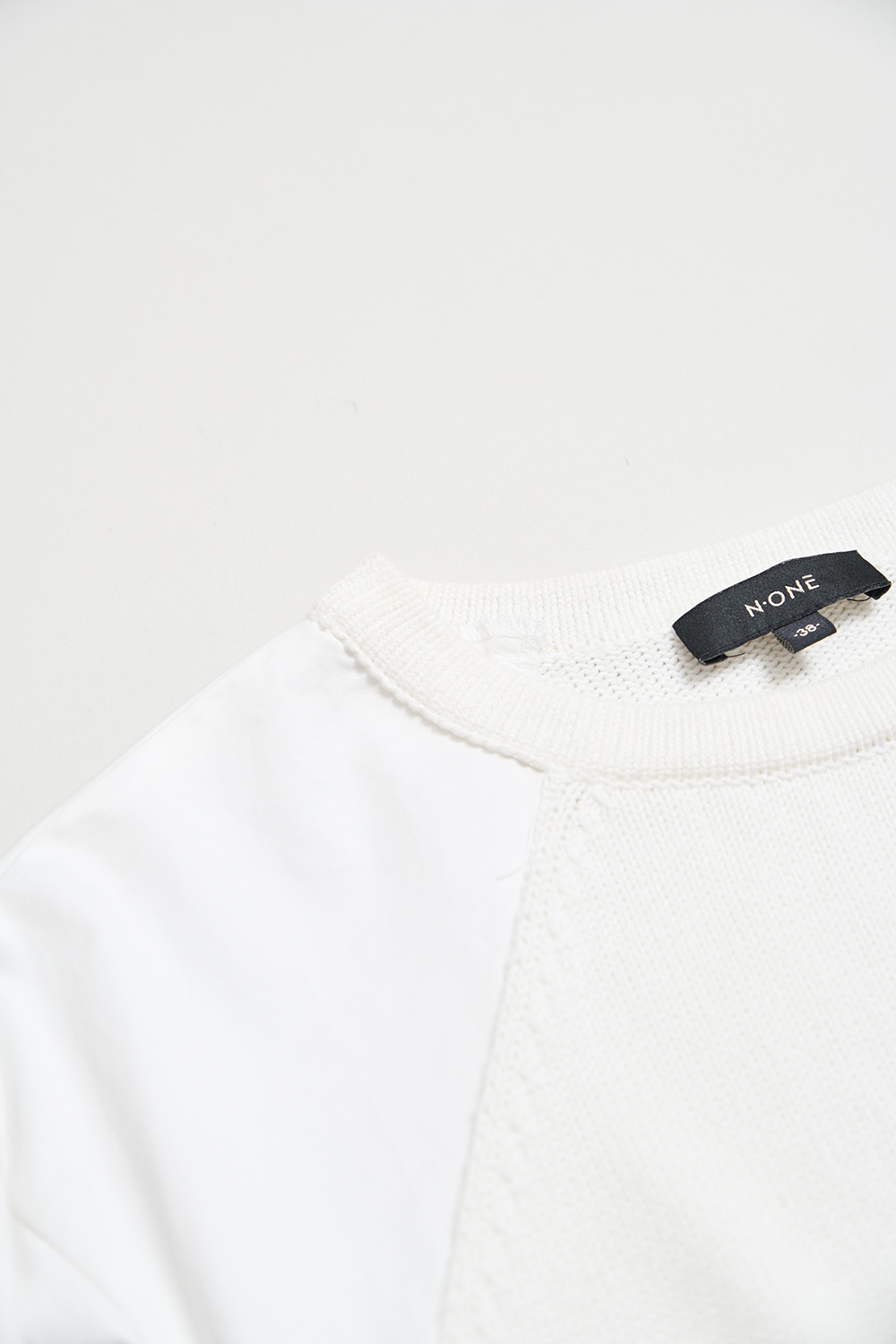 都市酷感簡約落肩拼接上衣 - 無瑕純白, 38