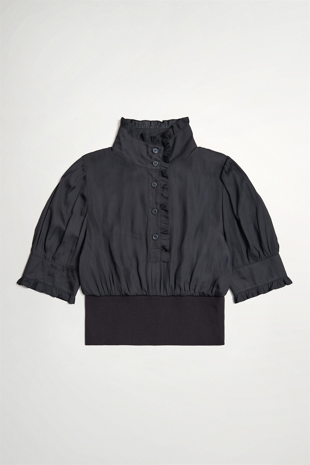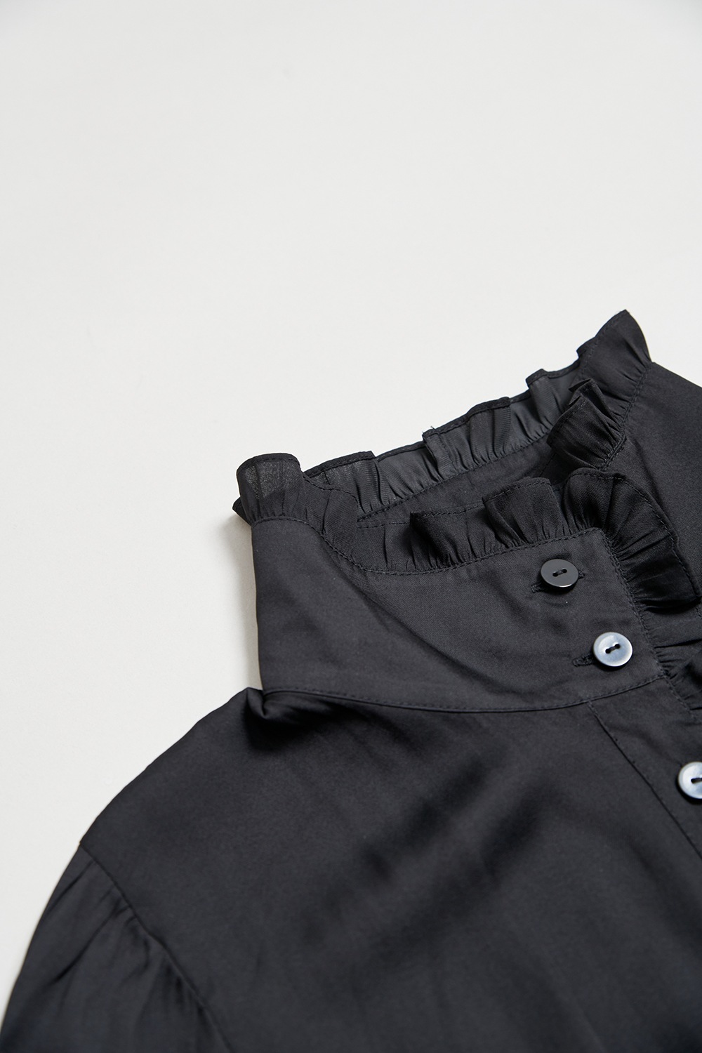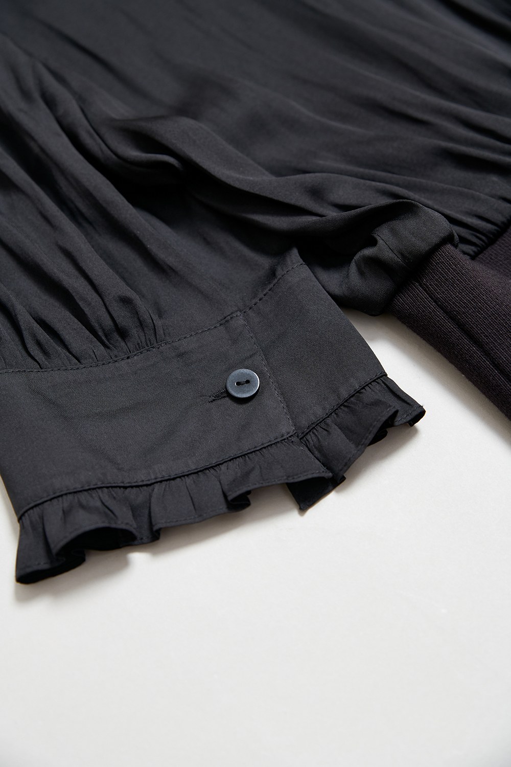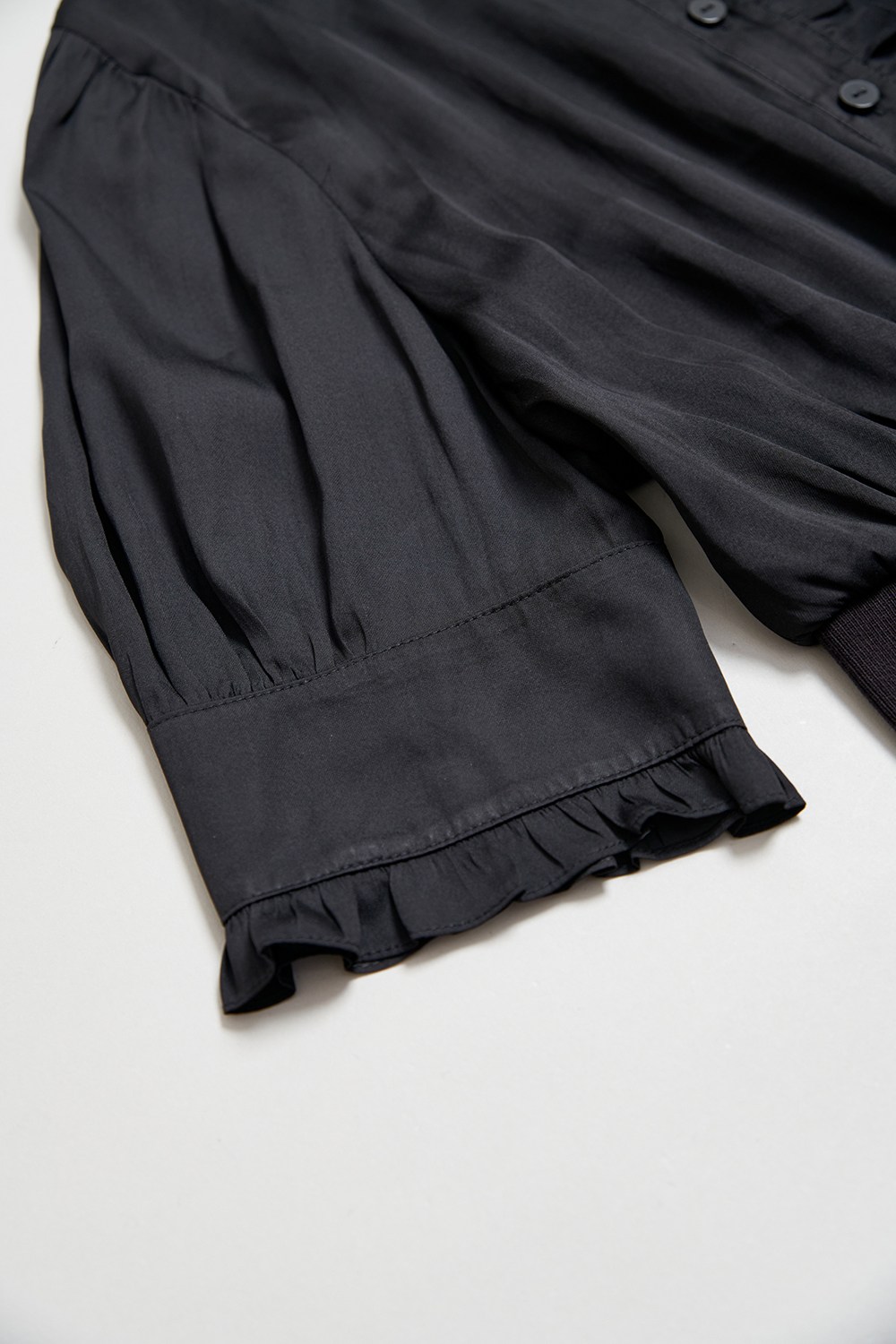 摩登絕美立體小荷葉收腰上衣 - 神祕純黑, 36