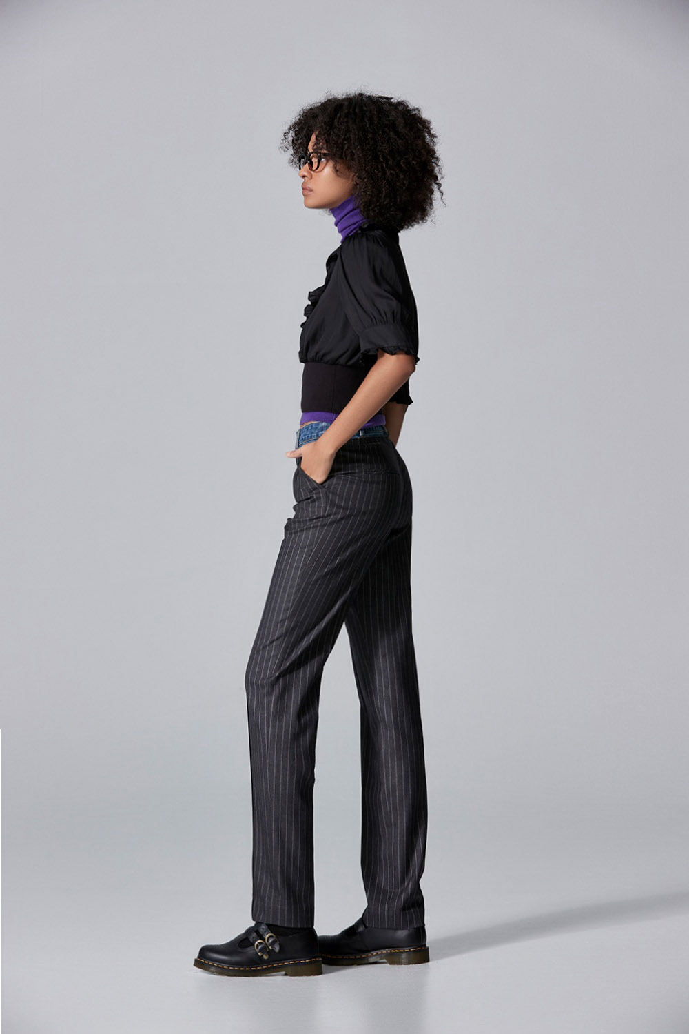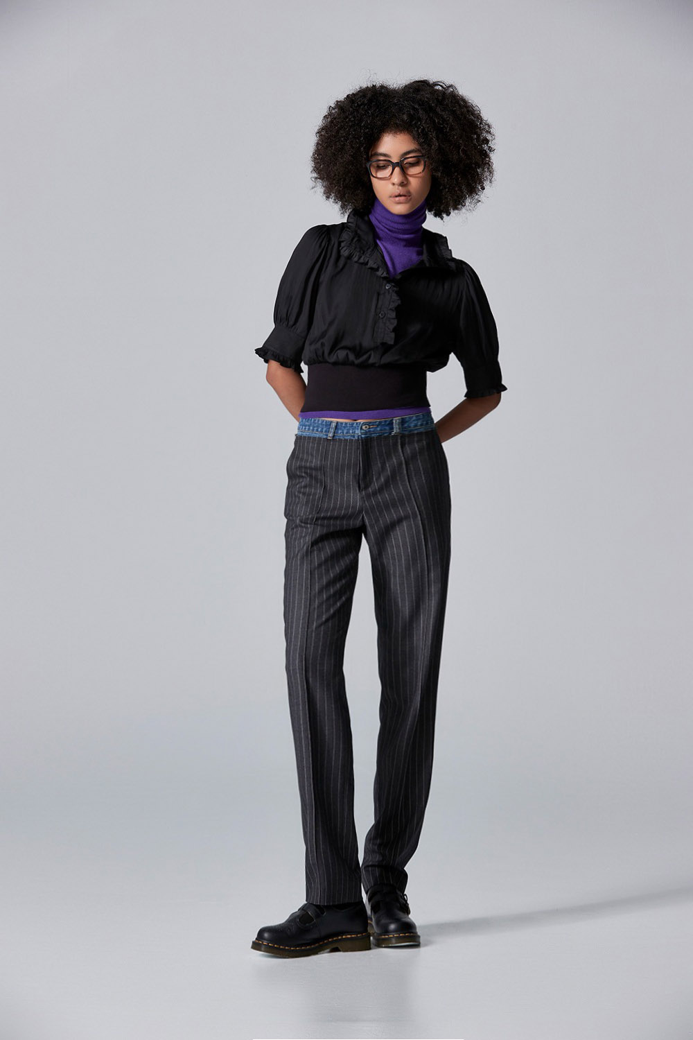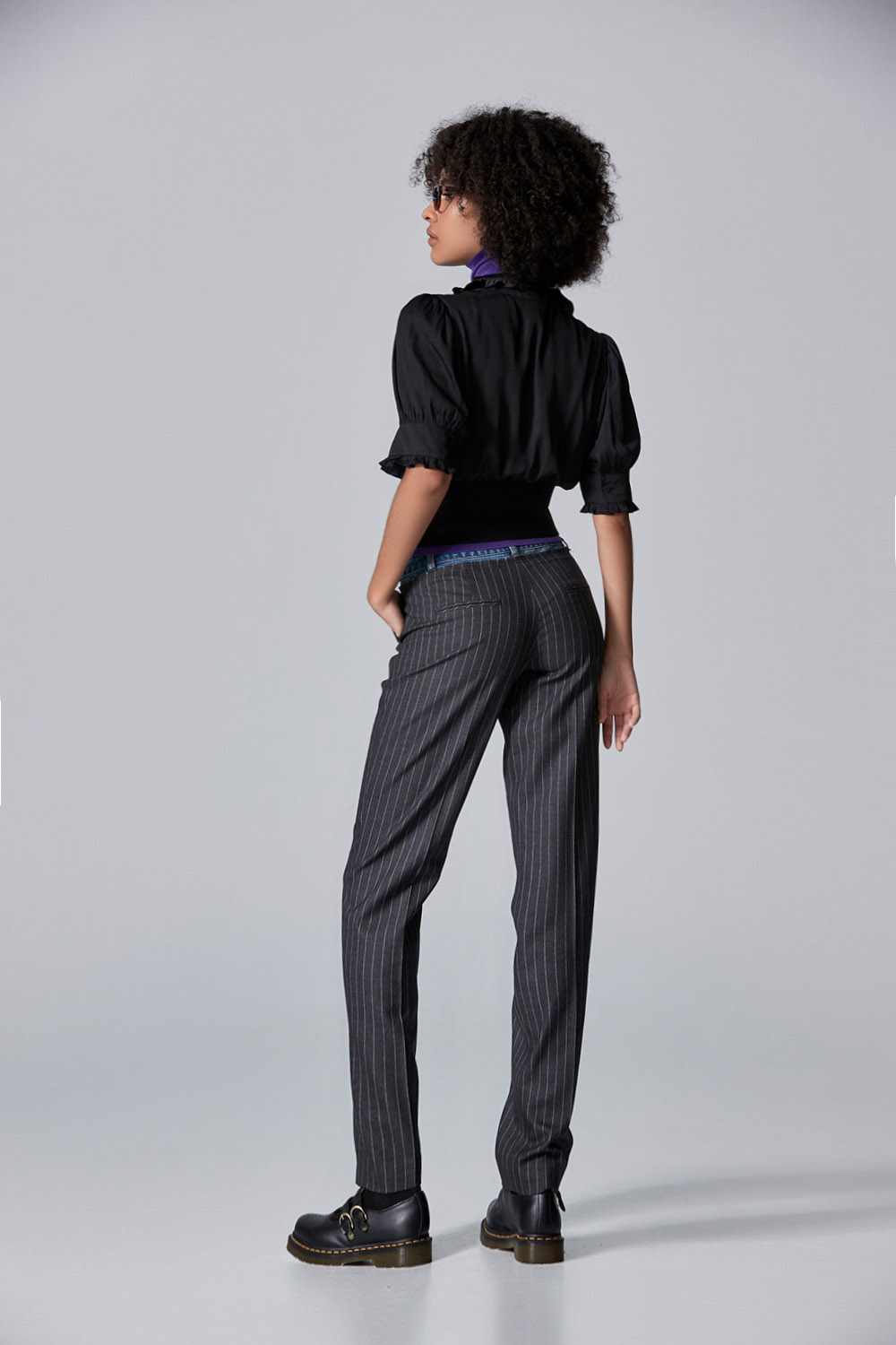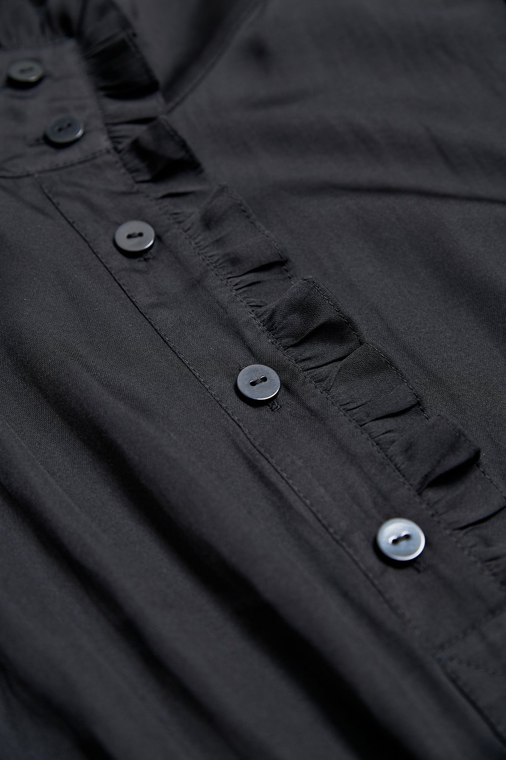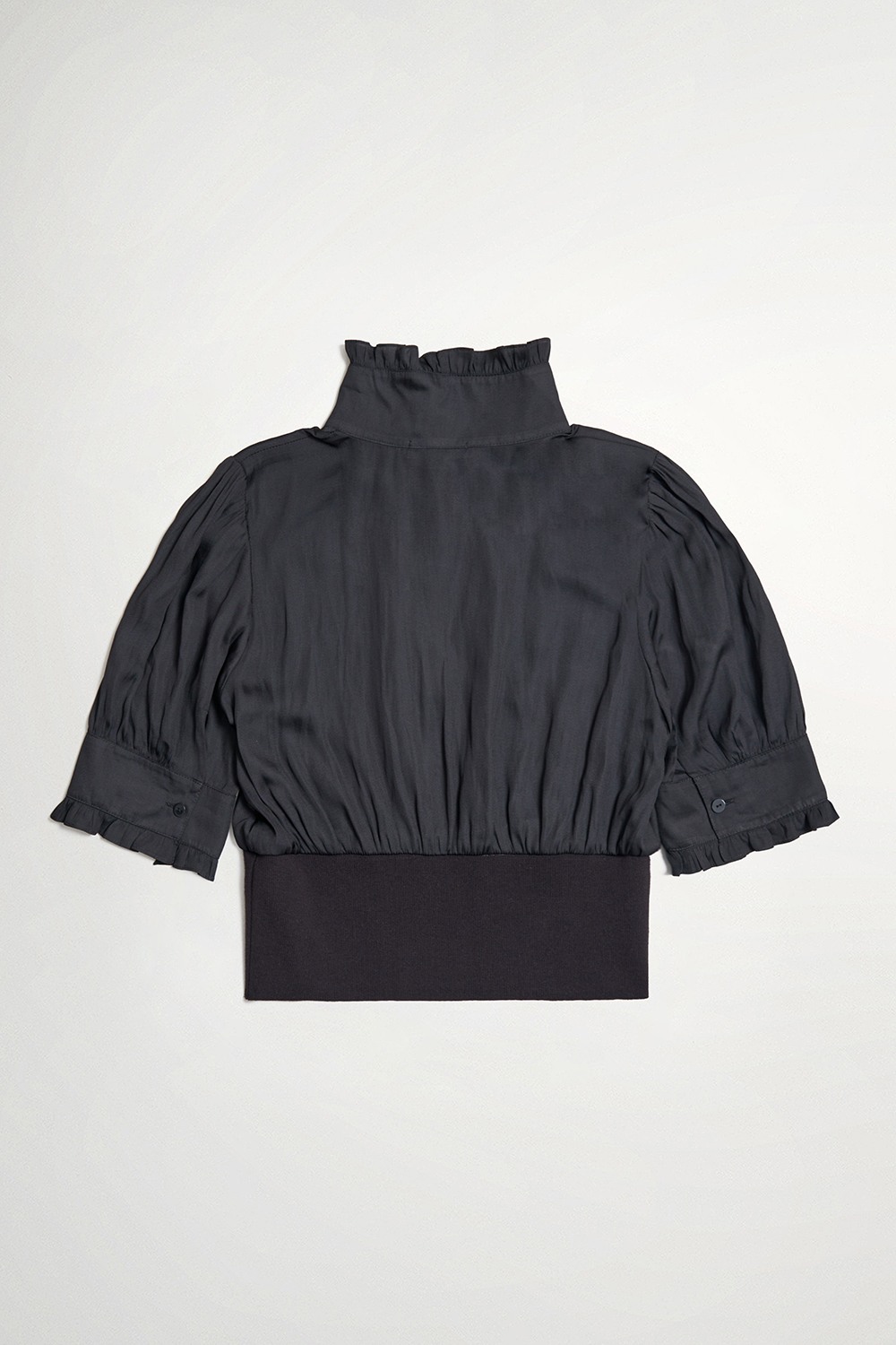 摩登絕美立體小荷葉收腰上衣 - 神祕純黑, 36