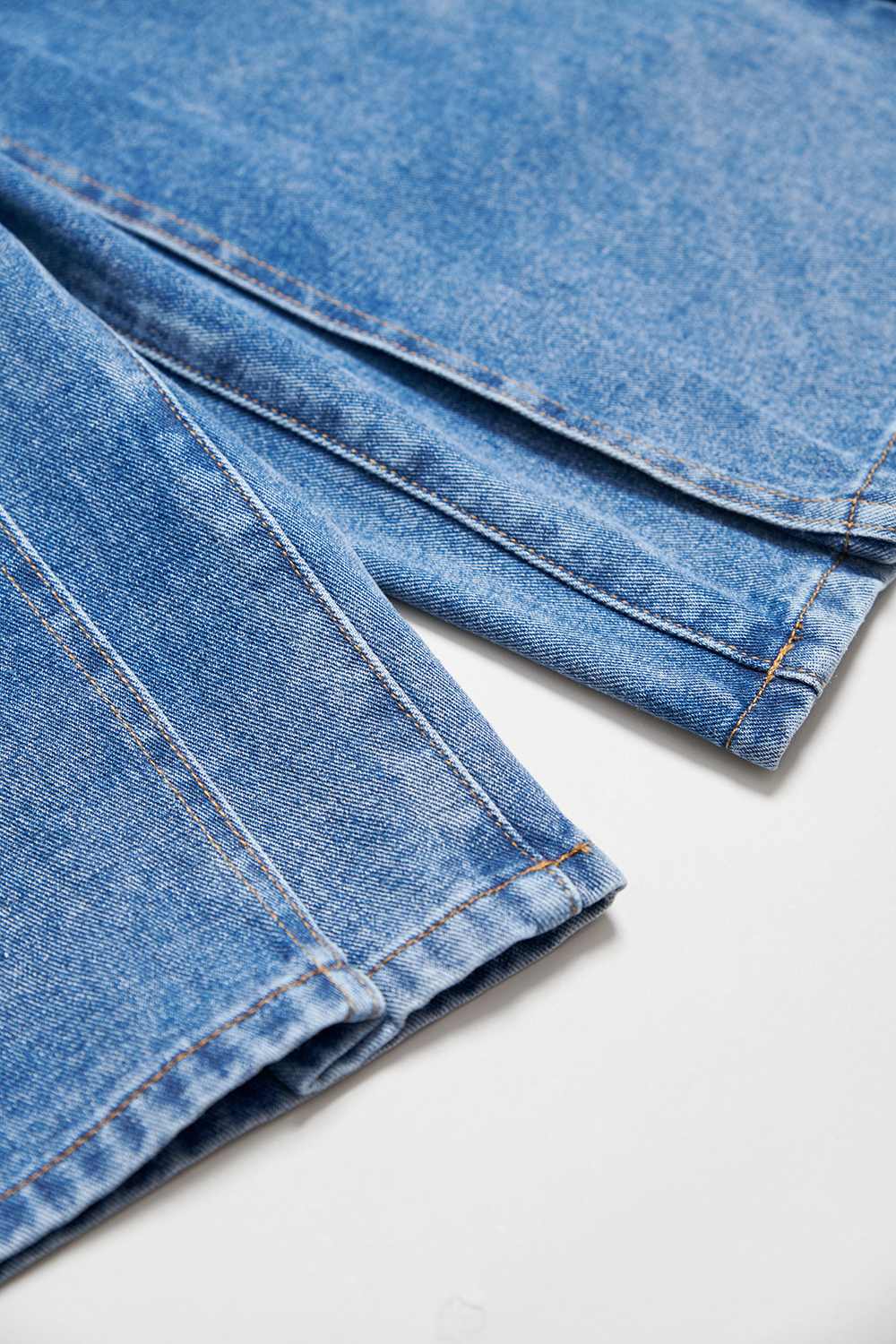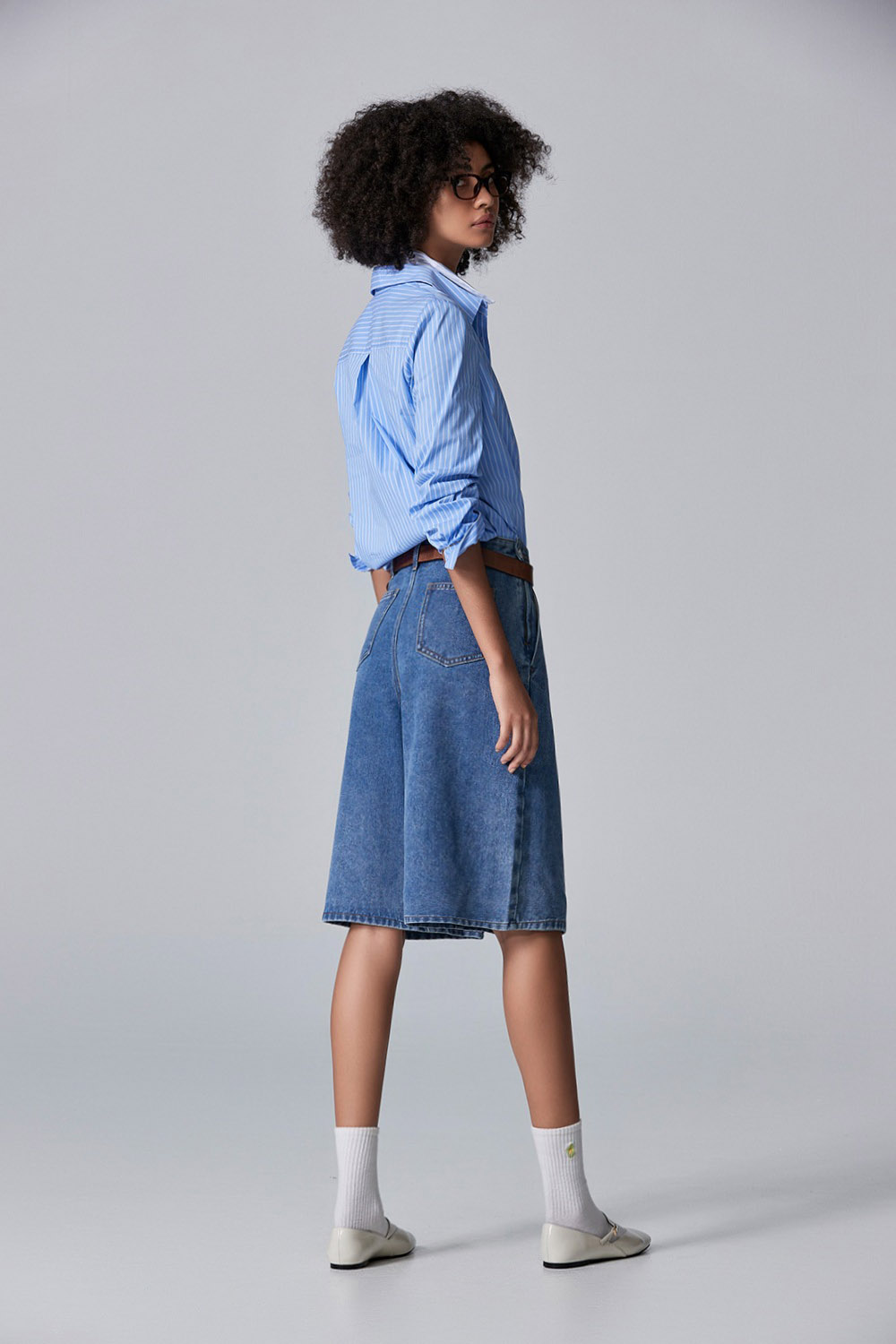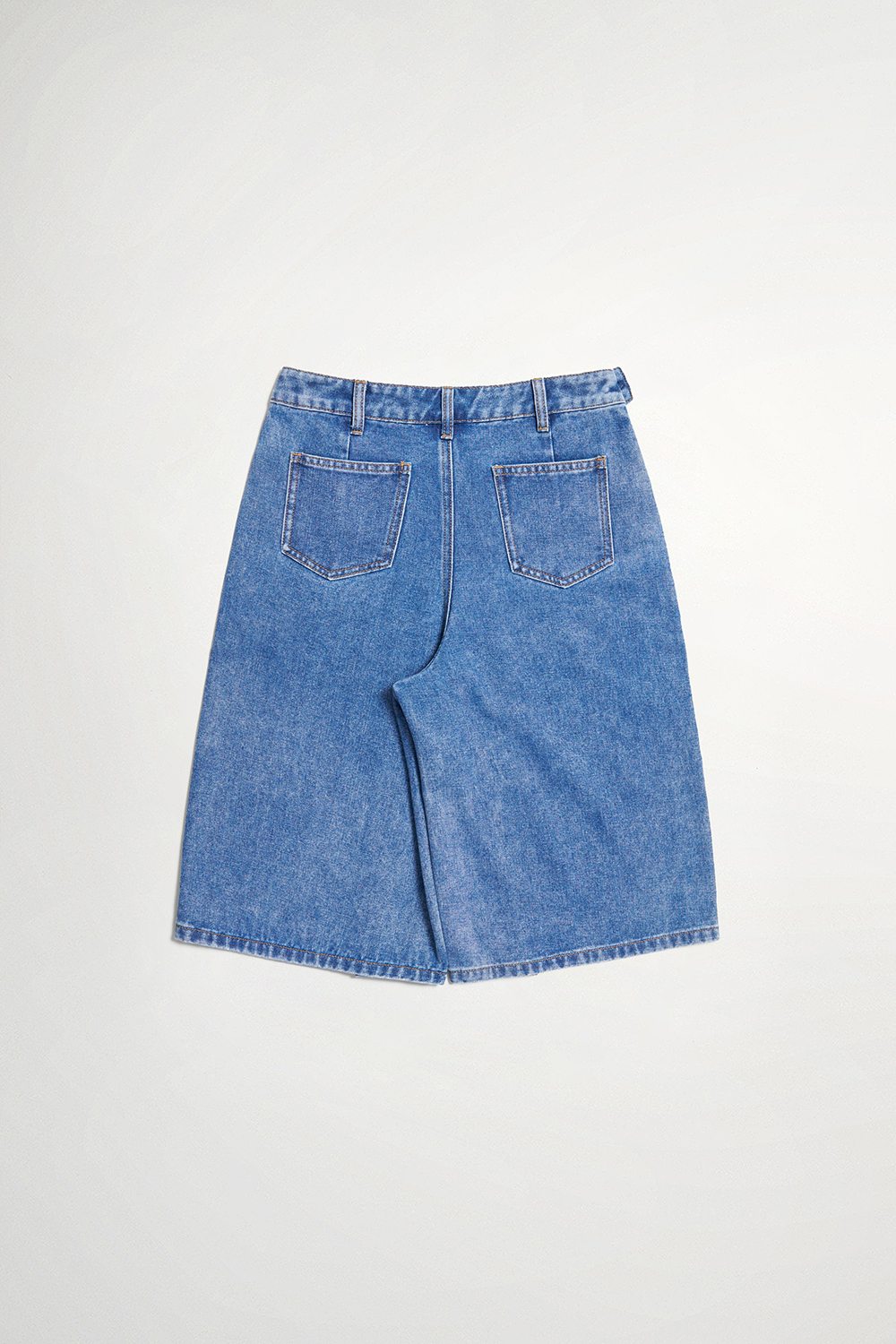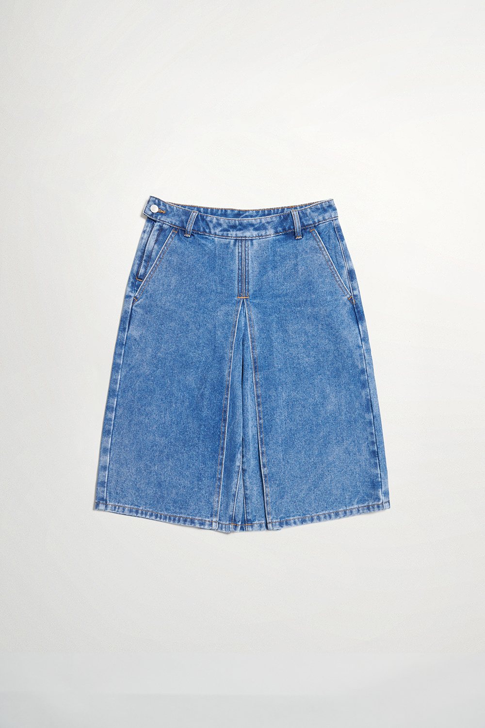 隨性瀟灑開岔摺牛仔裙褲 - 深邃藏藍, 38
