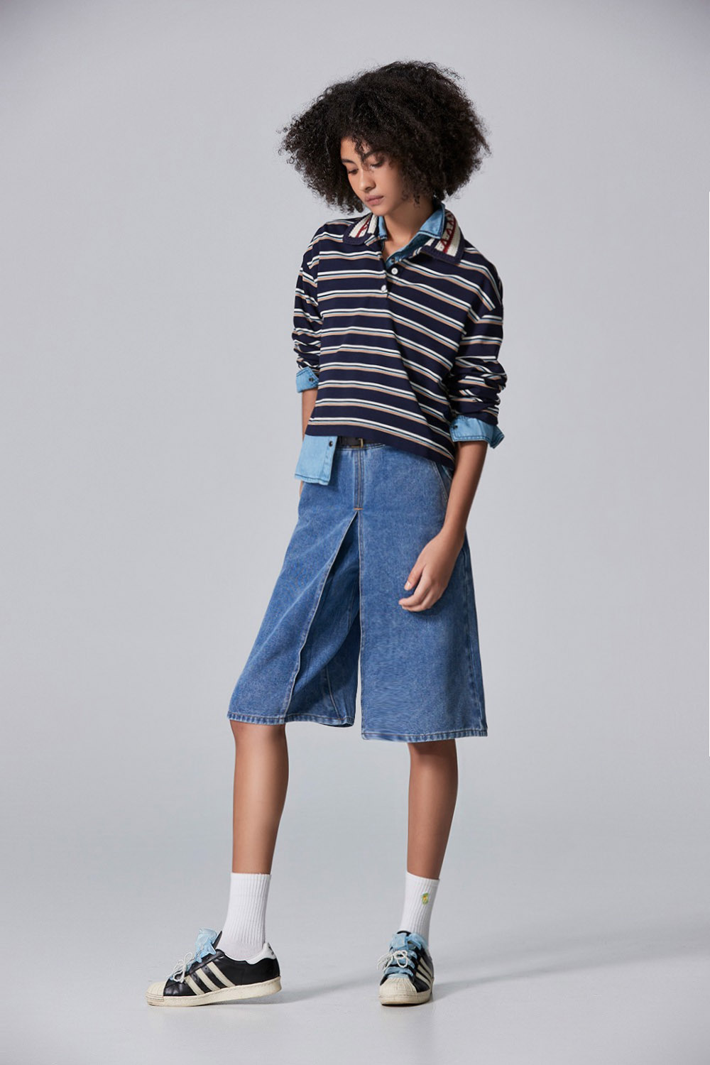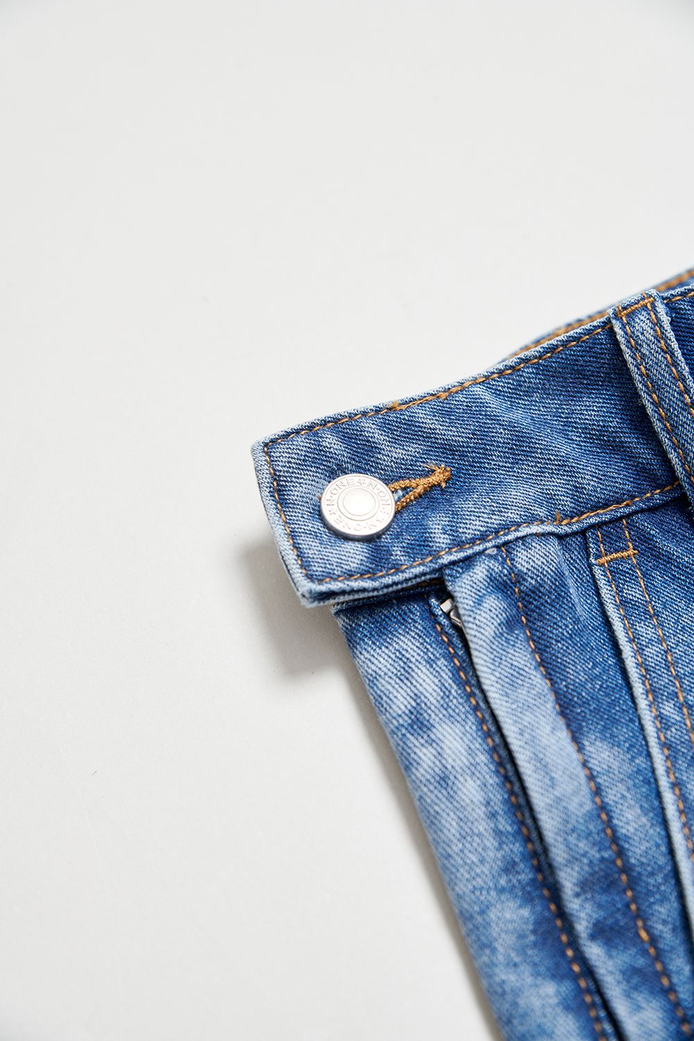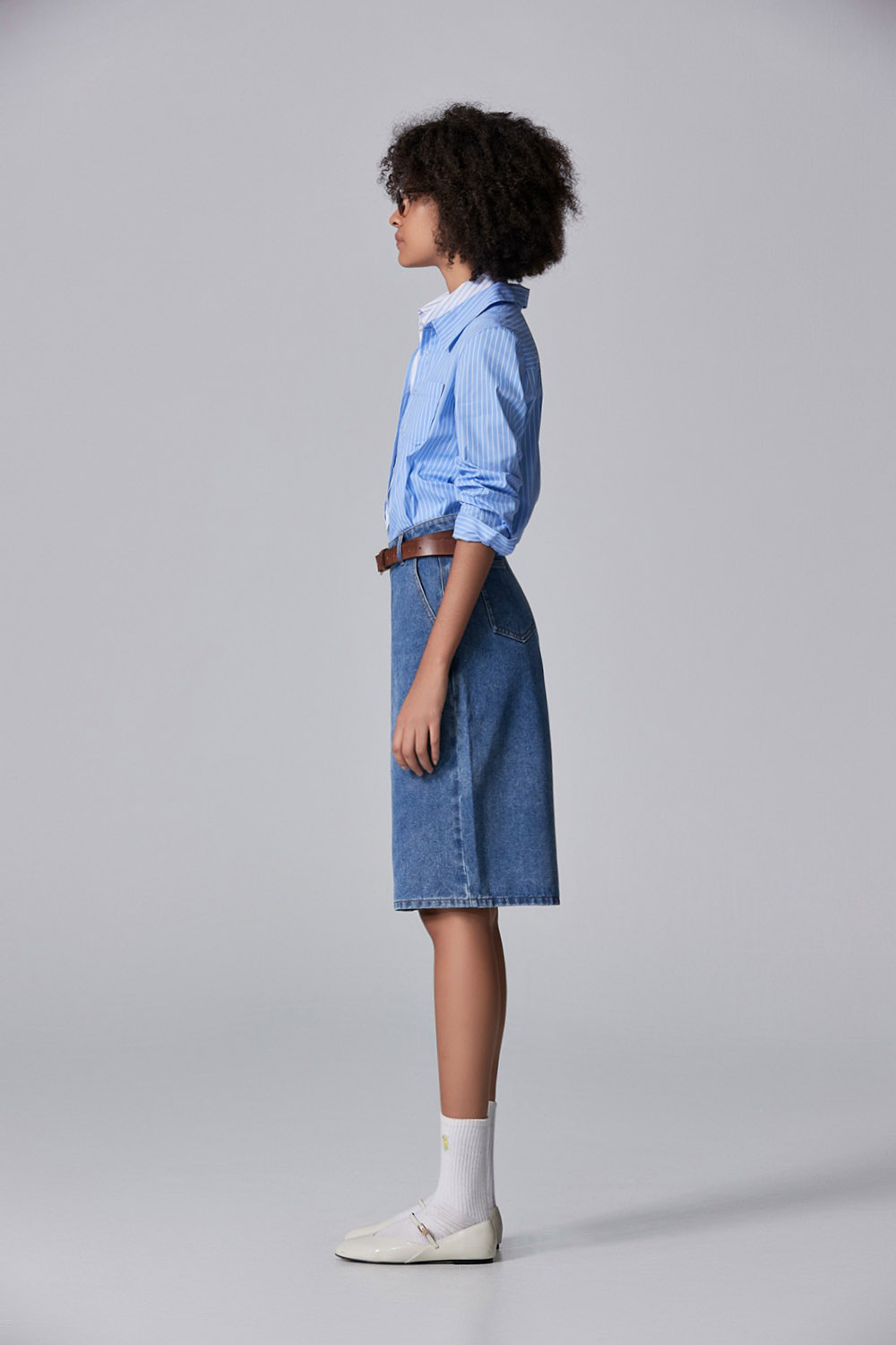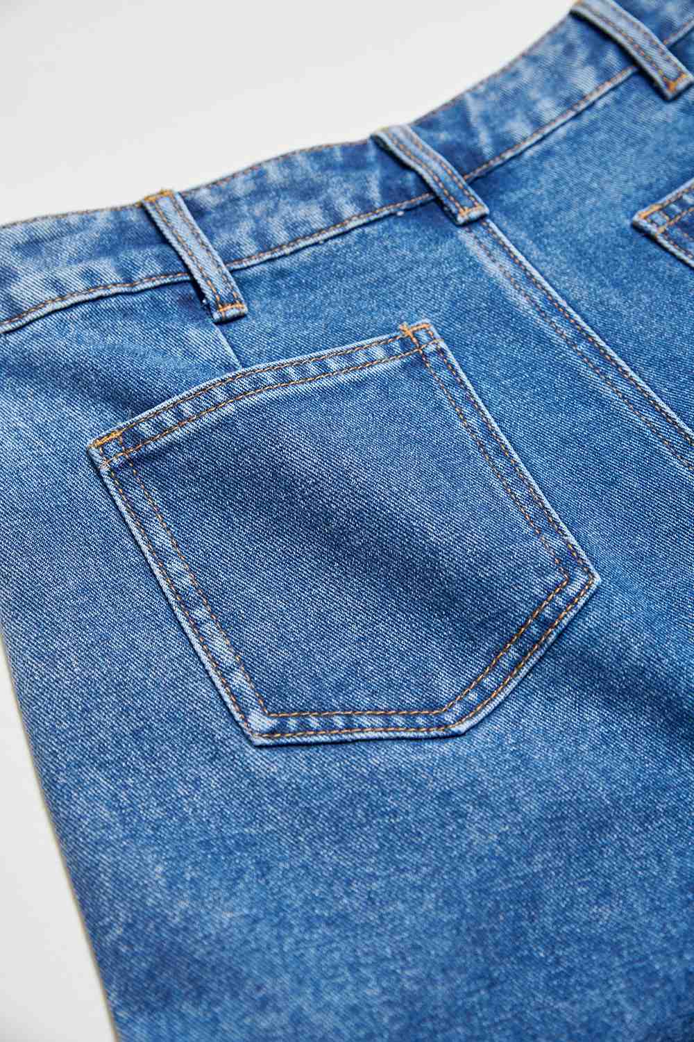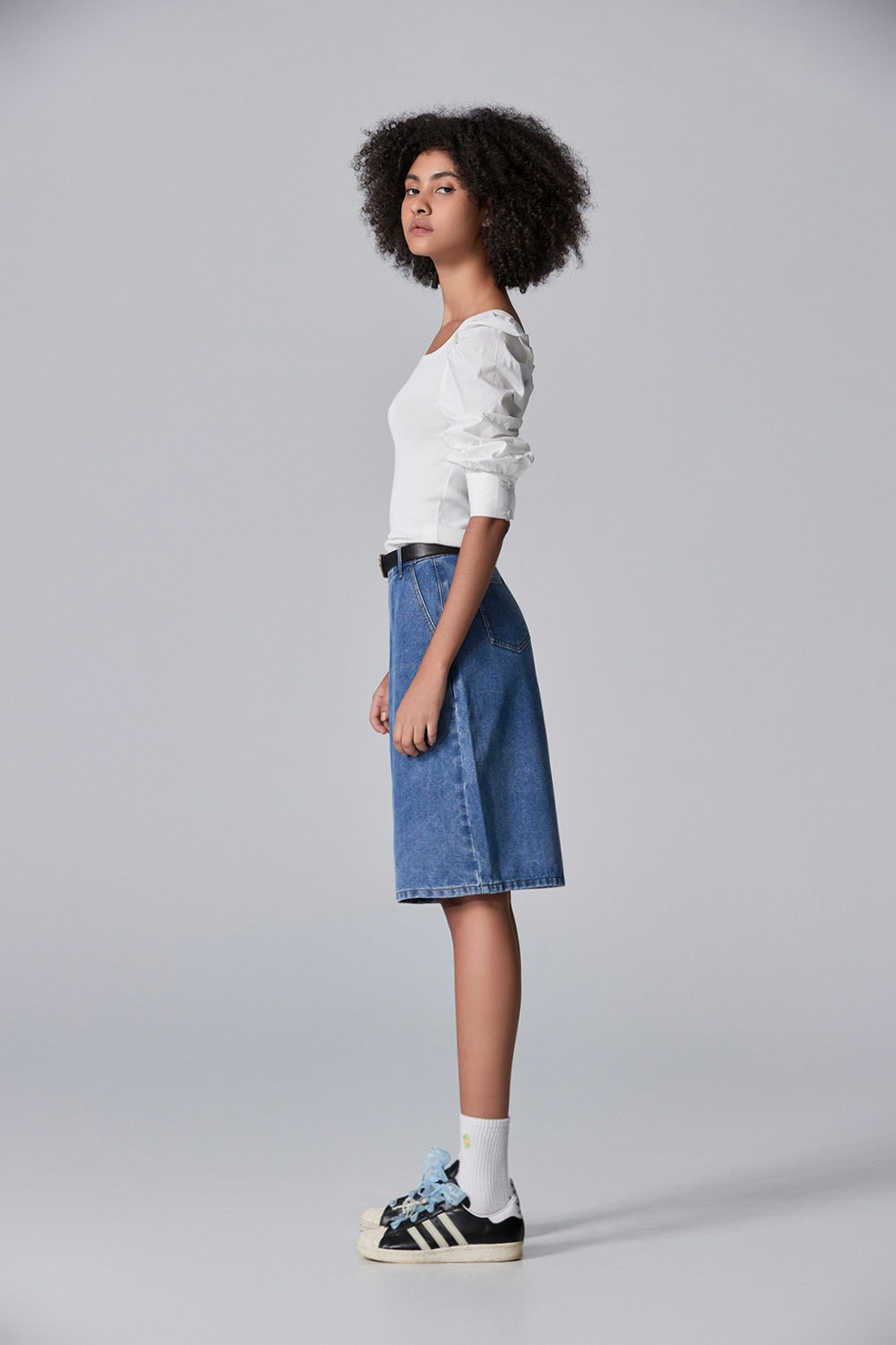 隨性瀟灑開岔摺牛仔裙褲 - 深邃藏藍, 38