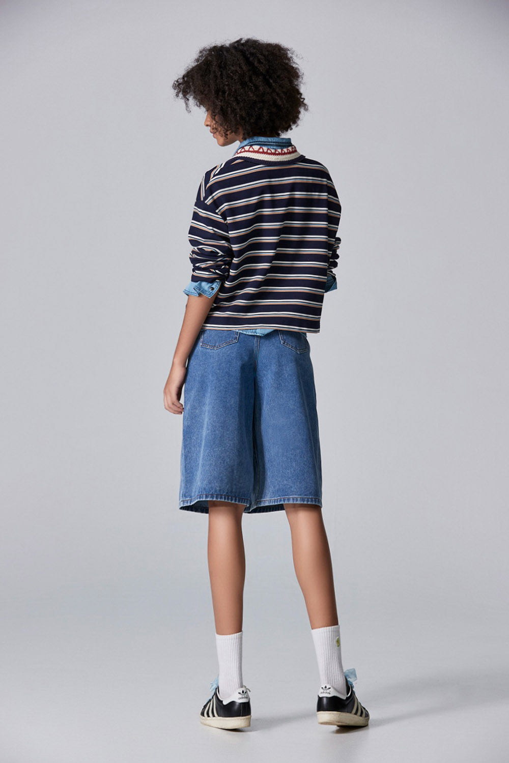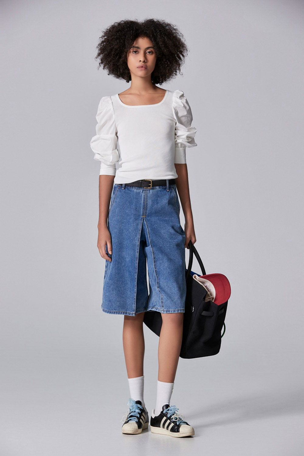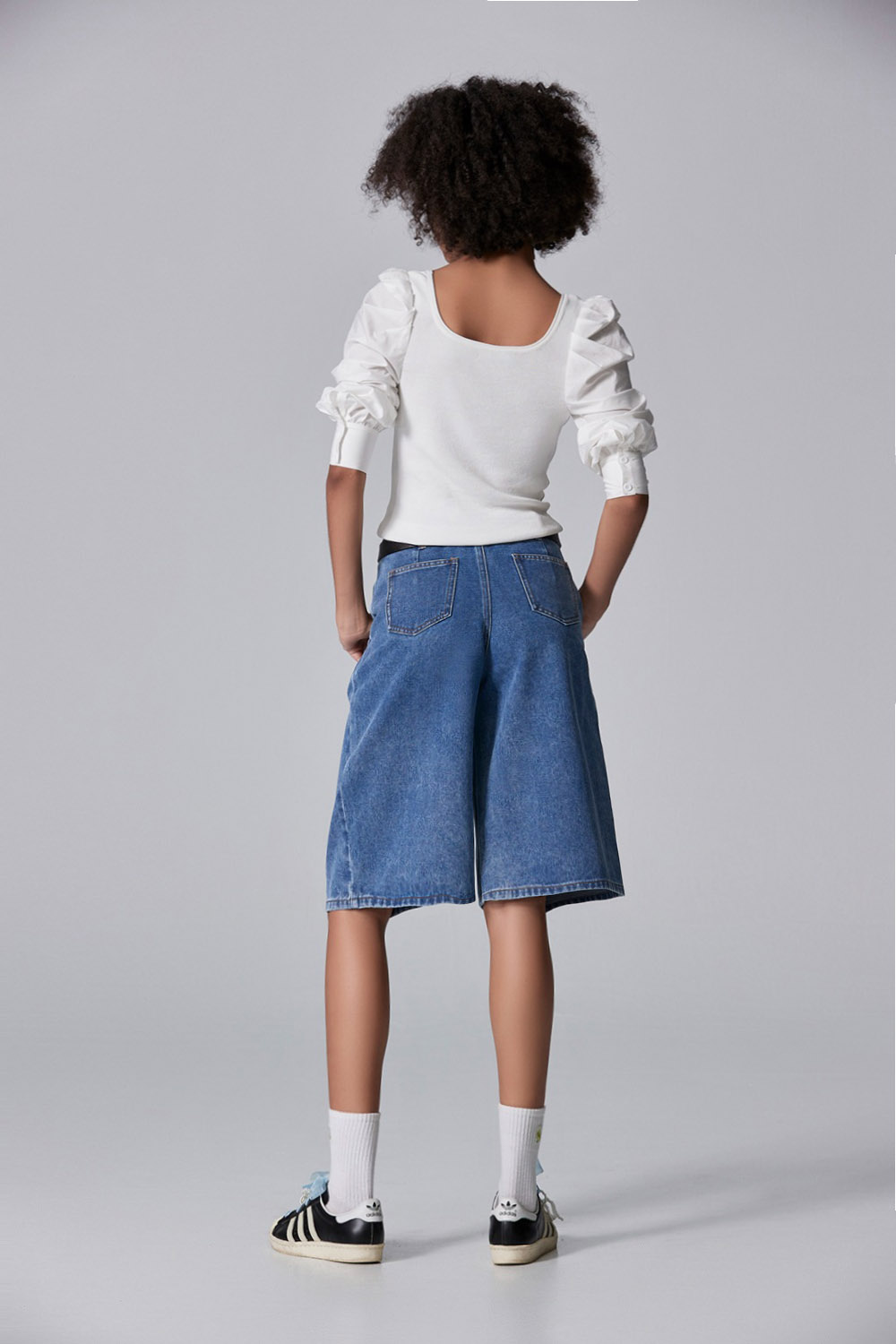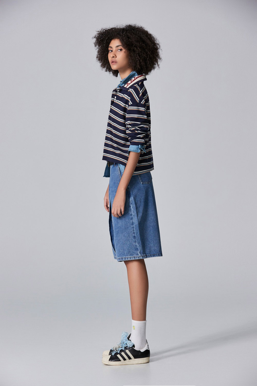 隨性瀟灑開岔摺牛仔裙褲 - 深邃藏藍, 38