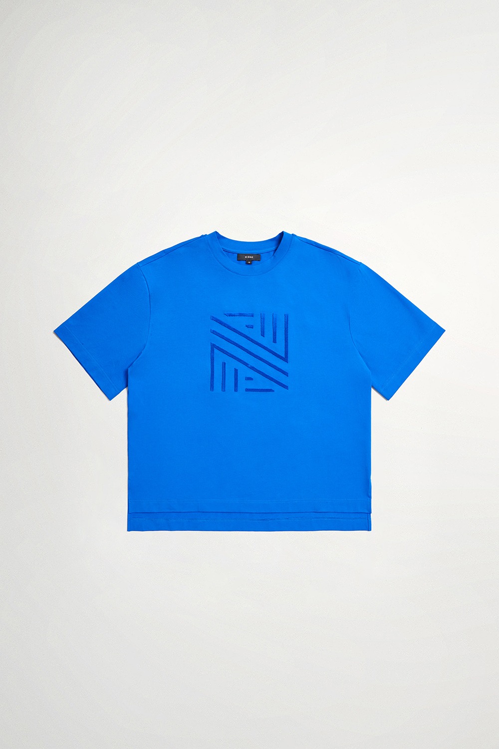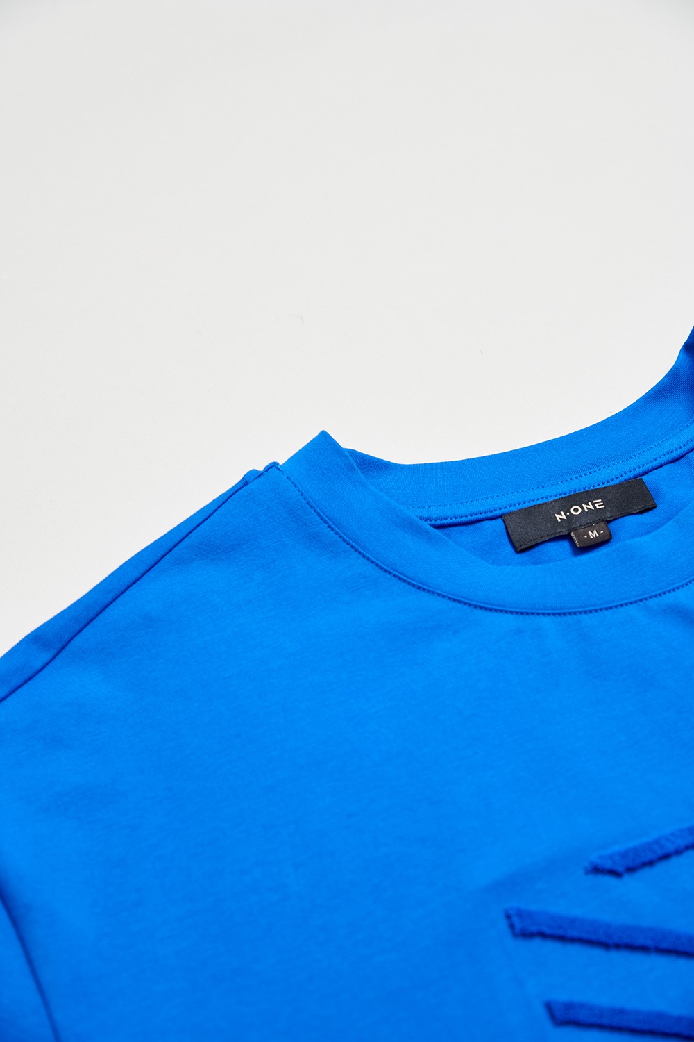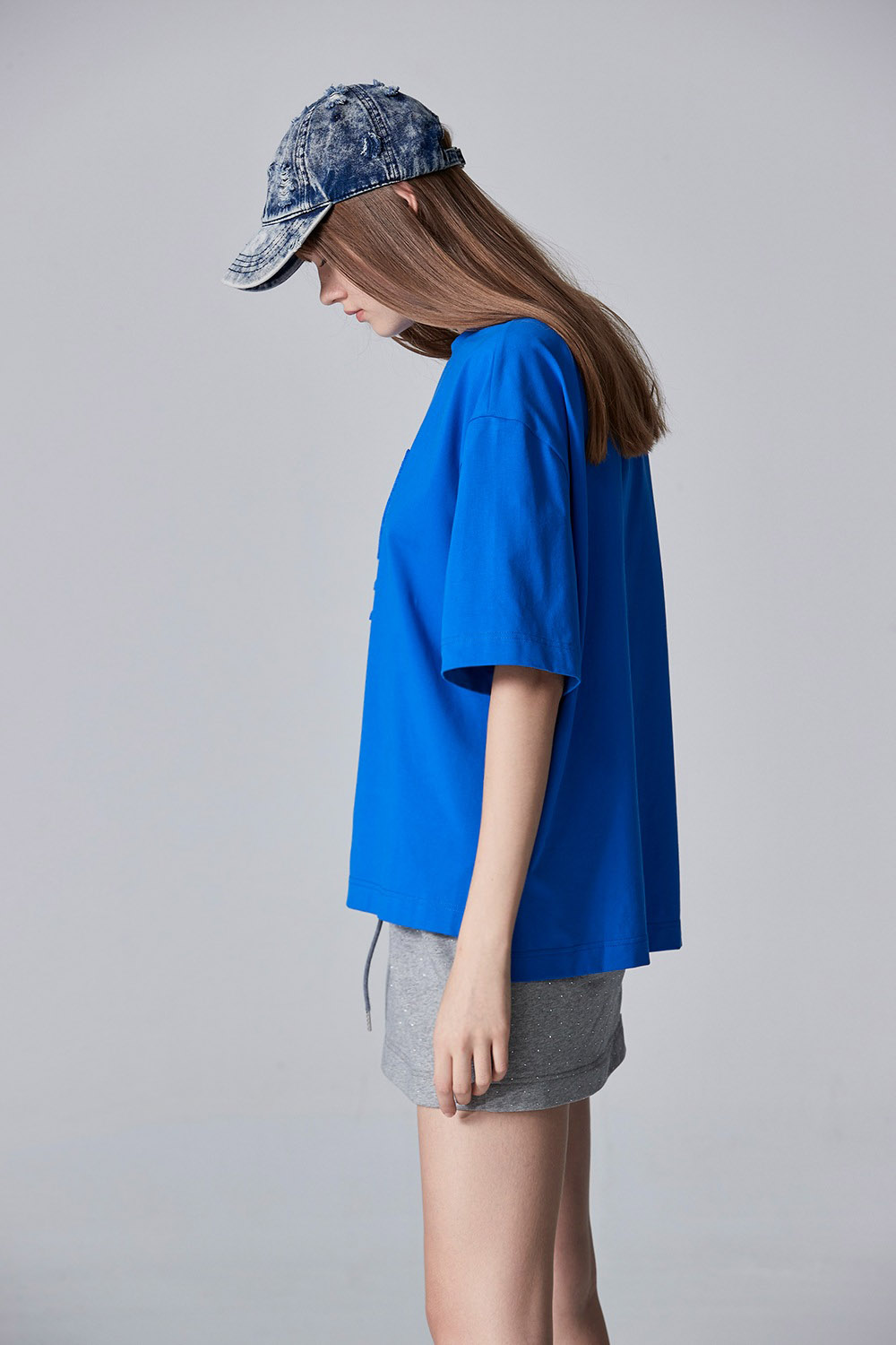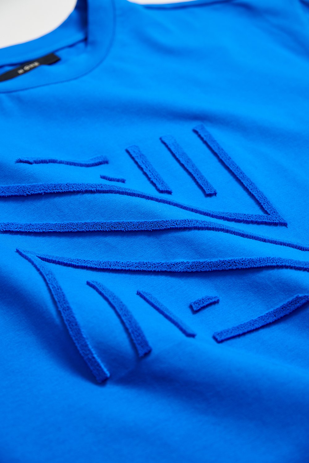 舒適彈力牙刷繡落肩上衣 - 深邃藏藍, 38