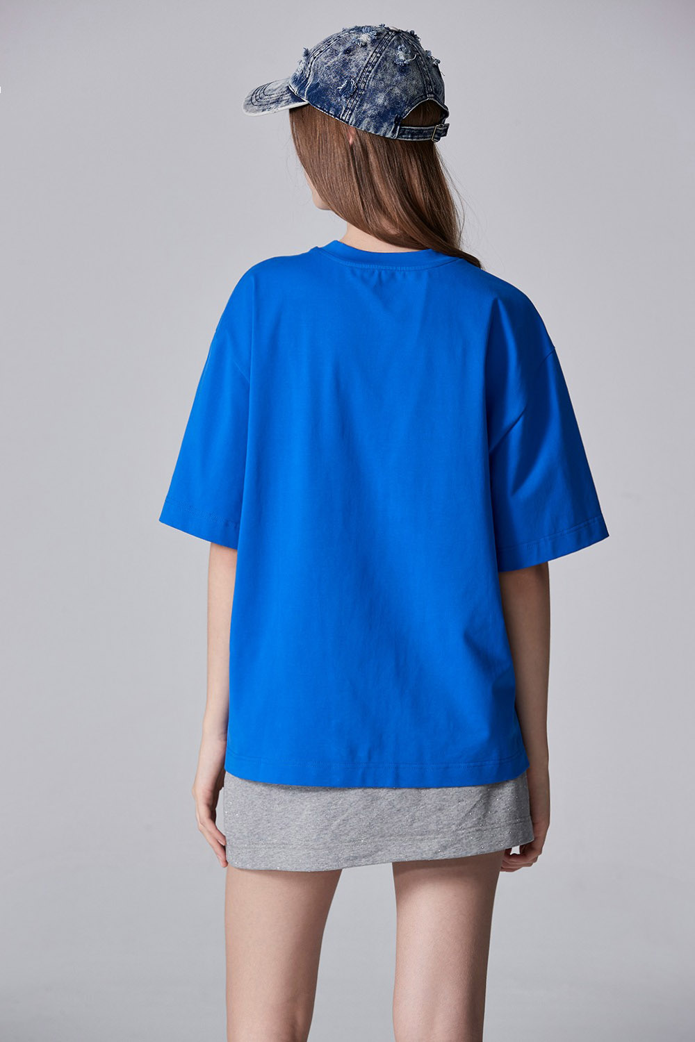 舒適彈力牙刷繡落肩上衣 - 深邃藏藍, 40